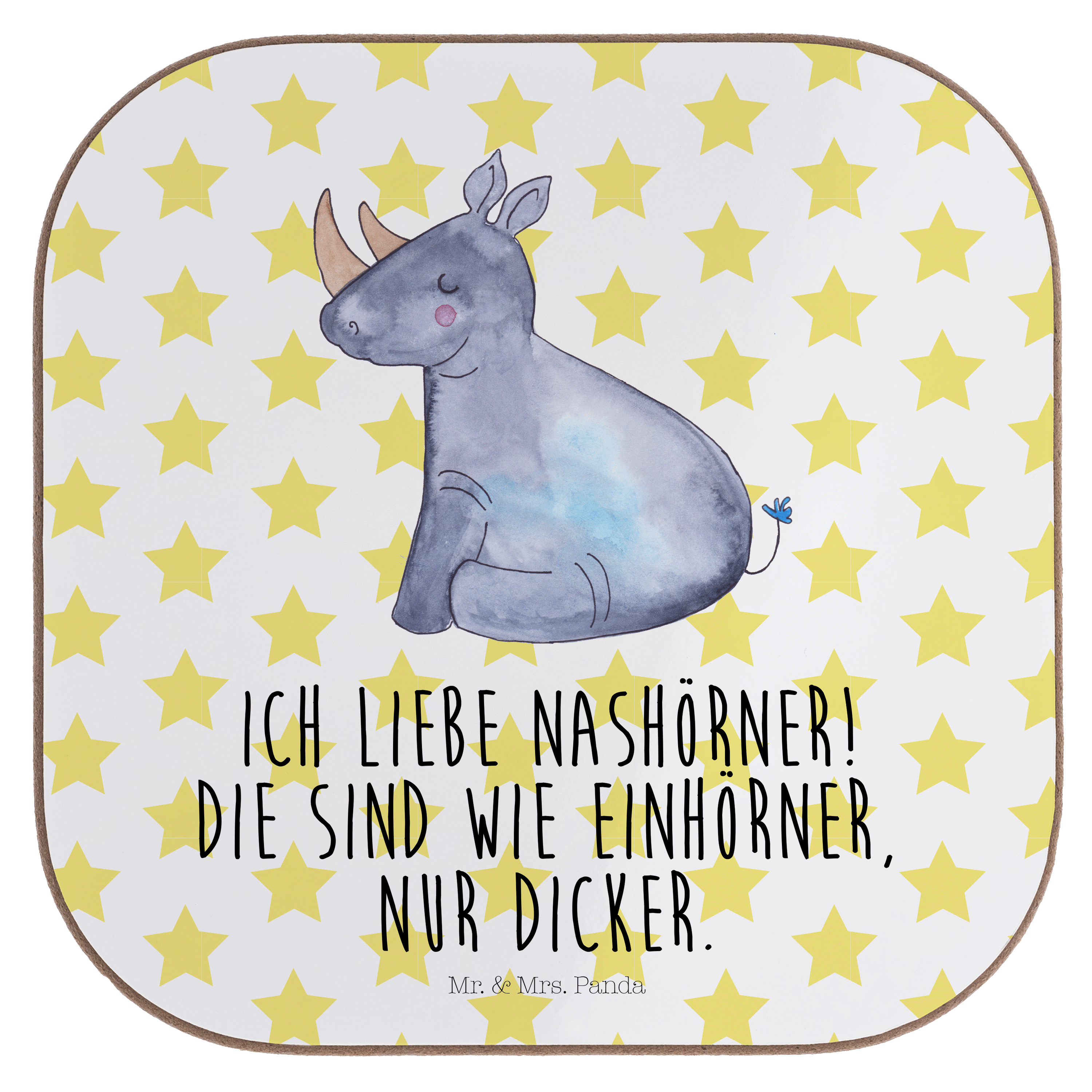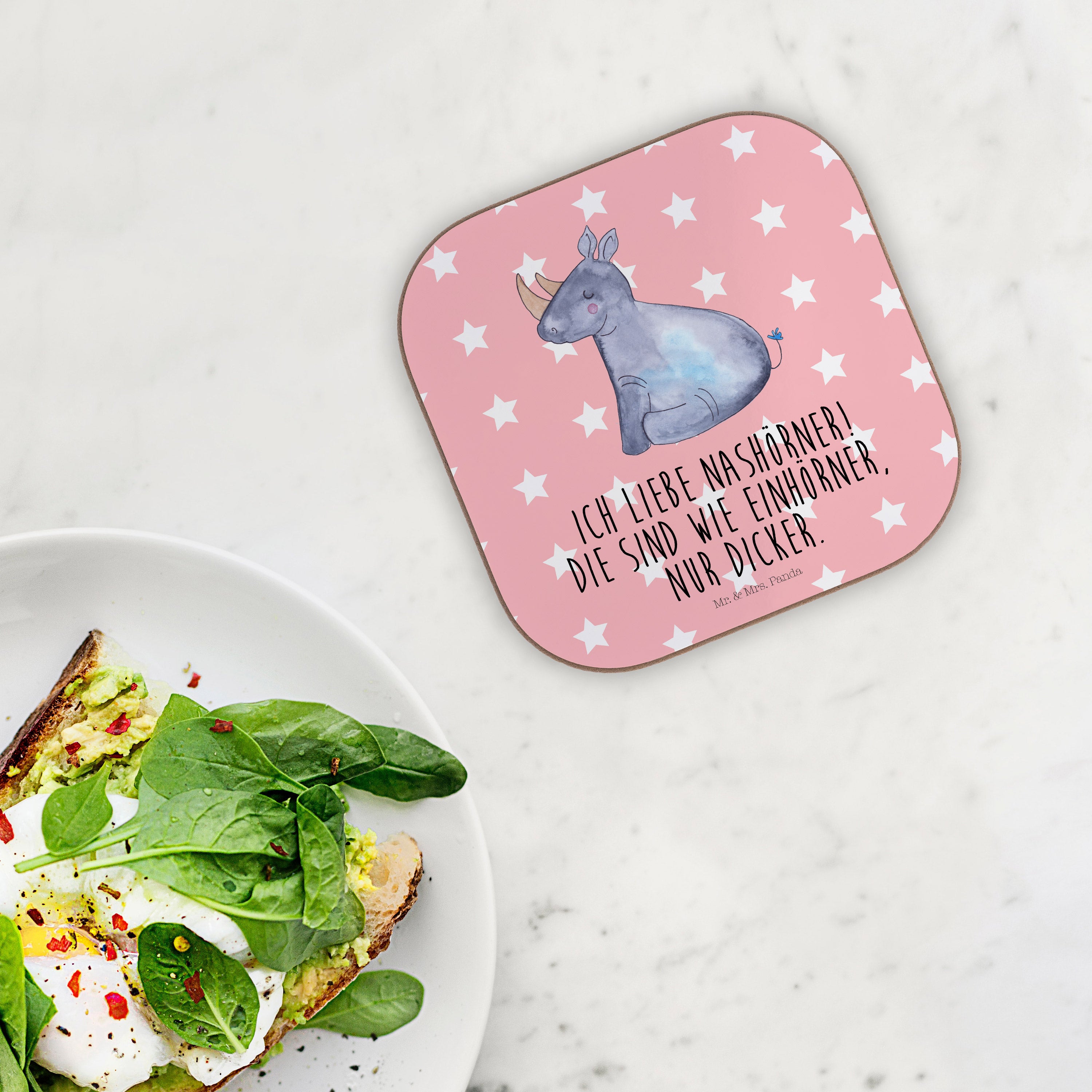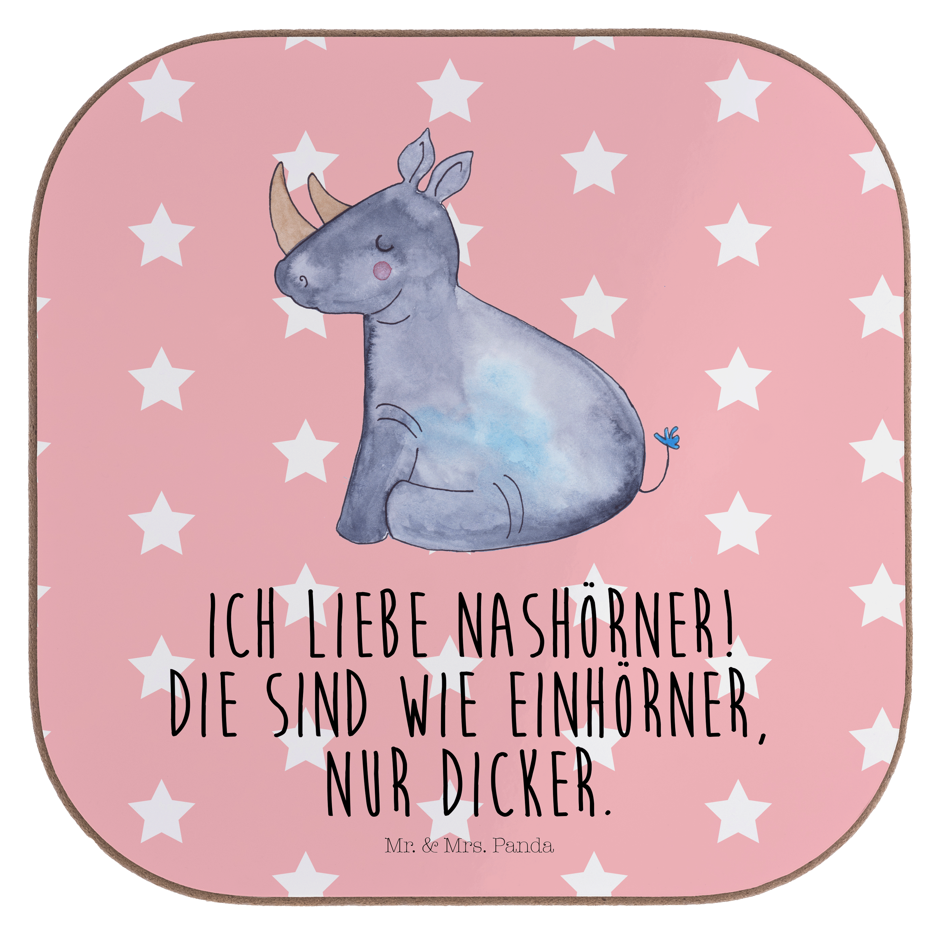 Quadratische Untersetzer Einhorn Nashorn - mit Spruch - Rot Pastell