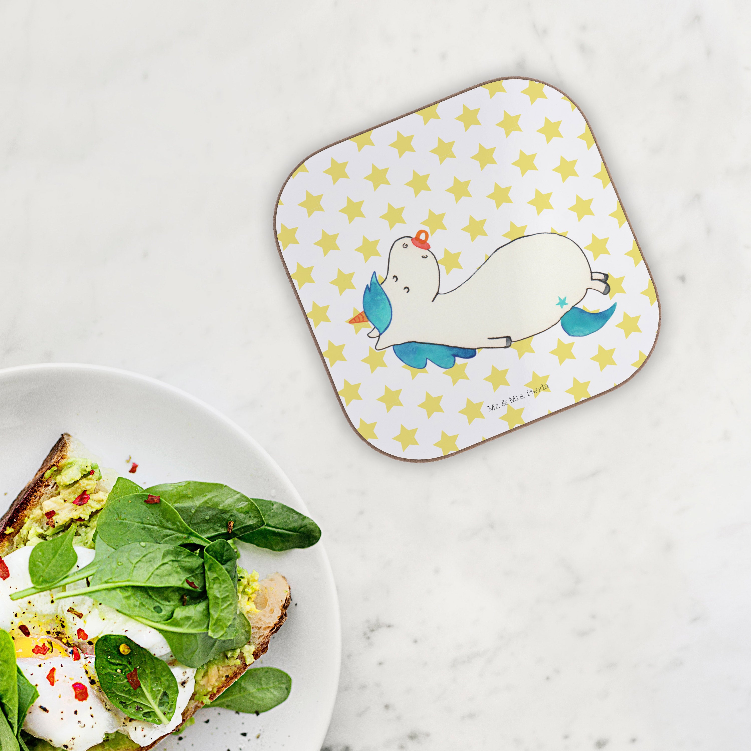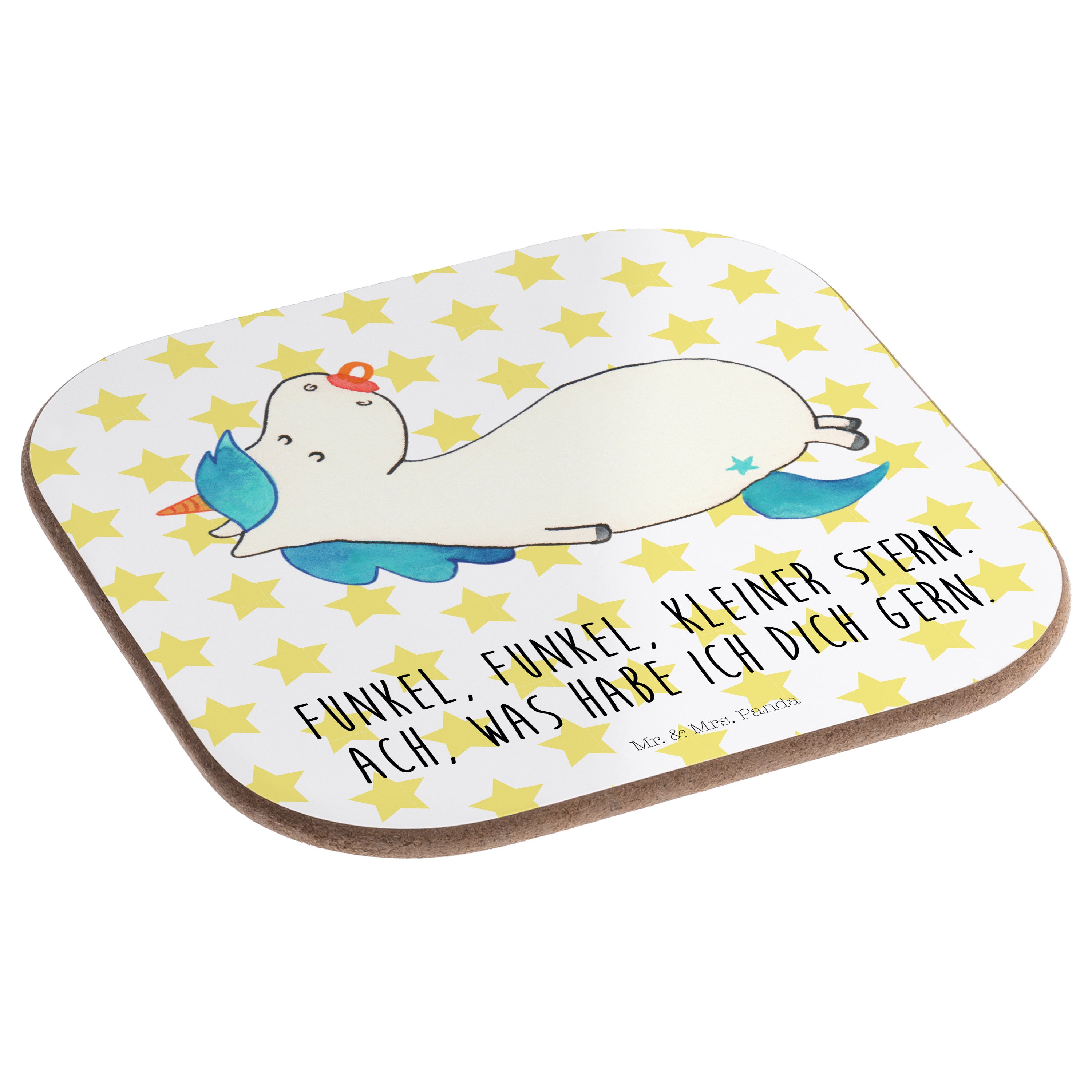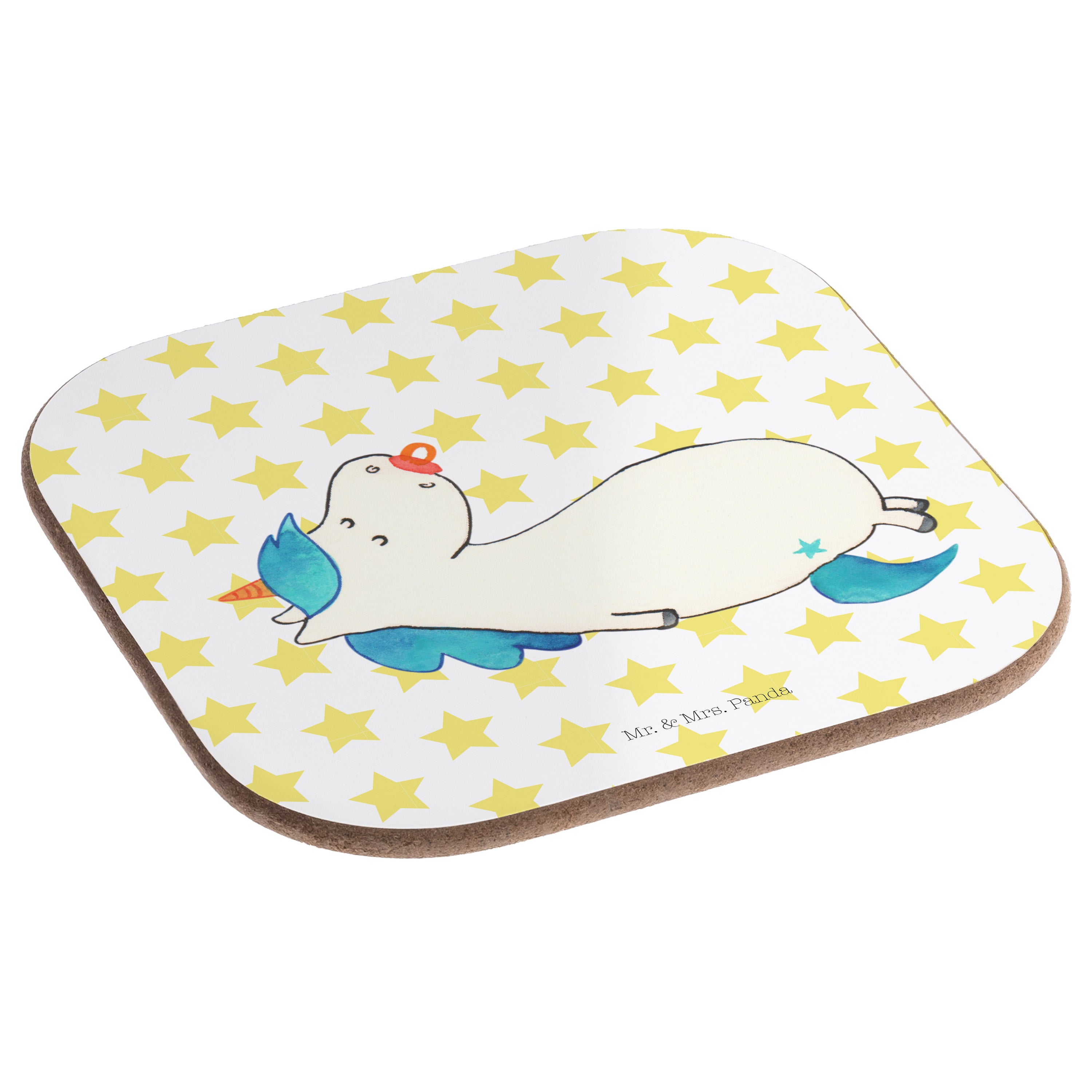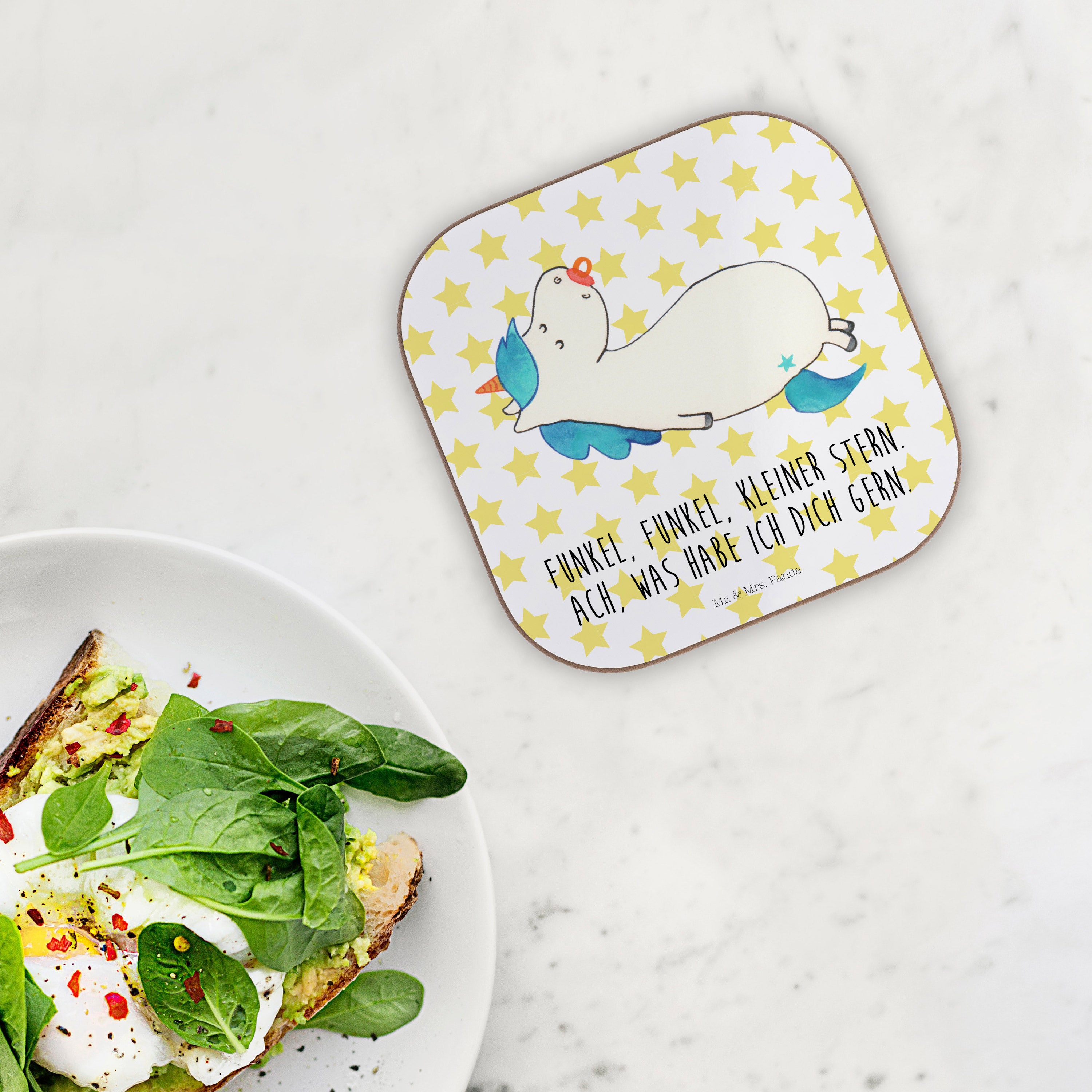 Quadratische Untersetzer Einhorn Schnullie - mit Spruch - Weiß
