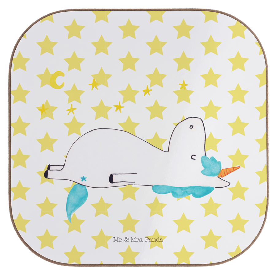 Quadratische Untersetzer Einhorn Sternenhimmel - ohne Spruch - Weiß