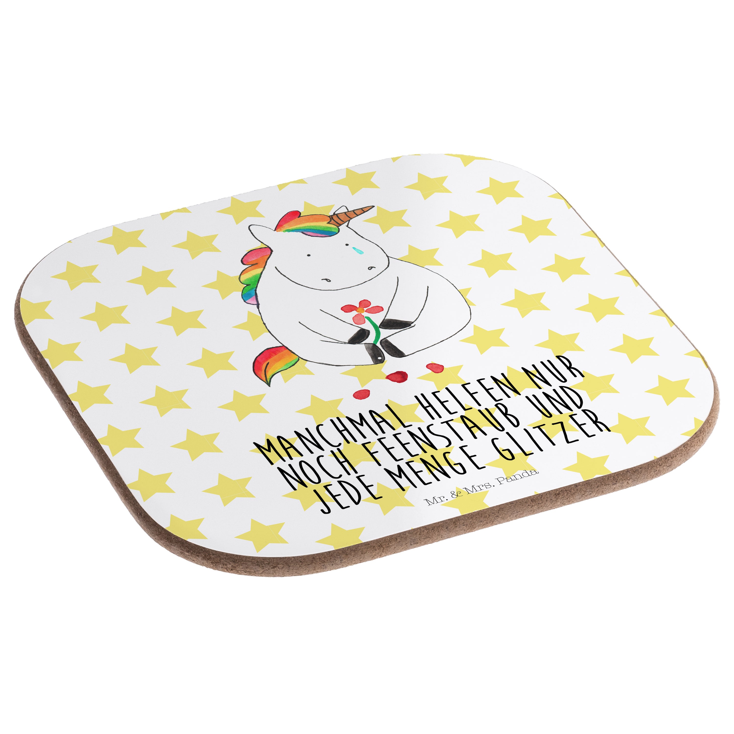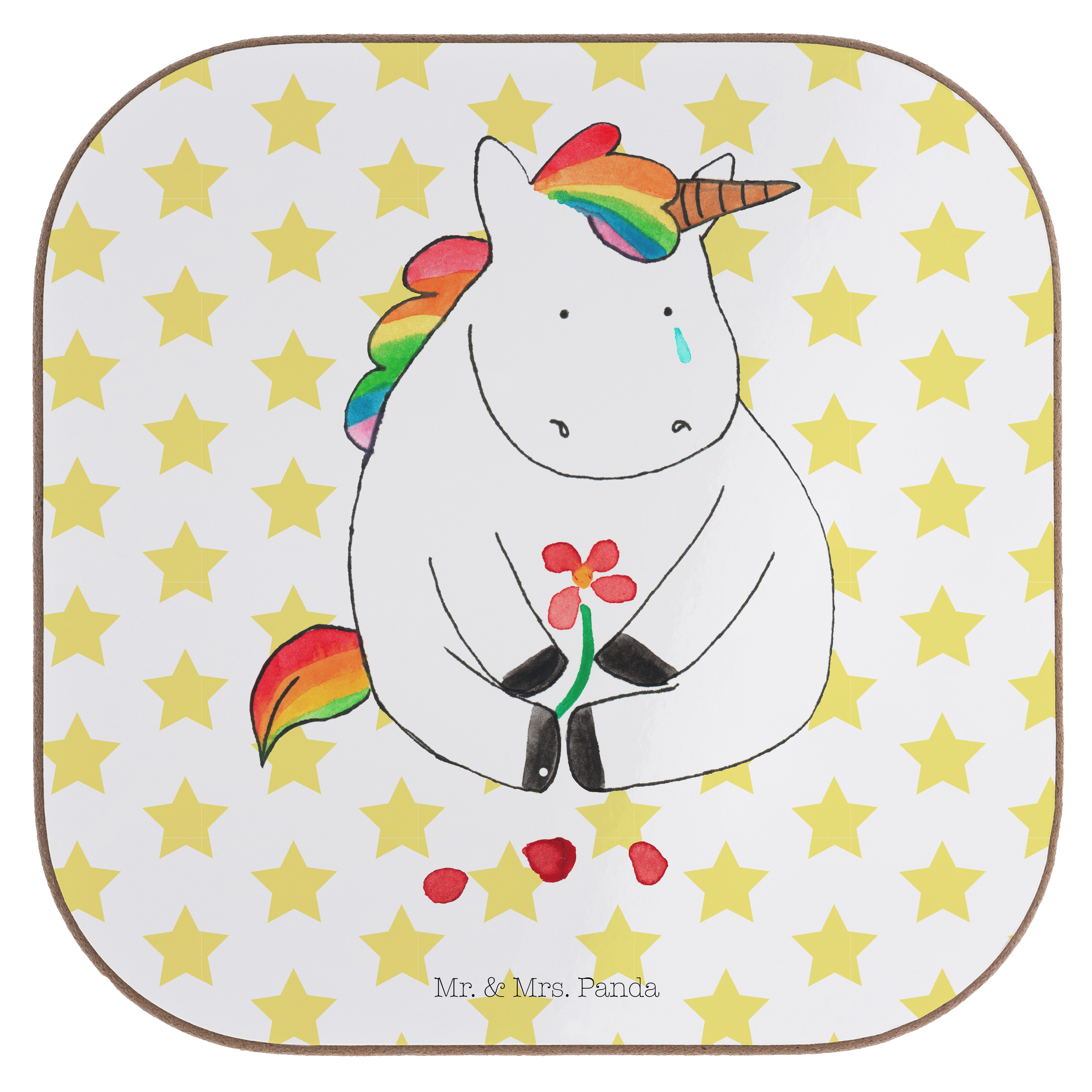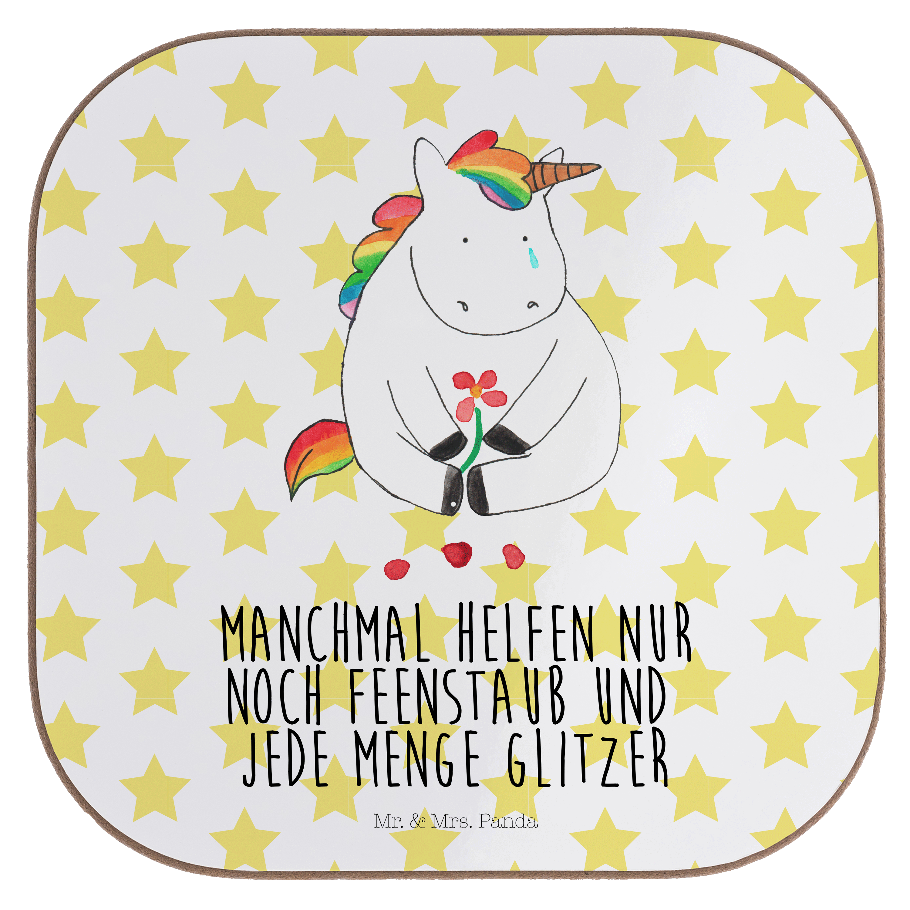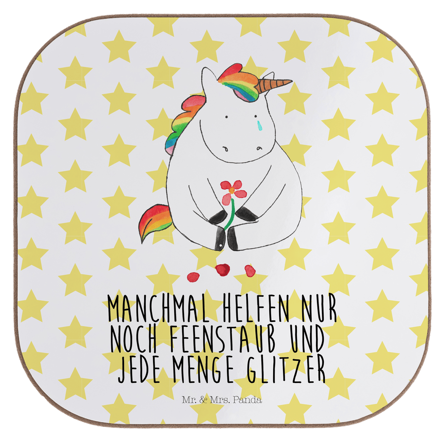 Quadratische Untersetzer Einhorn Traurig - mit Spruch - Weiß