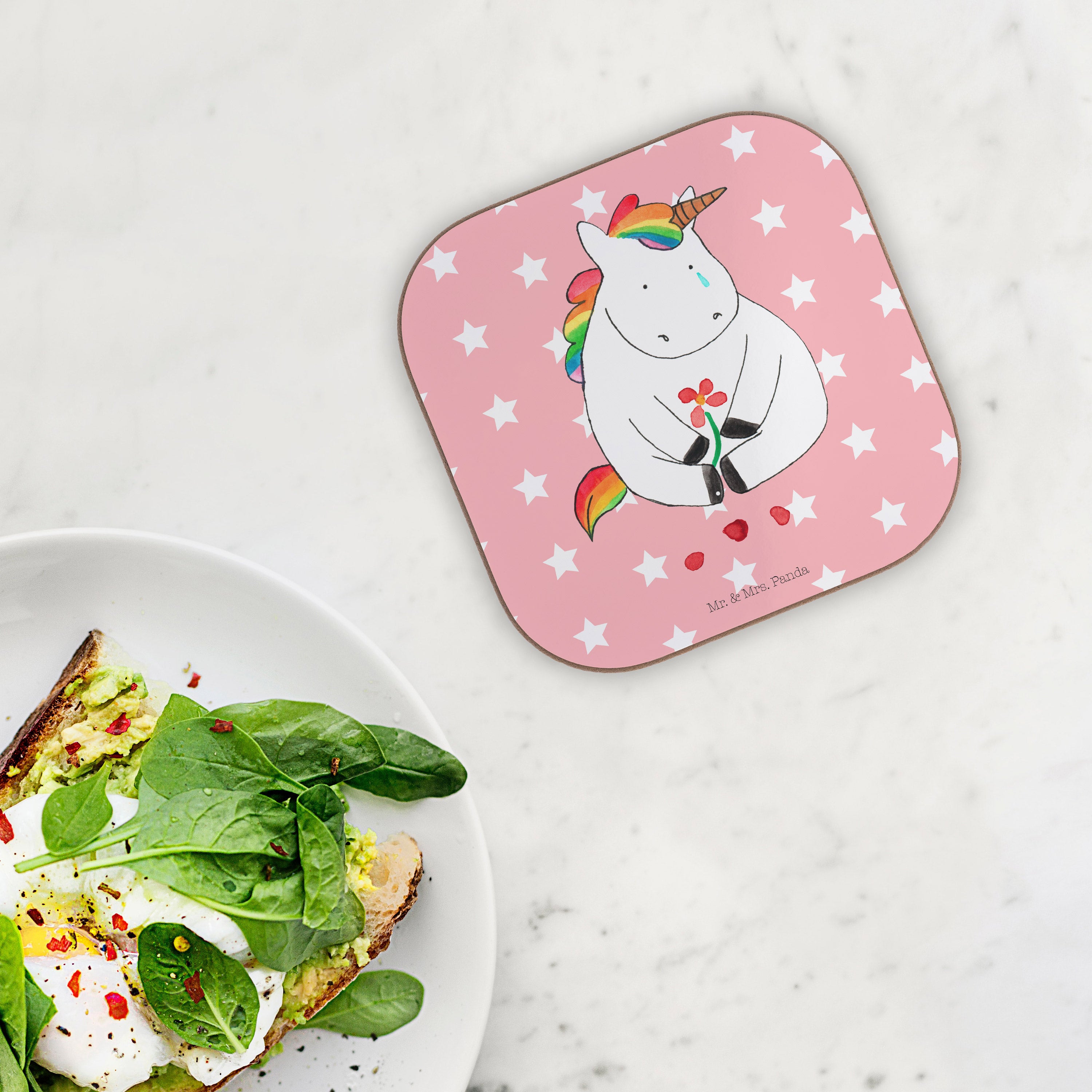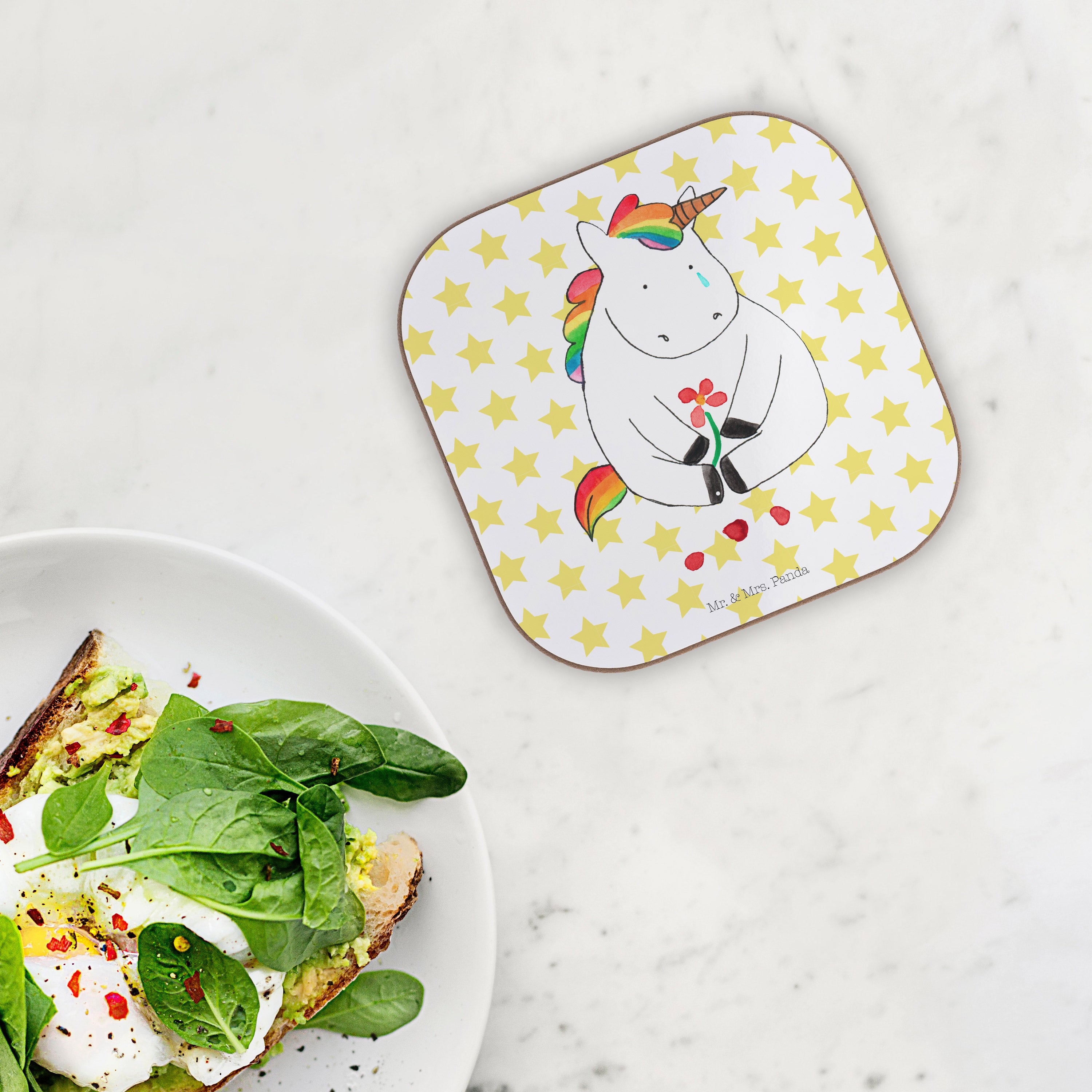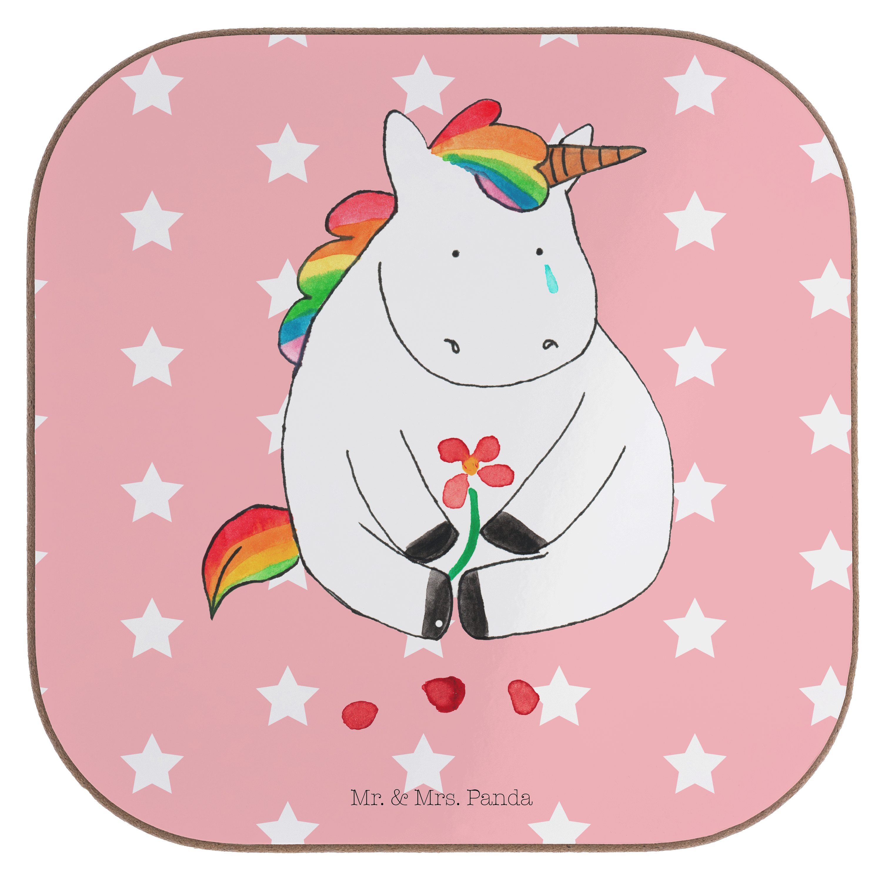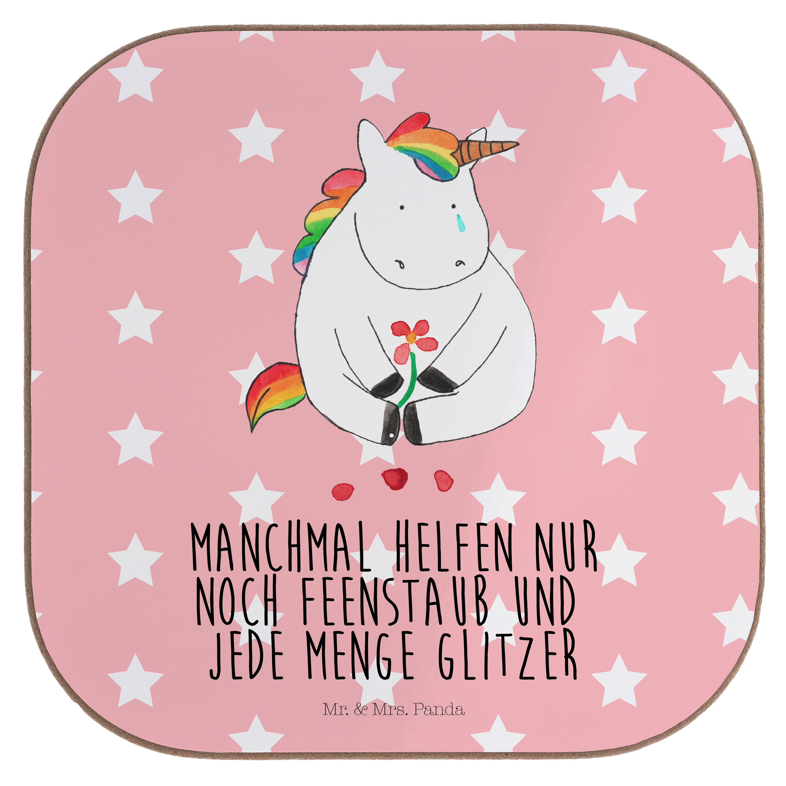 Quadratische Untersetzer Einhorn Traurig - mit Spruch - Weiß