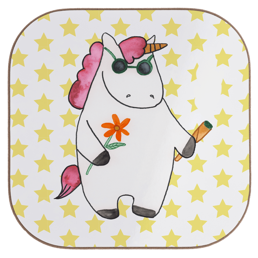 Quadratische Untersetzer Einhorn Woodstock - ohne Spruch - Weiß