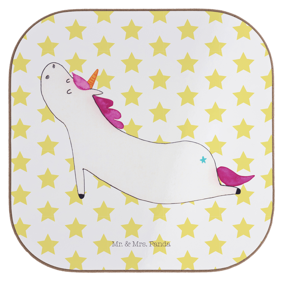 Quadratische Untersetzer Einhorn Yoga - ohne Spruch - Weiß