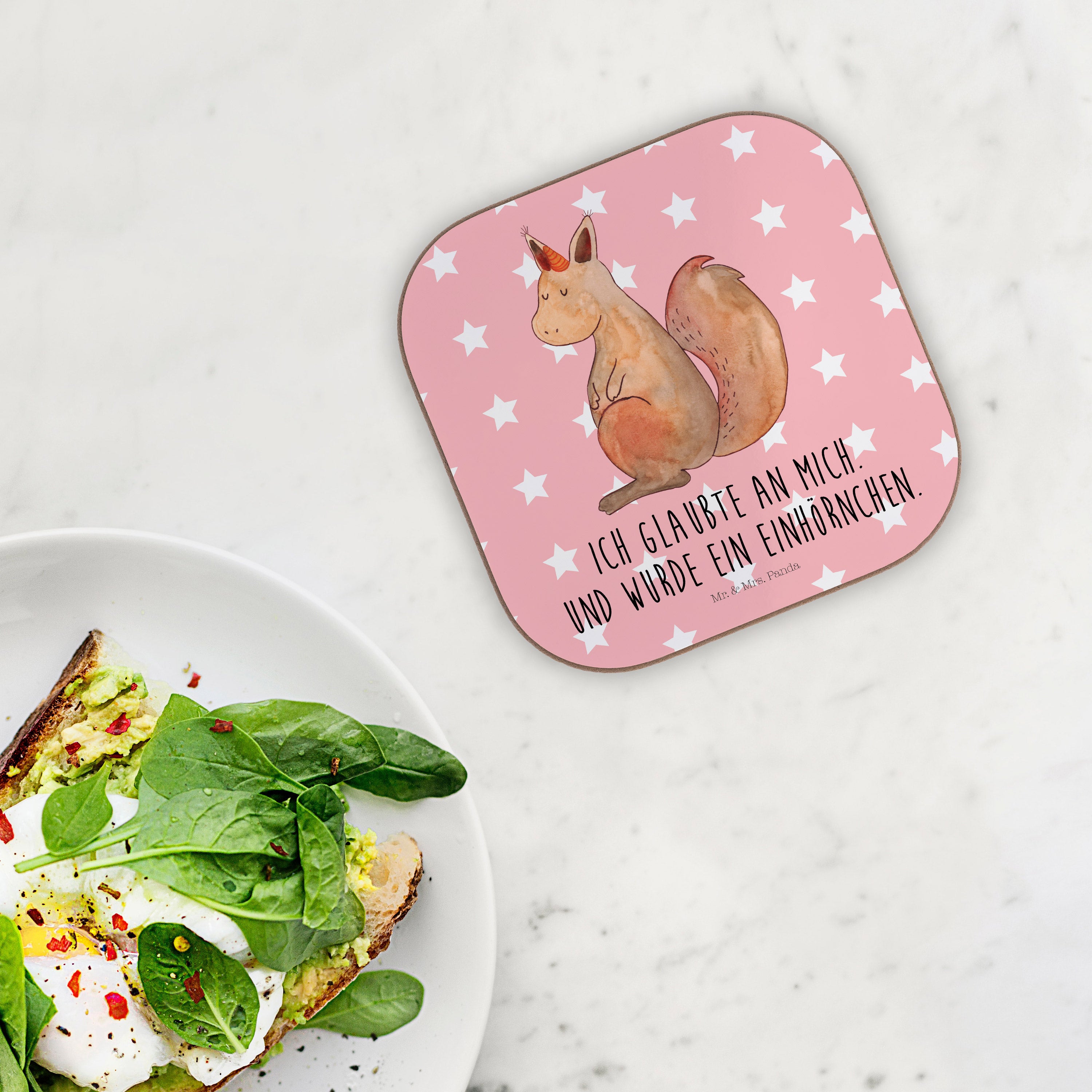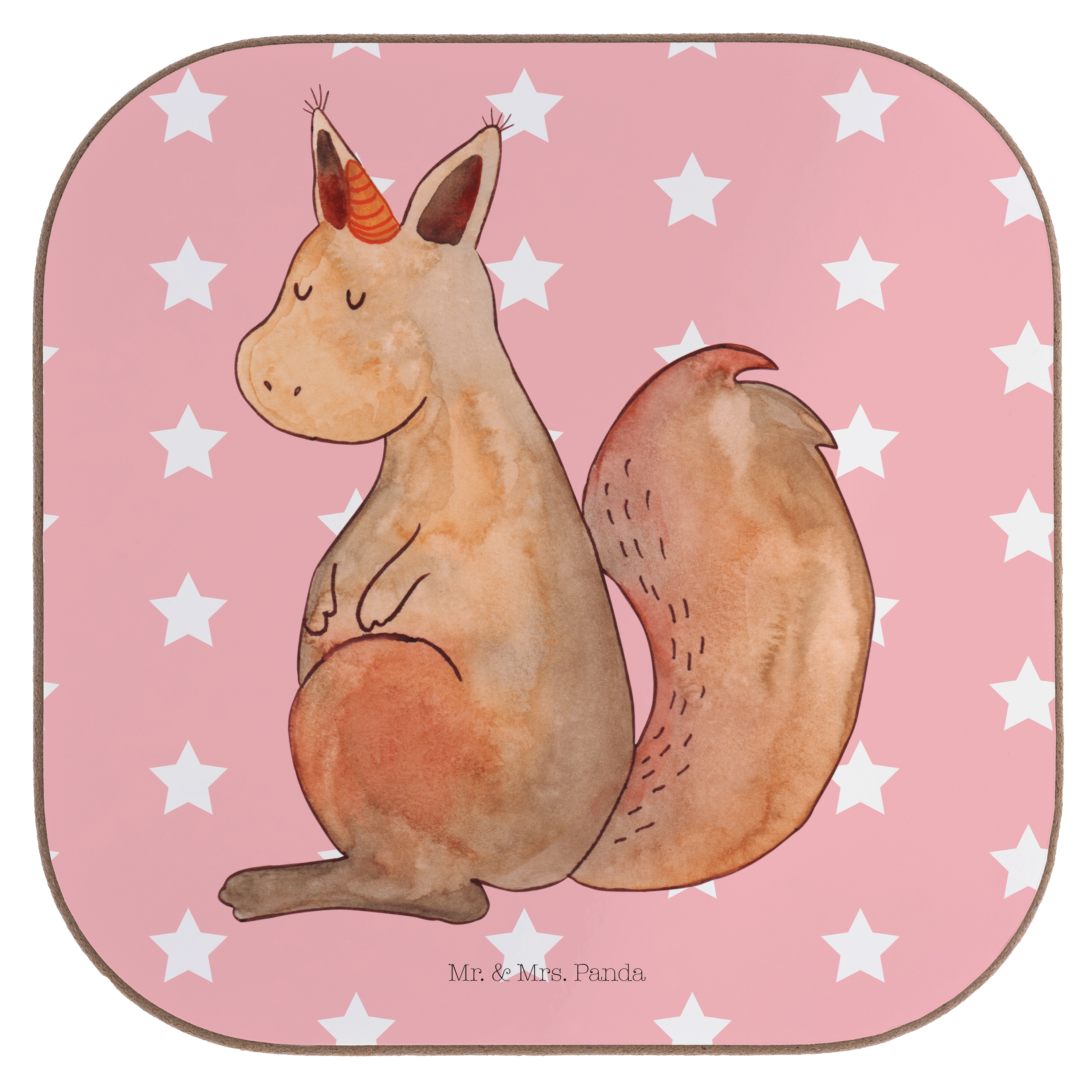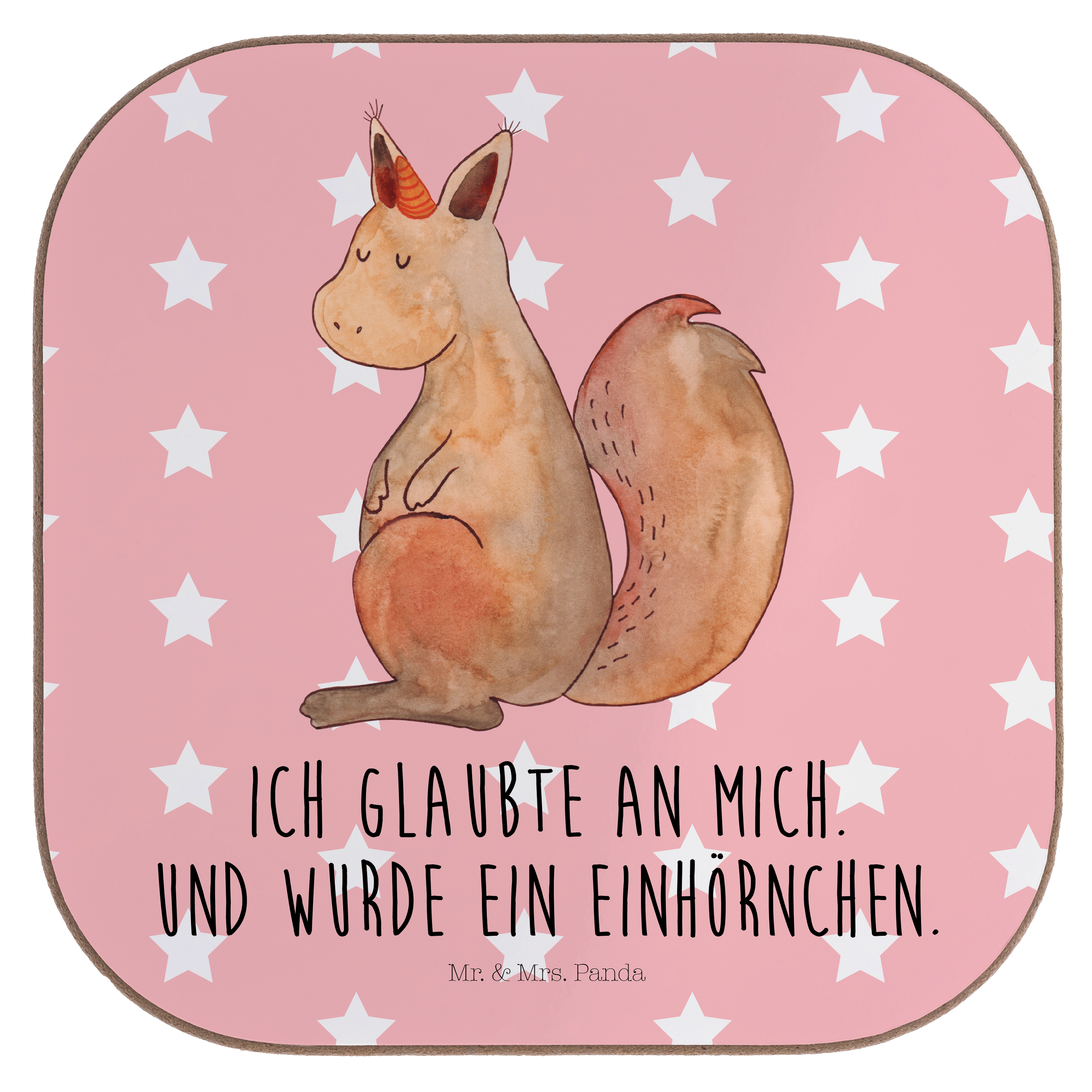 Quadratische Untersetzer Einhörnchen Glaube - mit Spruch - Rot Pastell