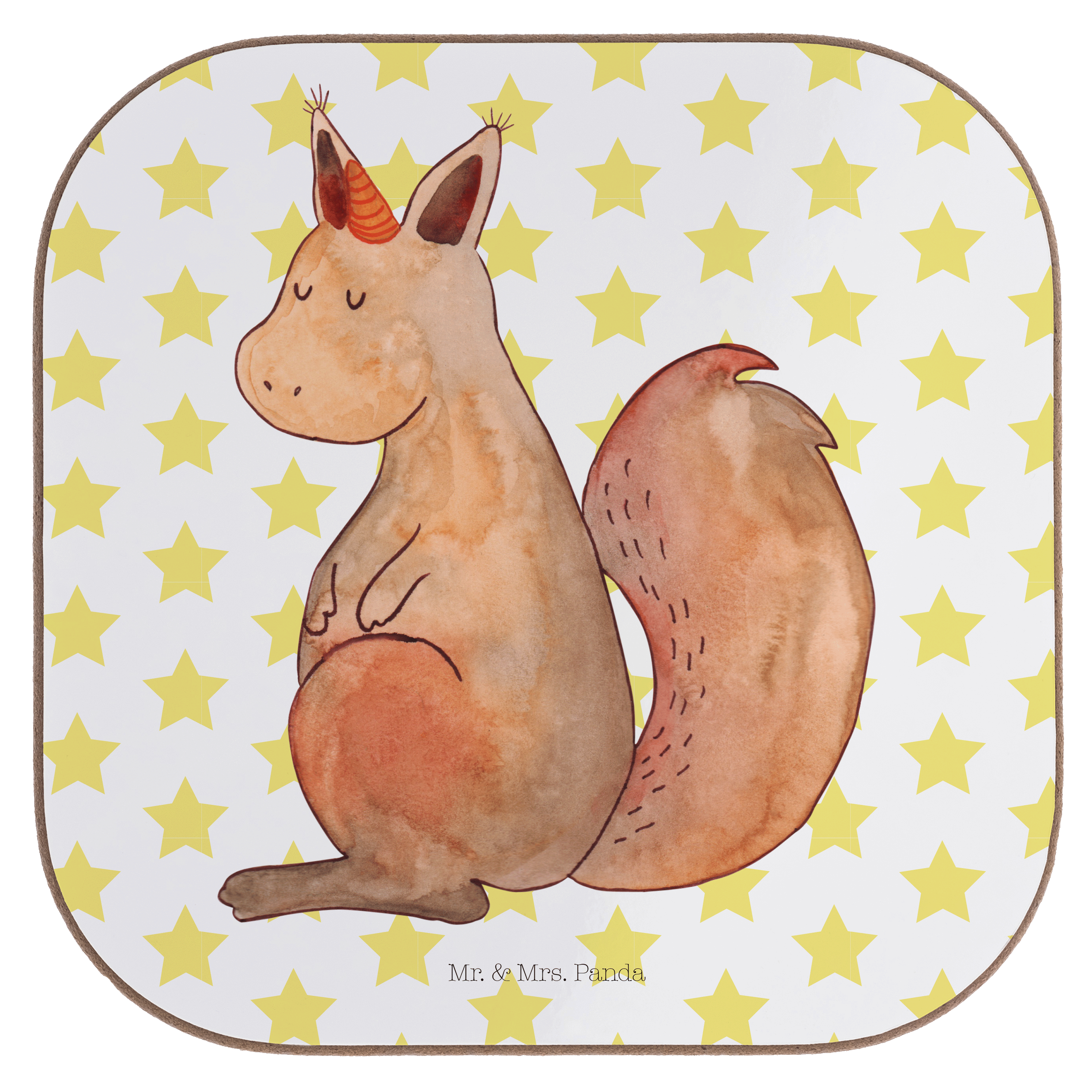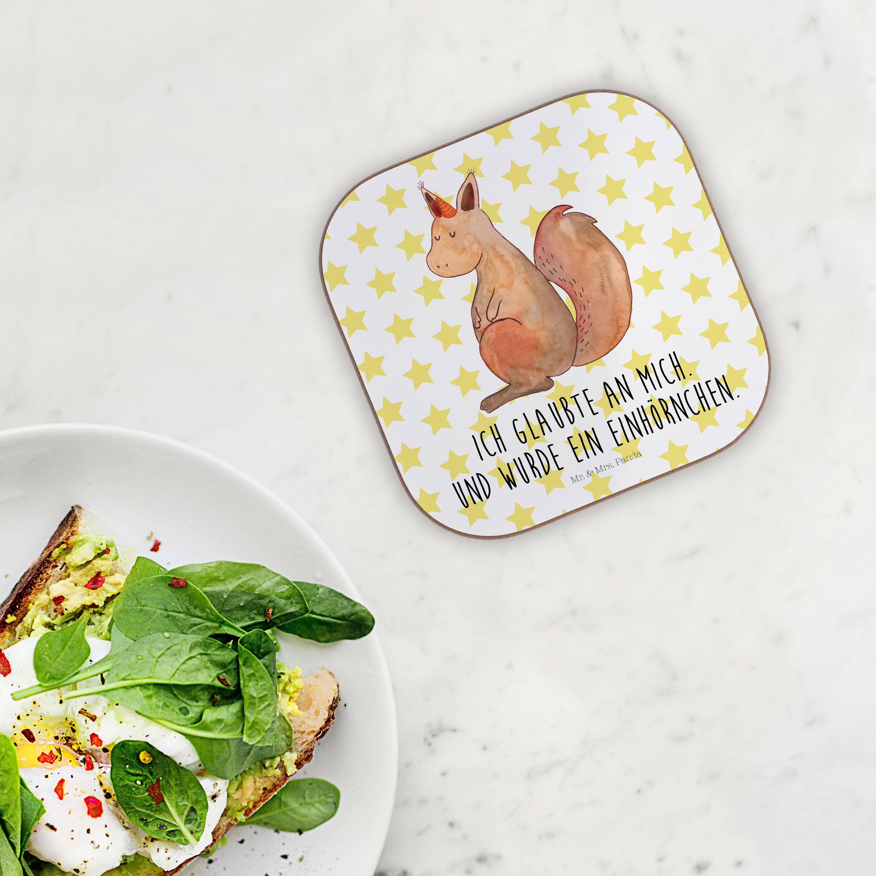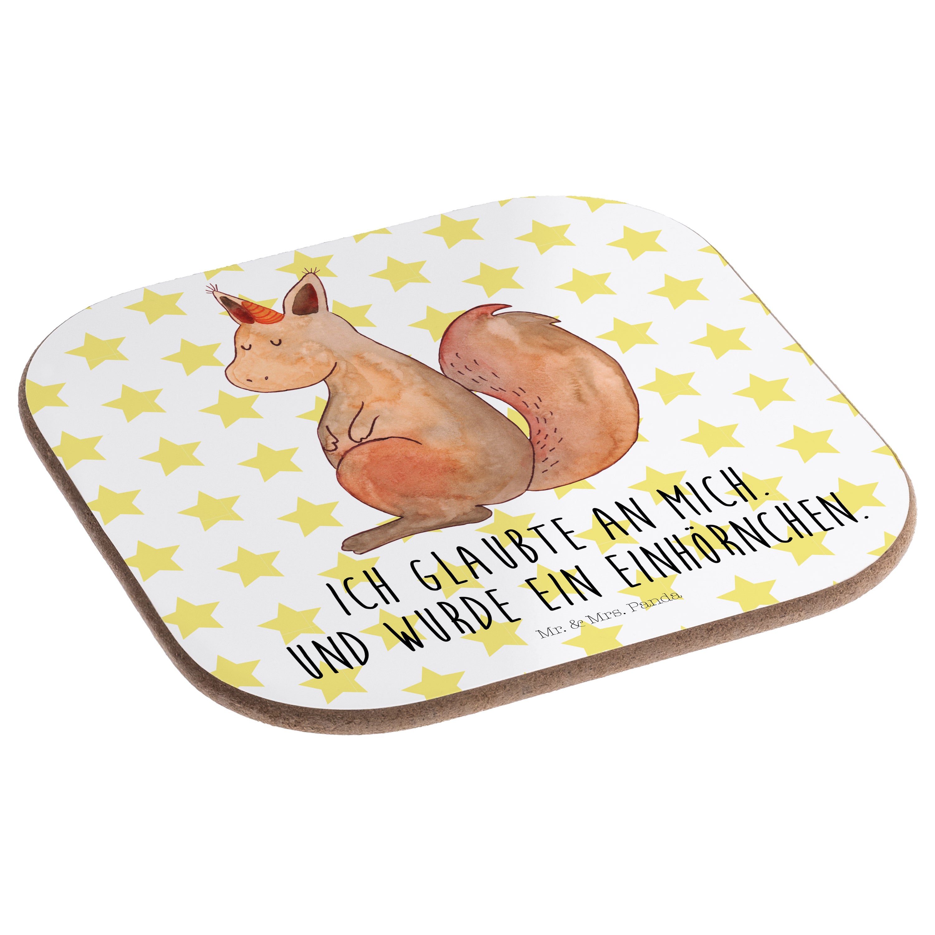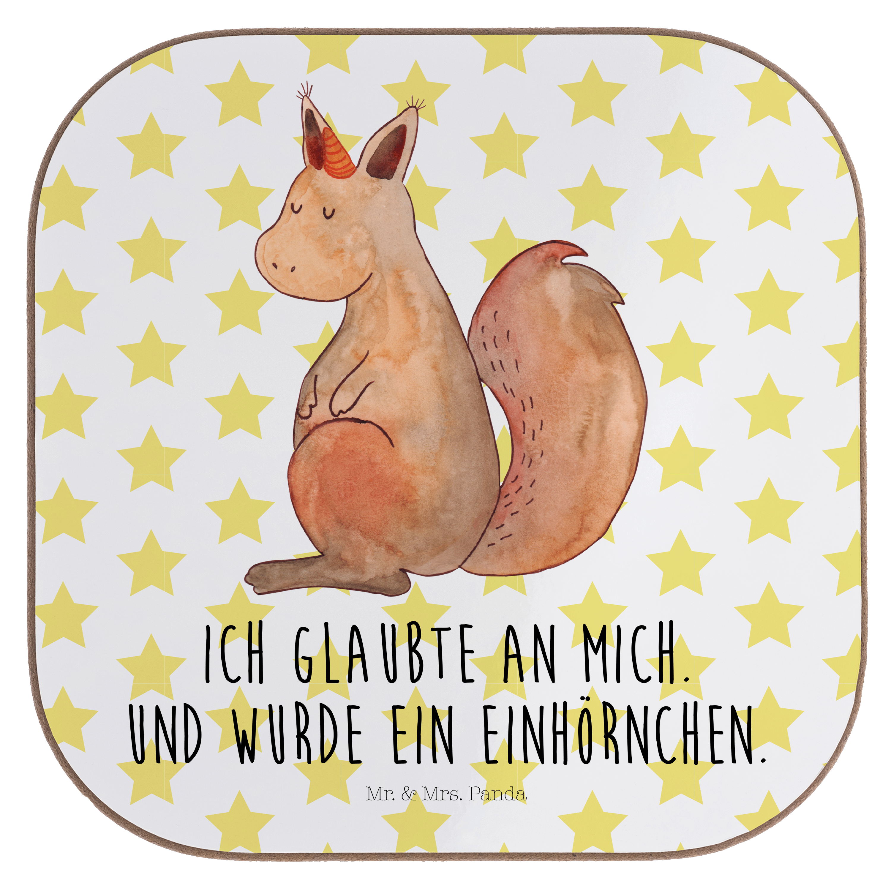 Quadratische Untersetzer Einhörnchen Glaube - mit Spruch - Rot Pastell