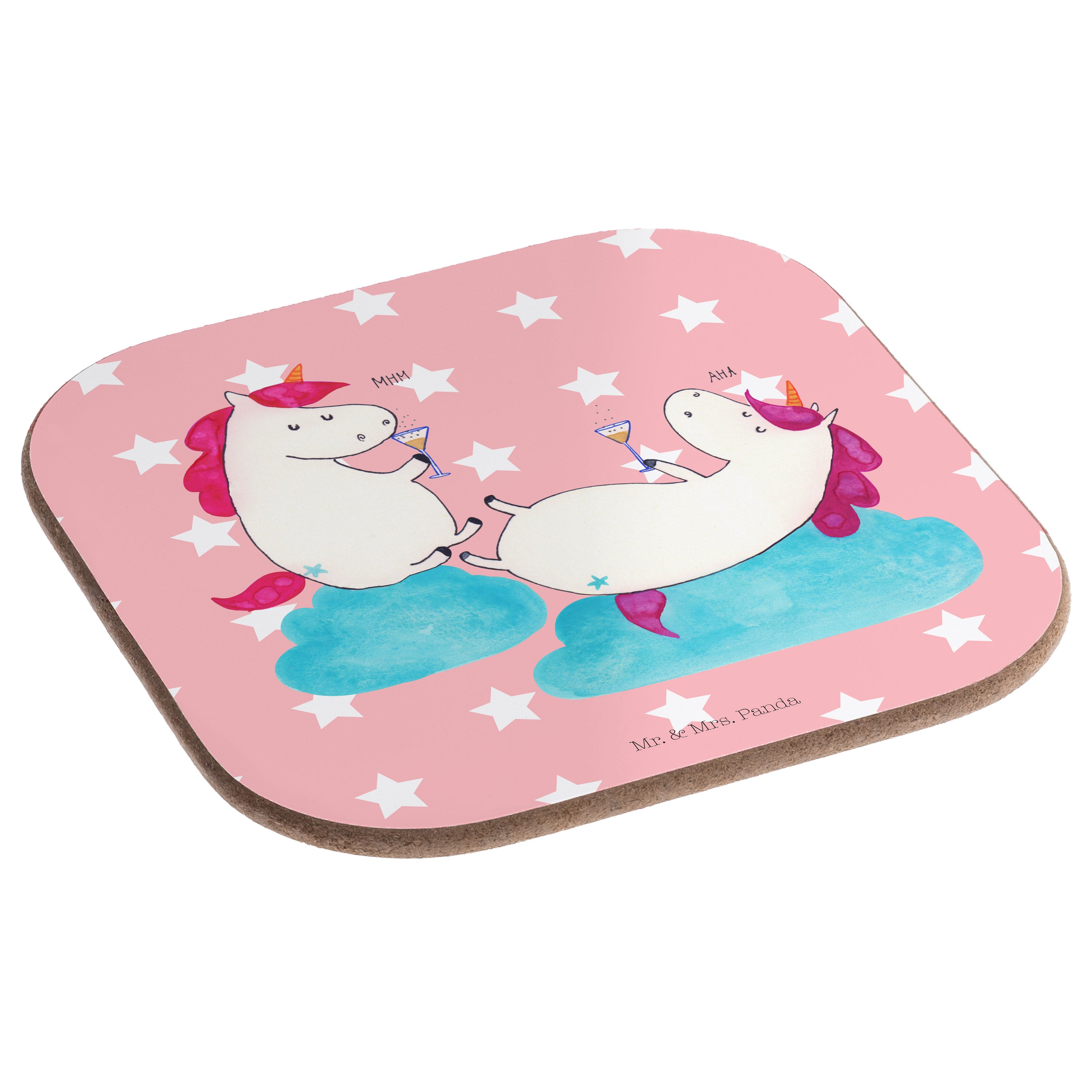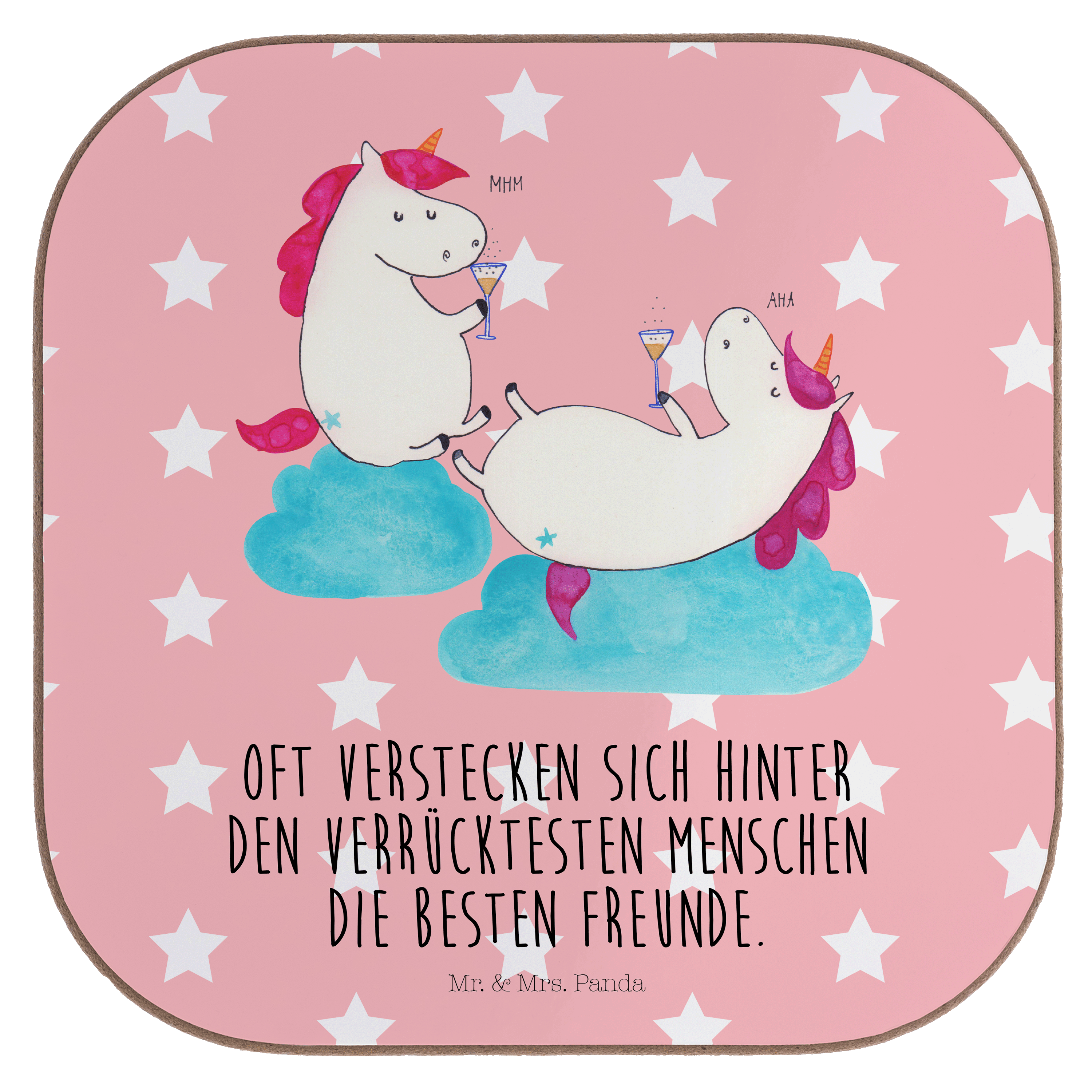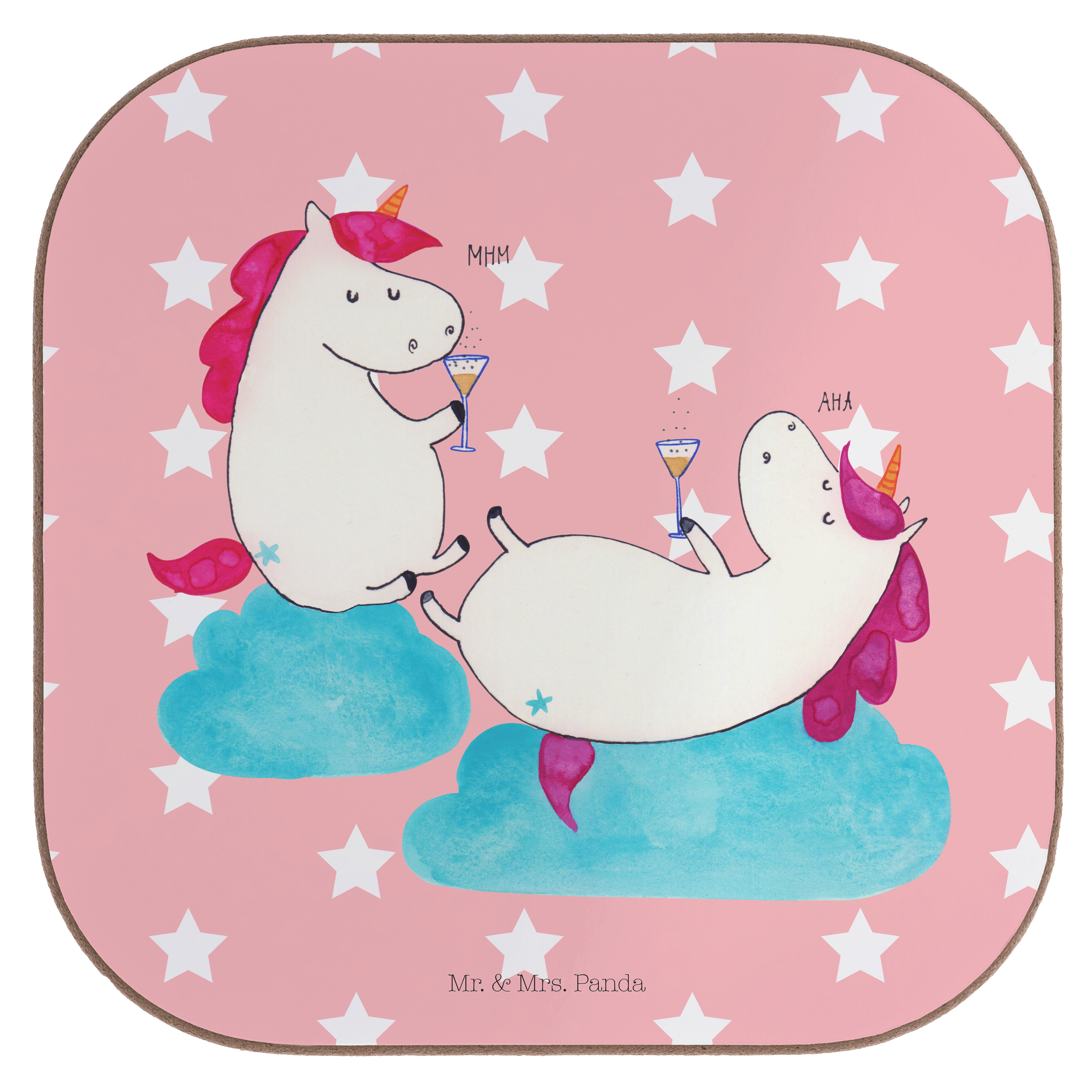 Quadratische Untersetzer Einhörner Sekt - Rot Pastell - mit Spruch