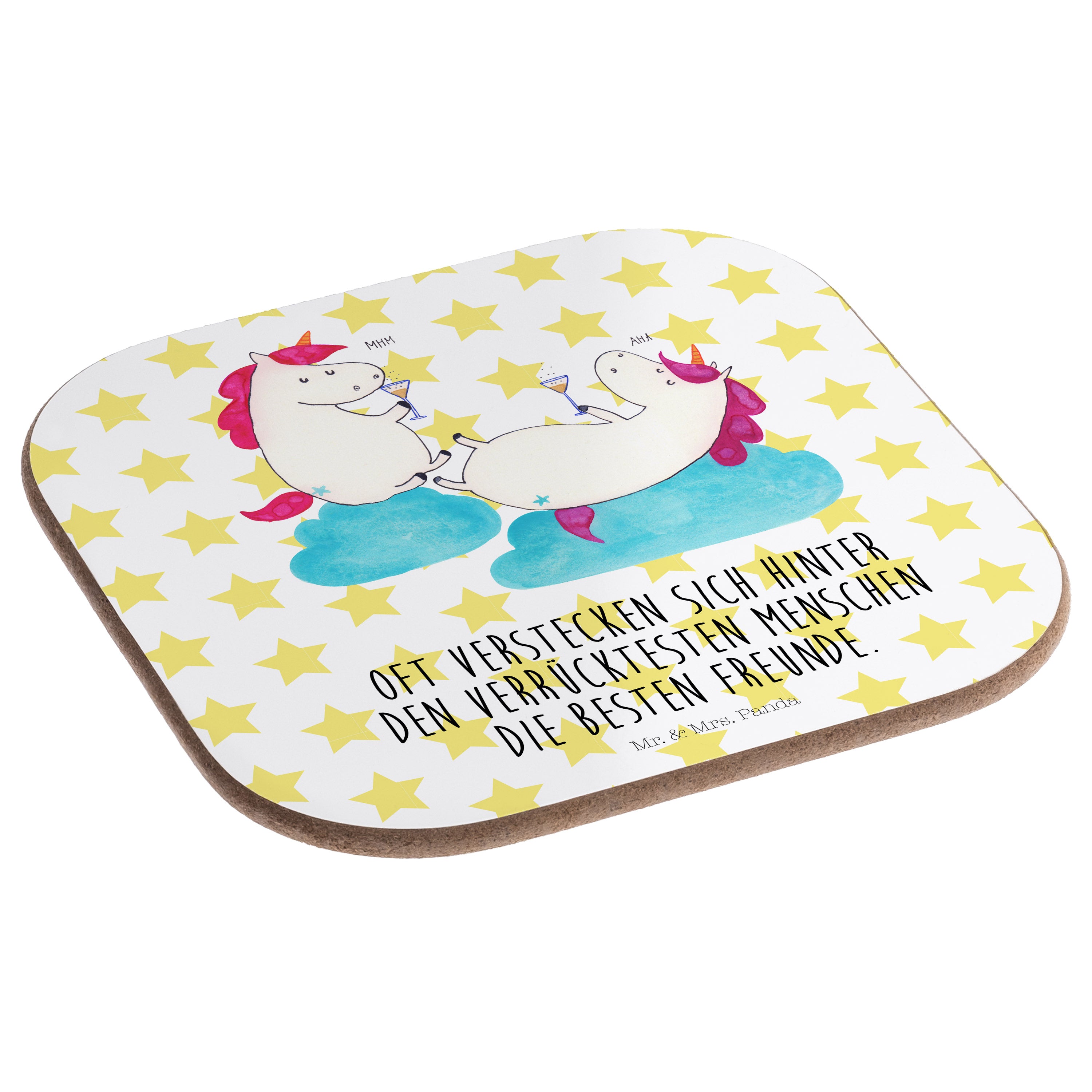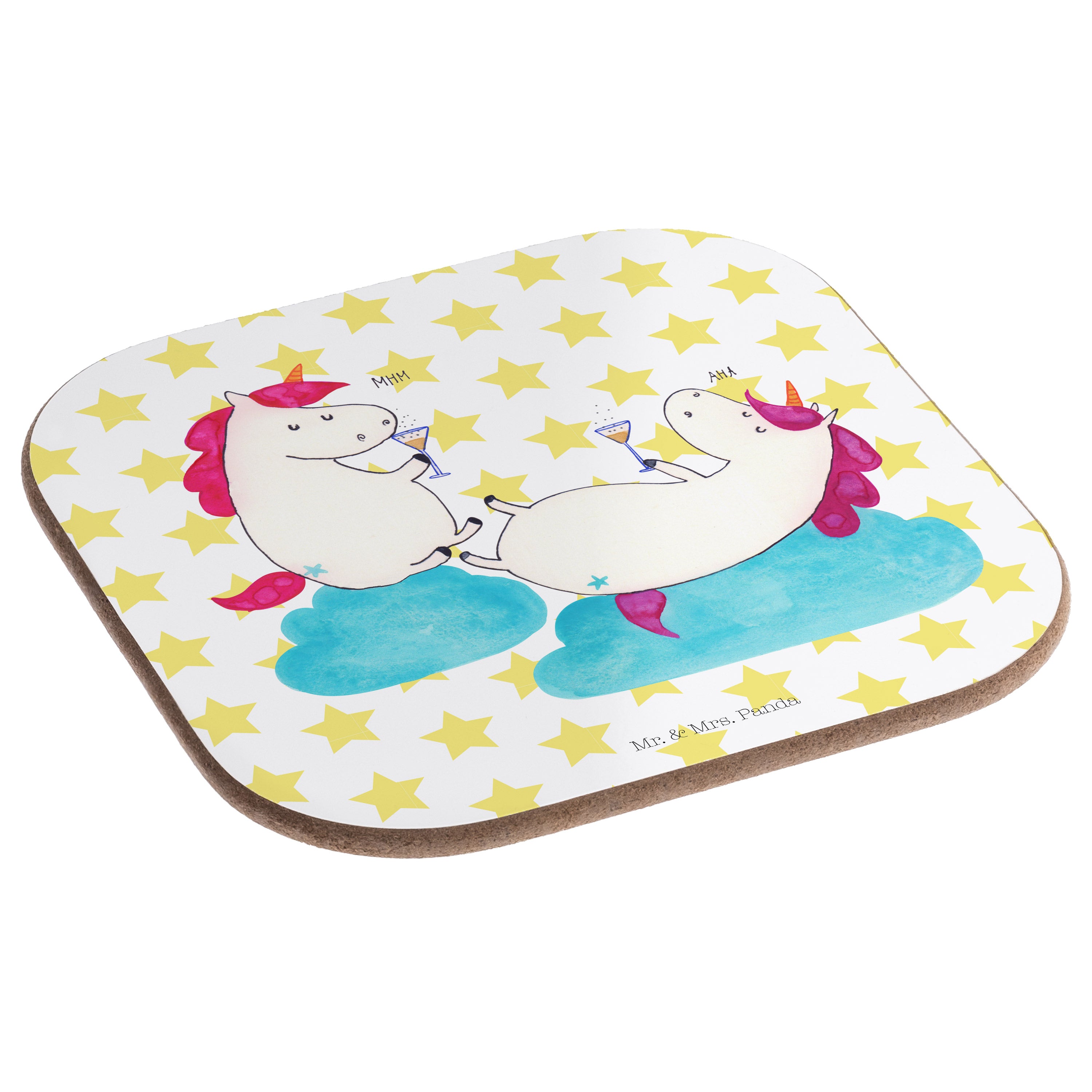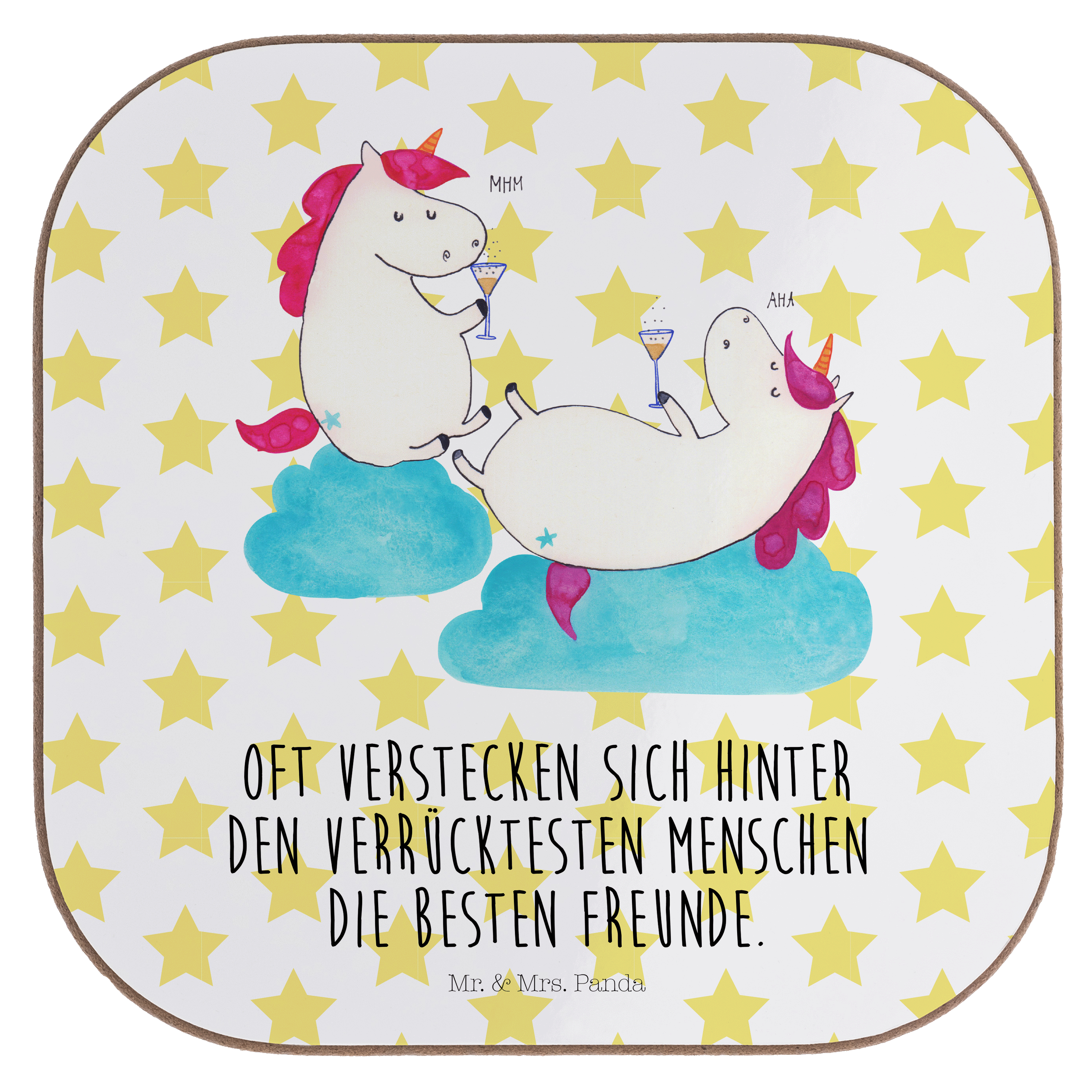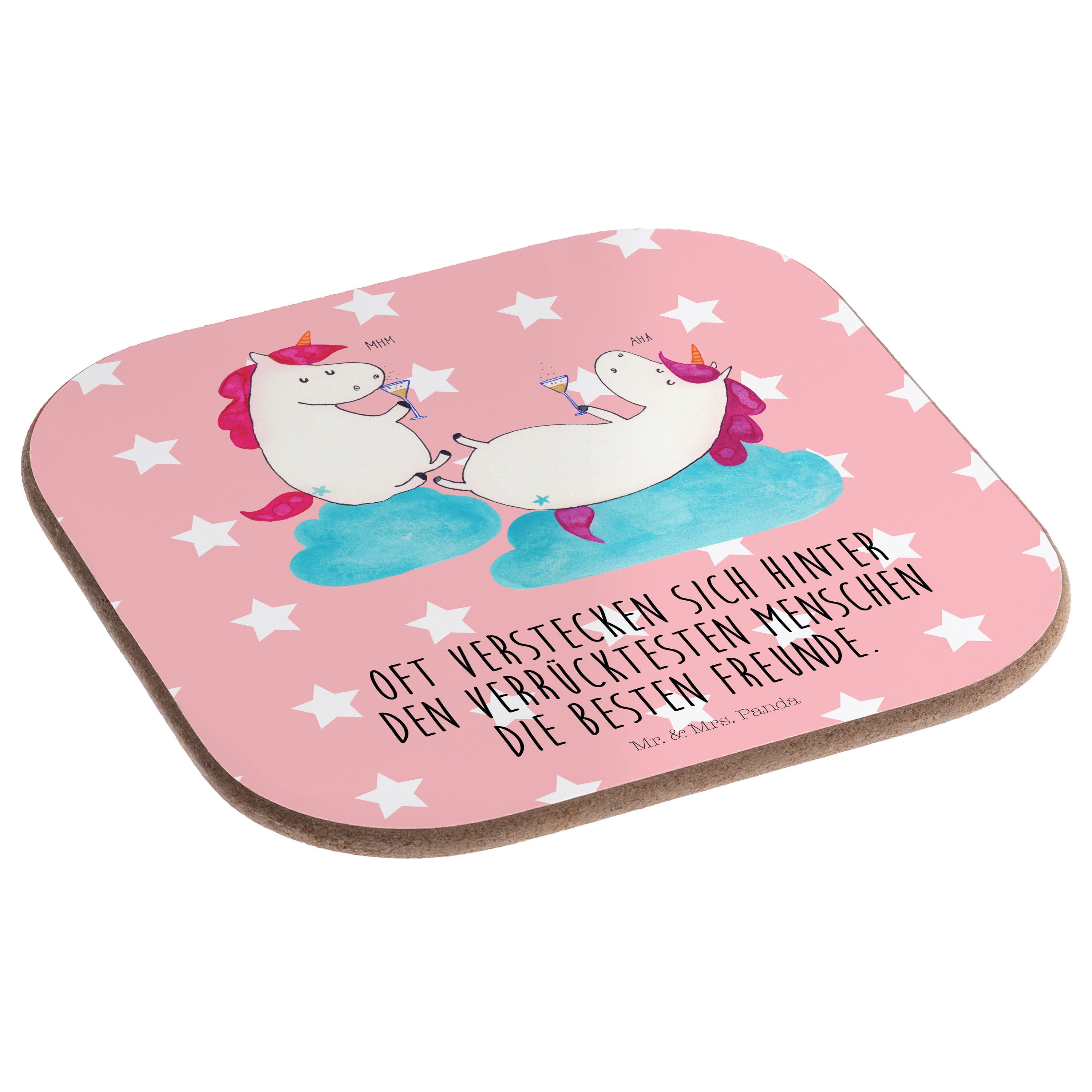 Quadratische Untersetzer Einhörner Sekt - Rot Pastell - mit Spruch