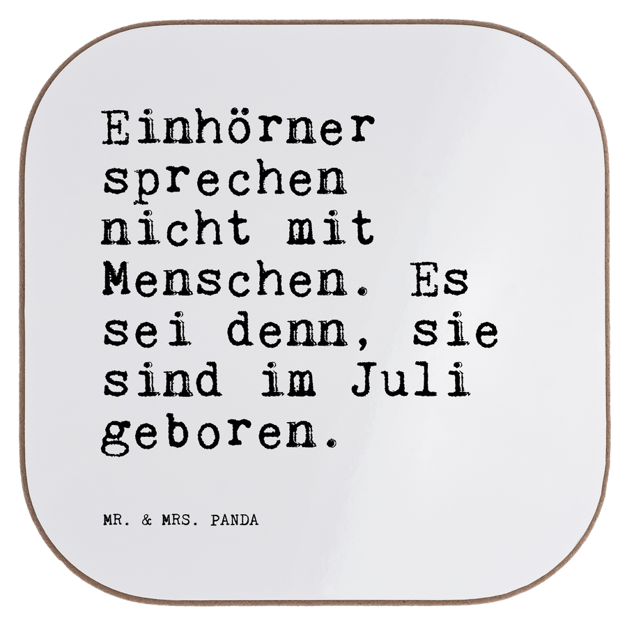 Quadratische Untersetzer Sprüche und Zitate Einhörner sprechen nicht mit Menschen. Es sei denn, sie sind im Juli geboren.