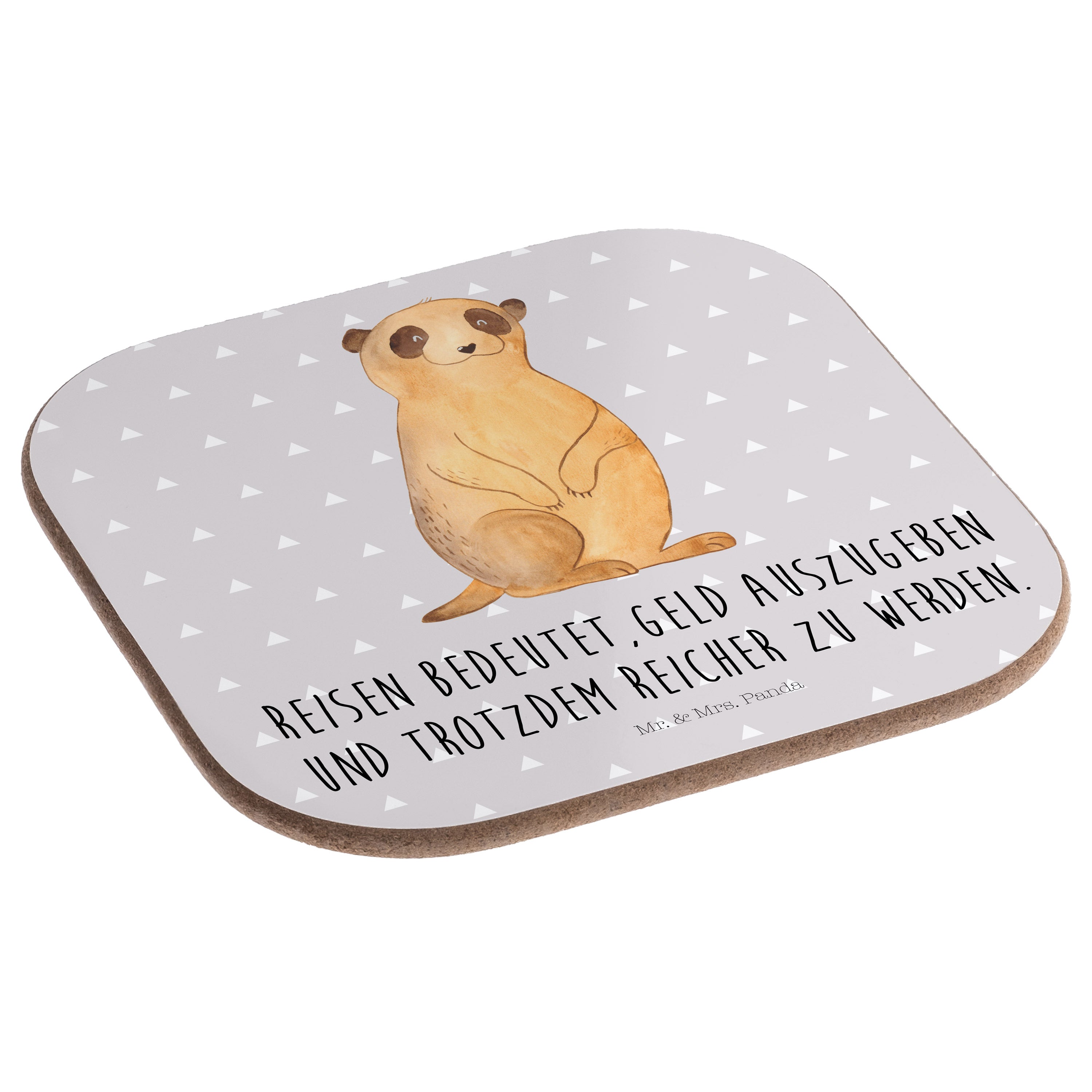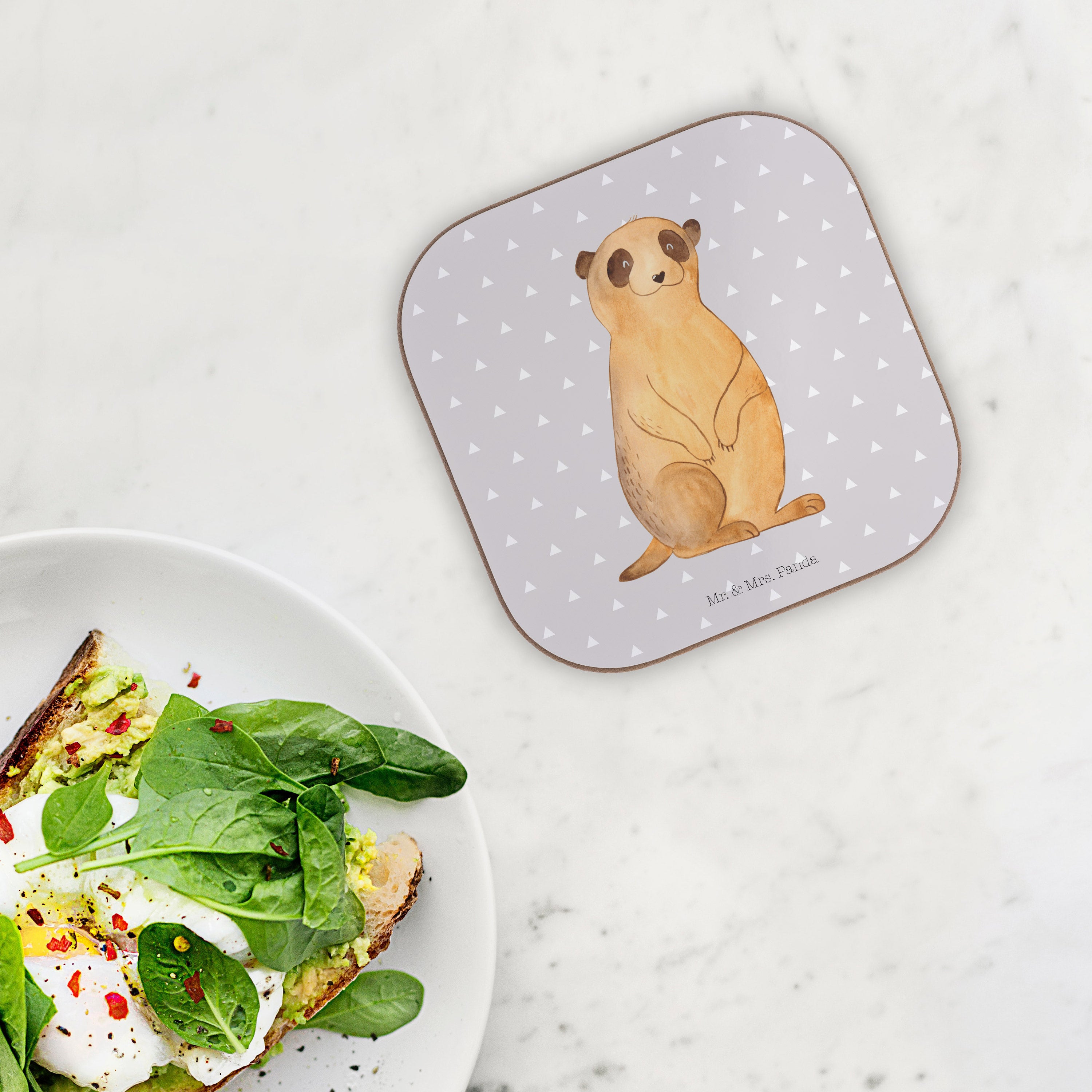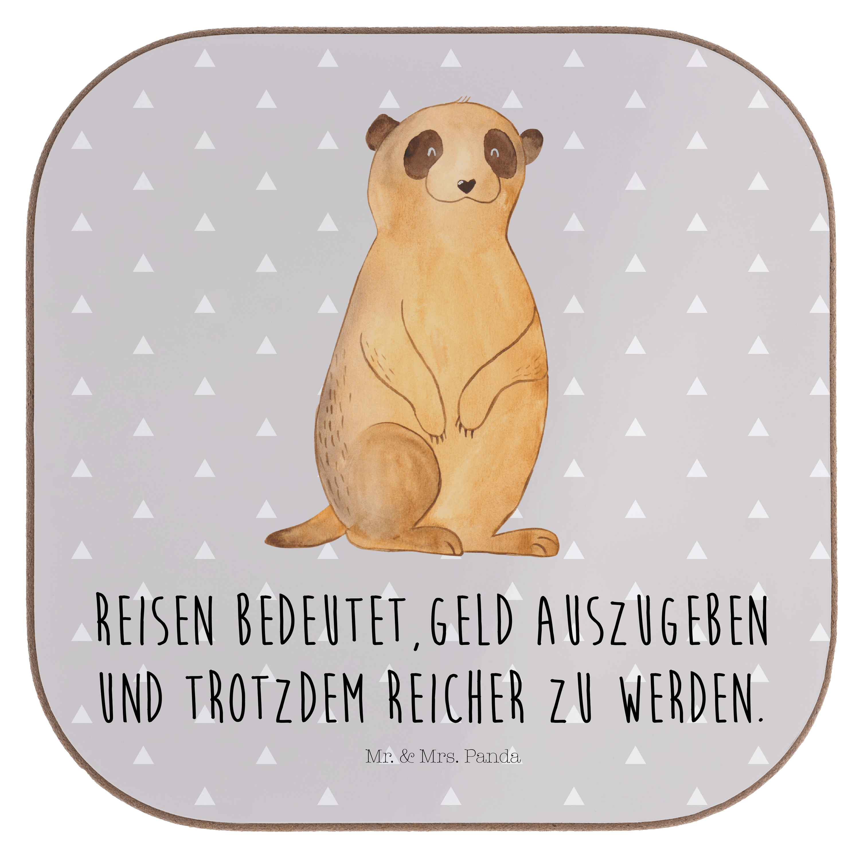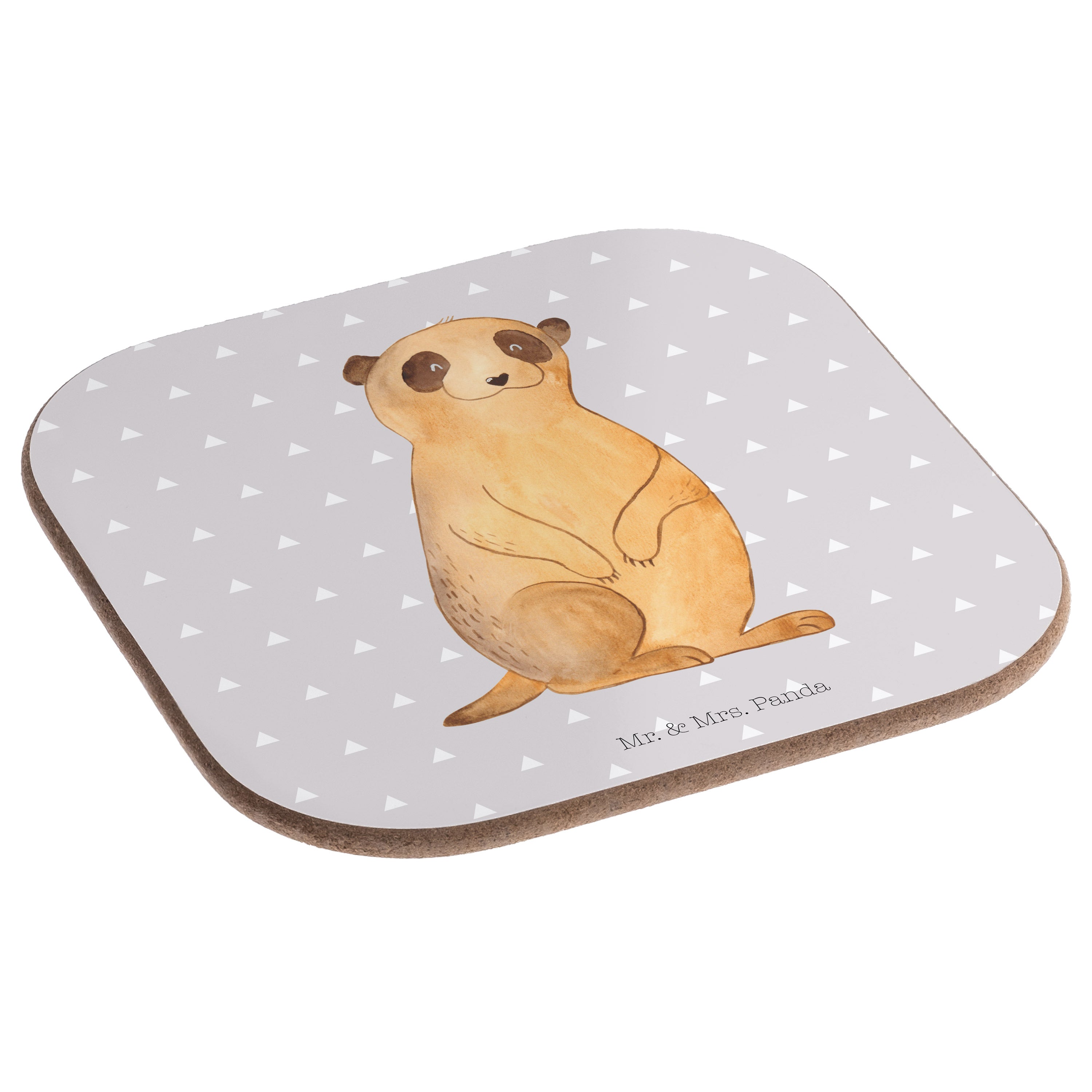 Quadratische Untersetzer Erdmännchen - mit Spruch - Grau Pastell