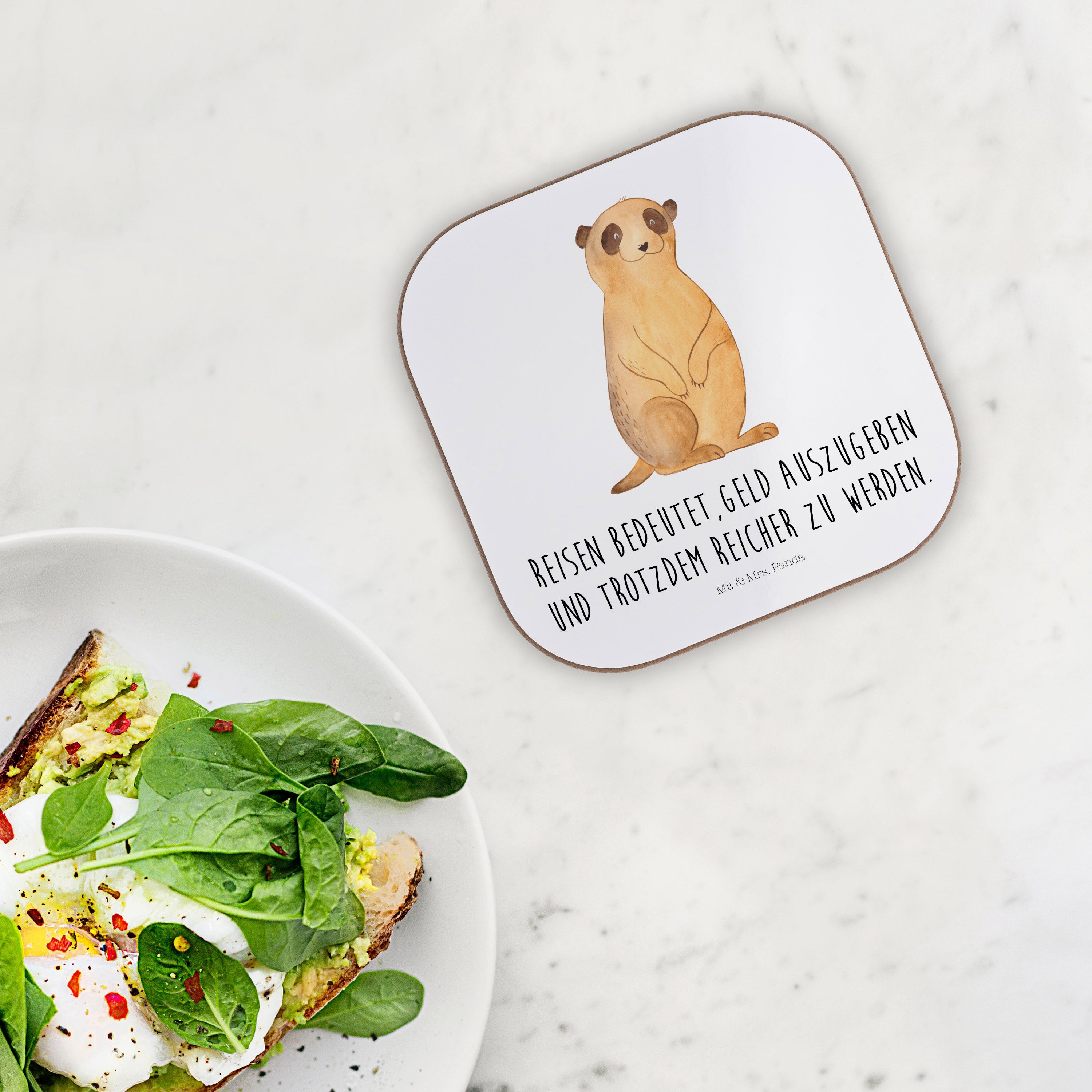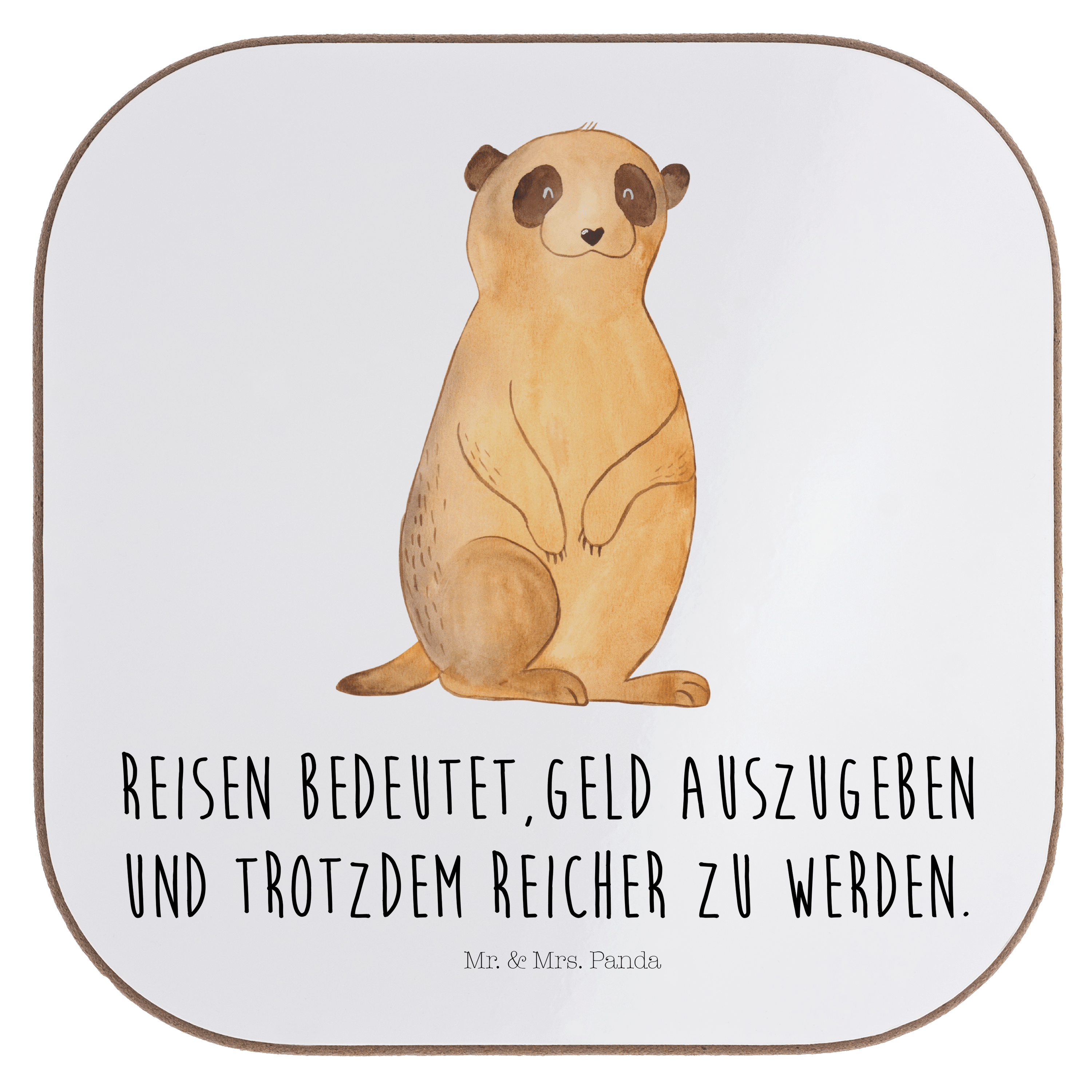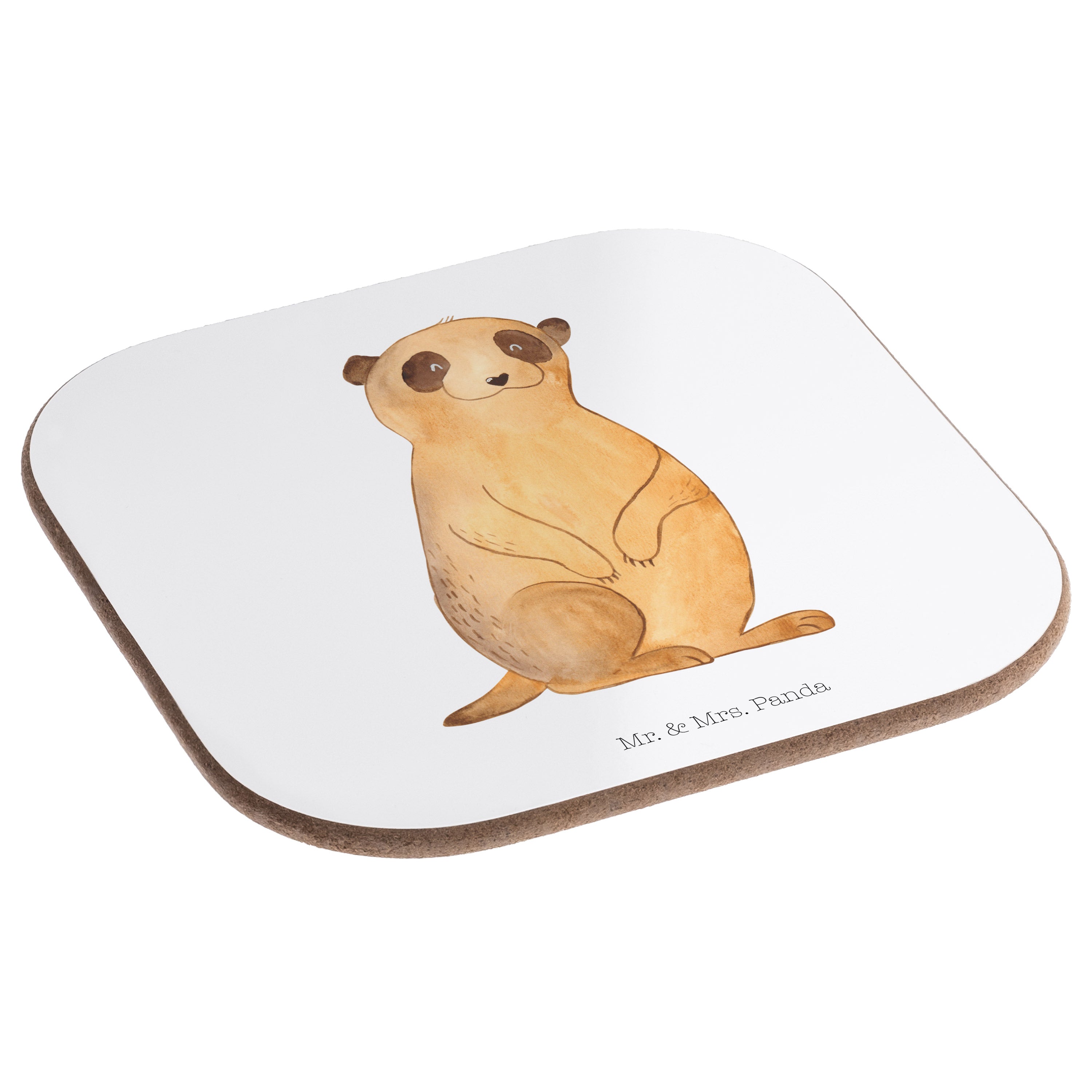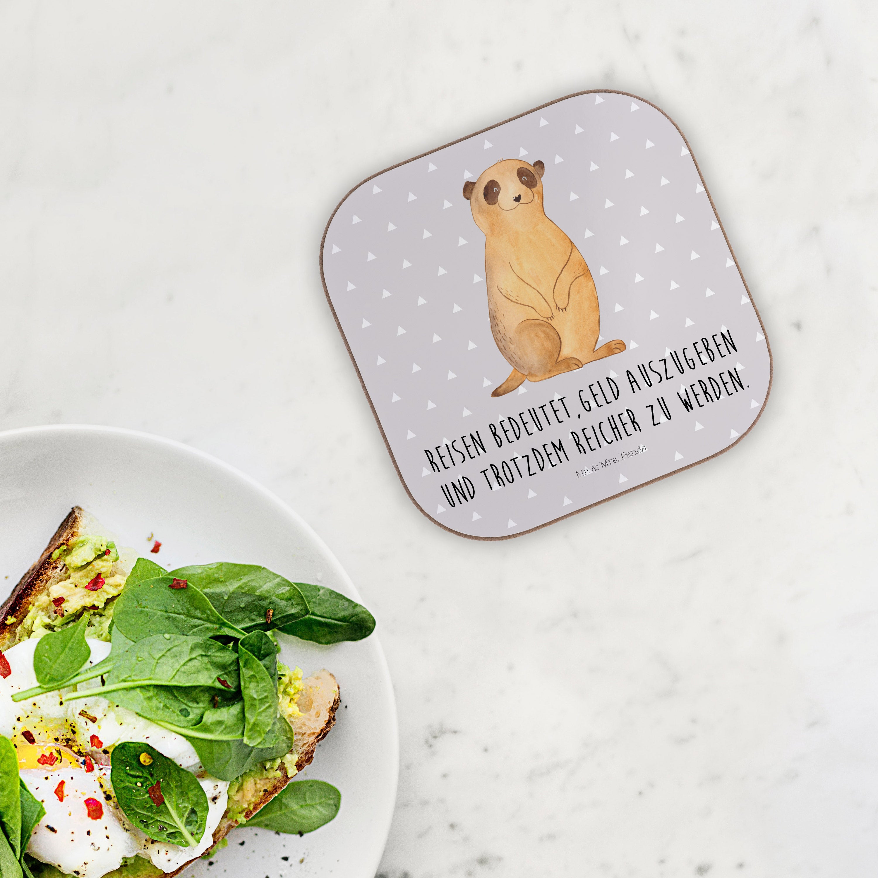 Quadratische Untersetzer Erdmännchen - mit Spruch - Grau Pastell