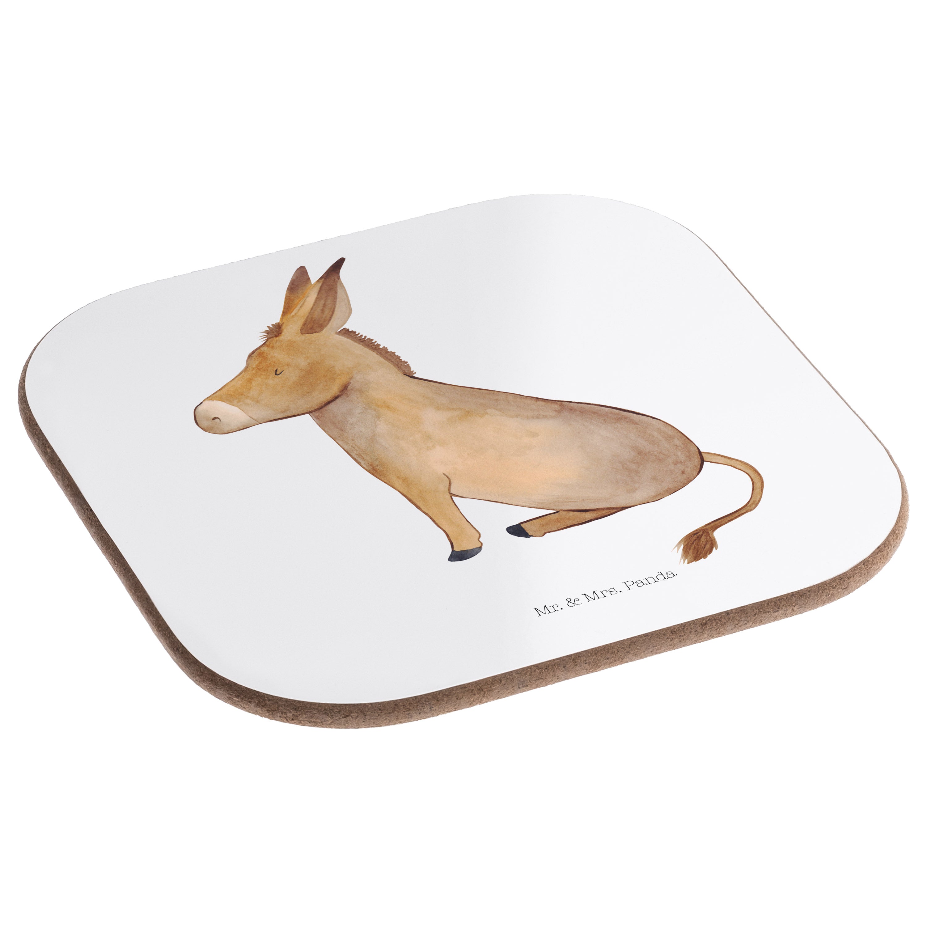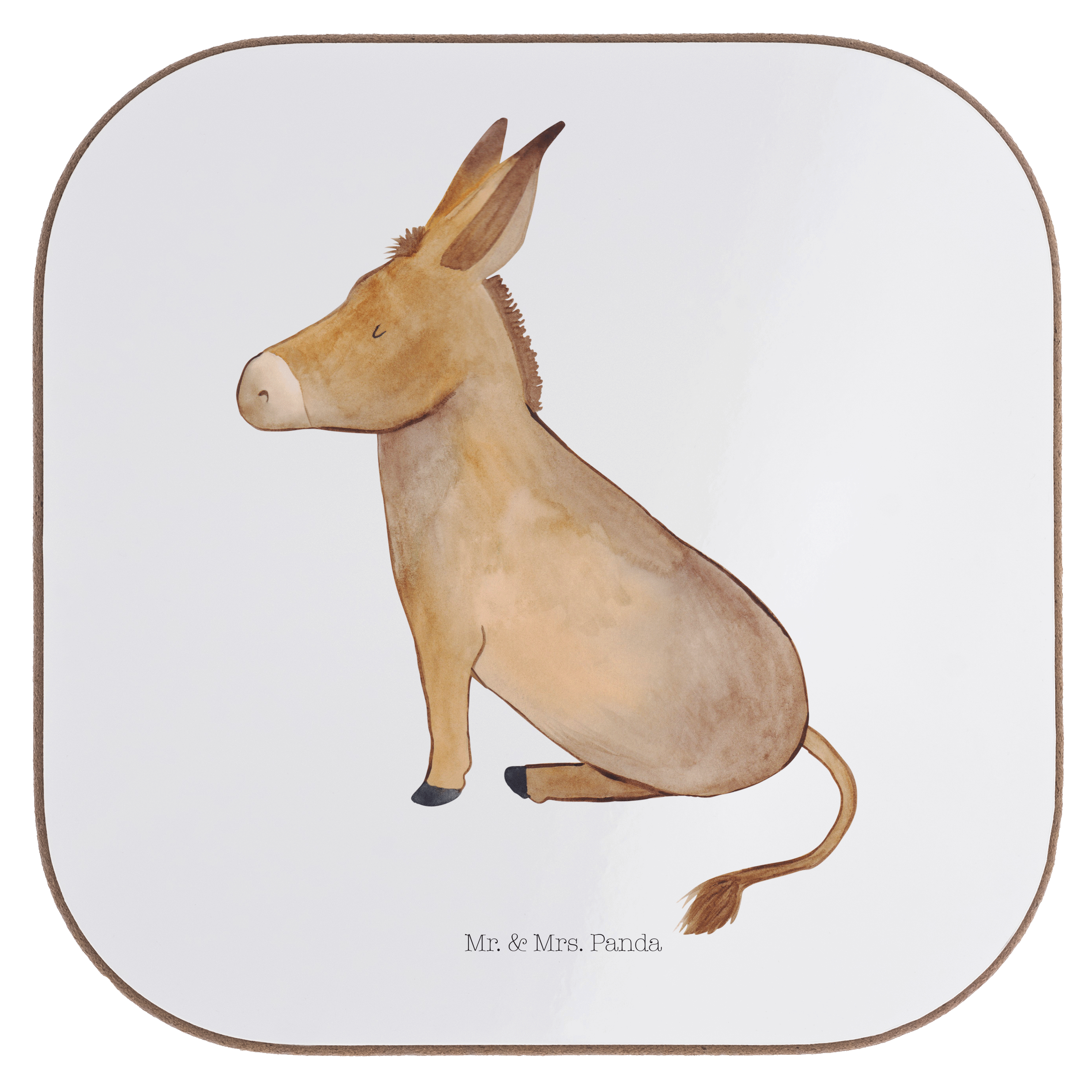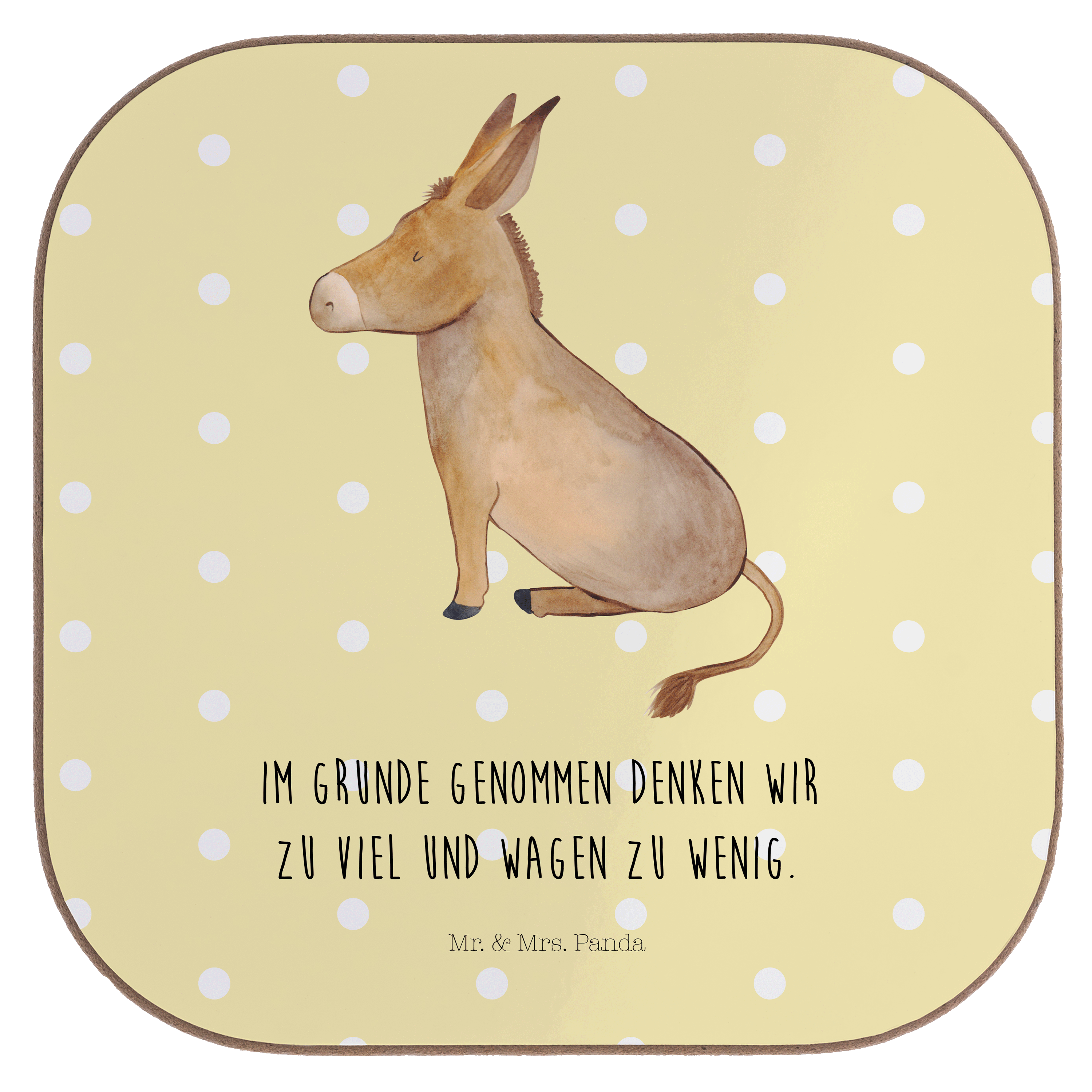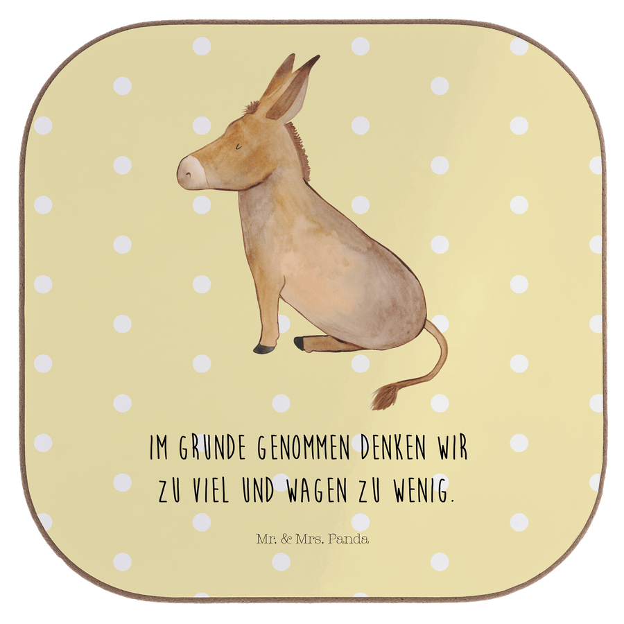 Quadratische Untersetzer Esel - mit Spruch - Gelb Pastell