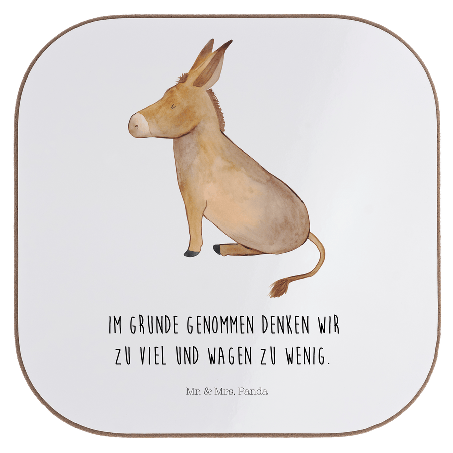 Quadratische Untersetzer Esel - mit Spruch - Weiß