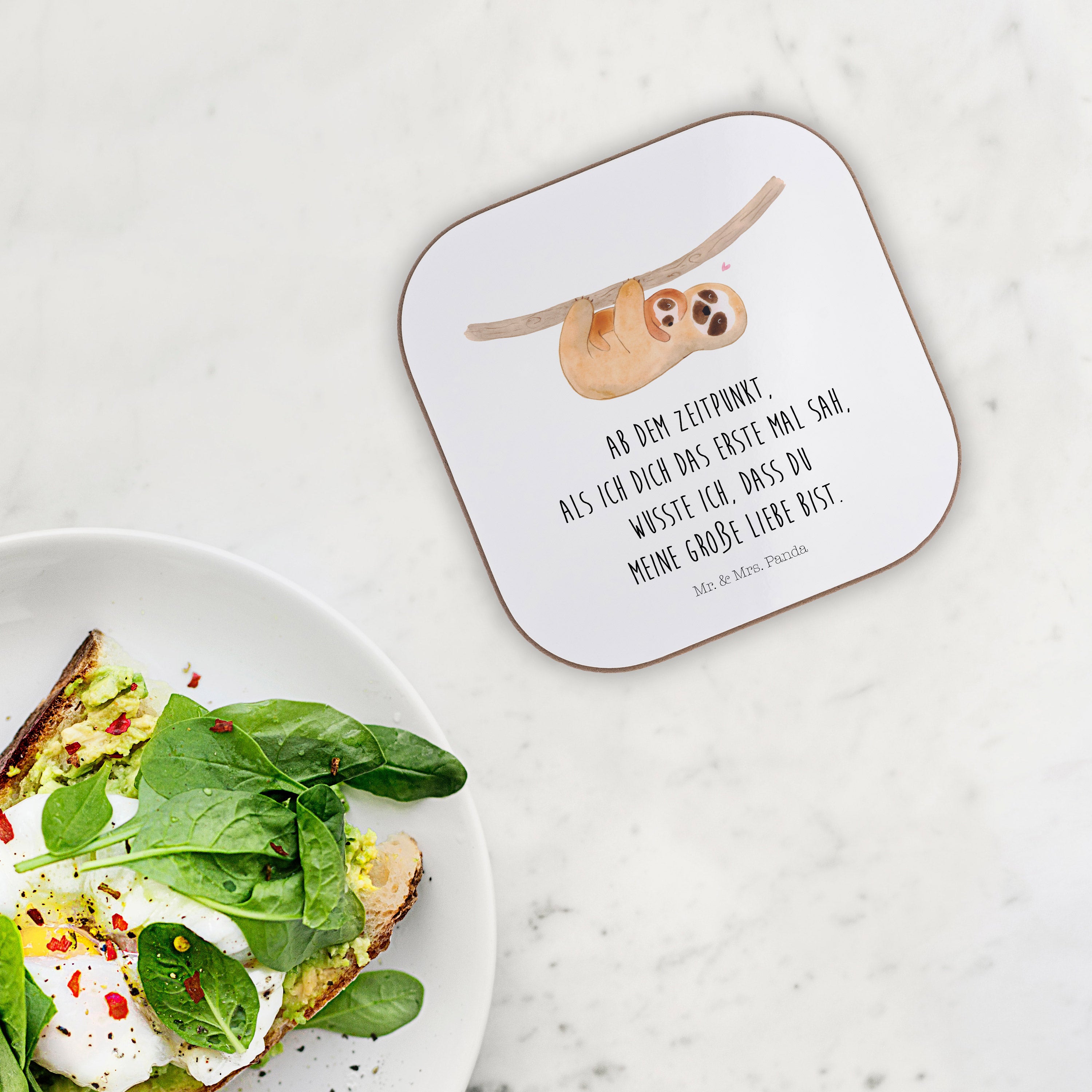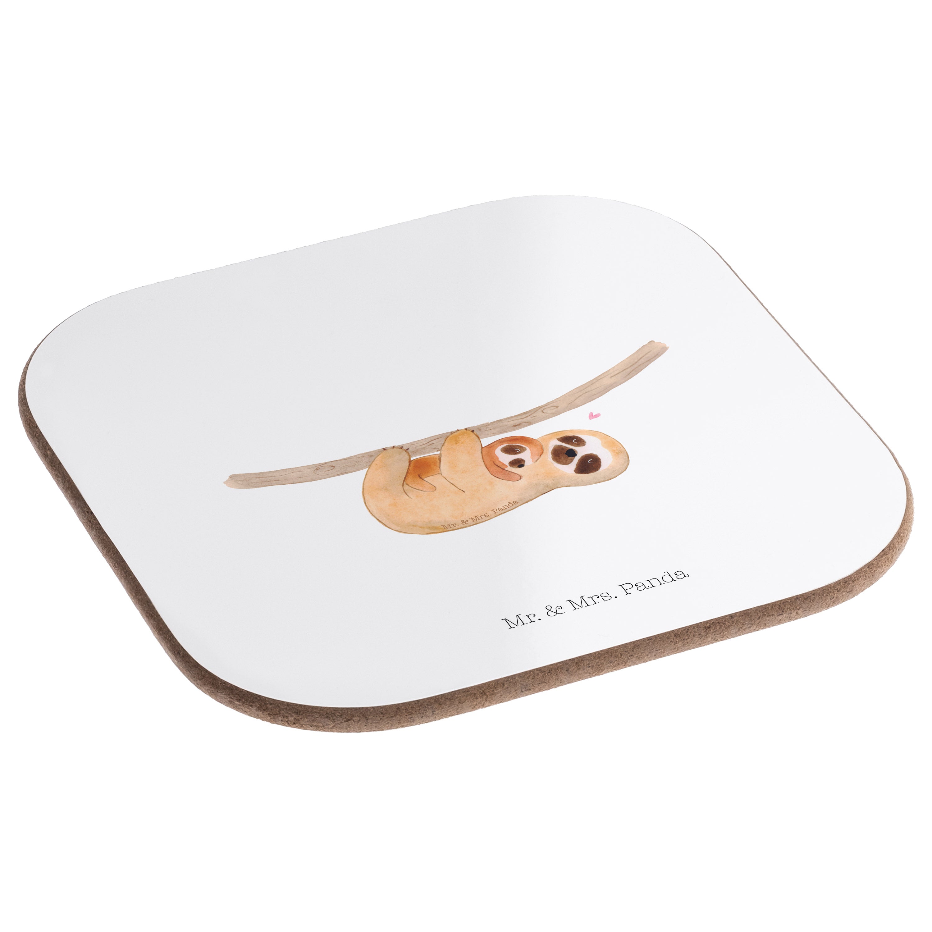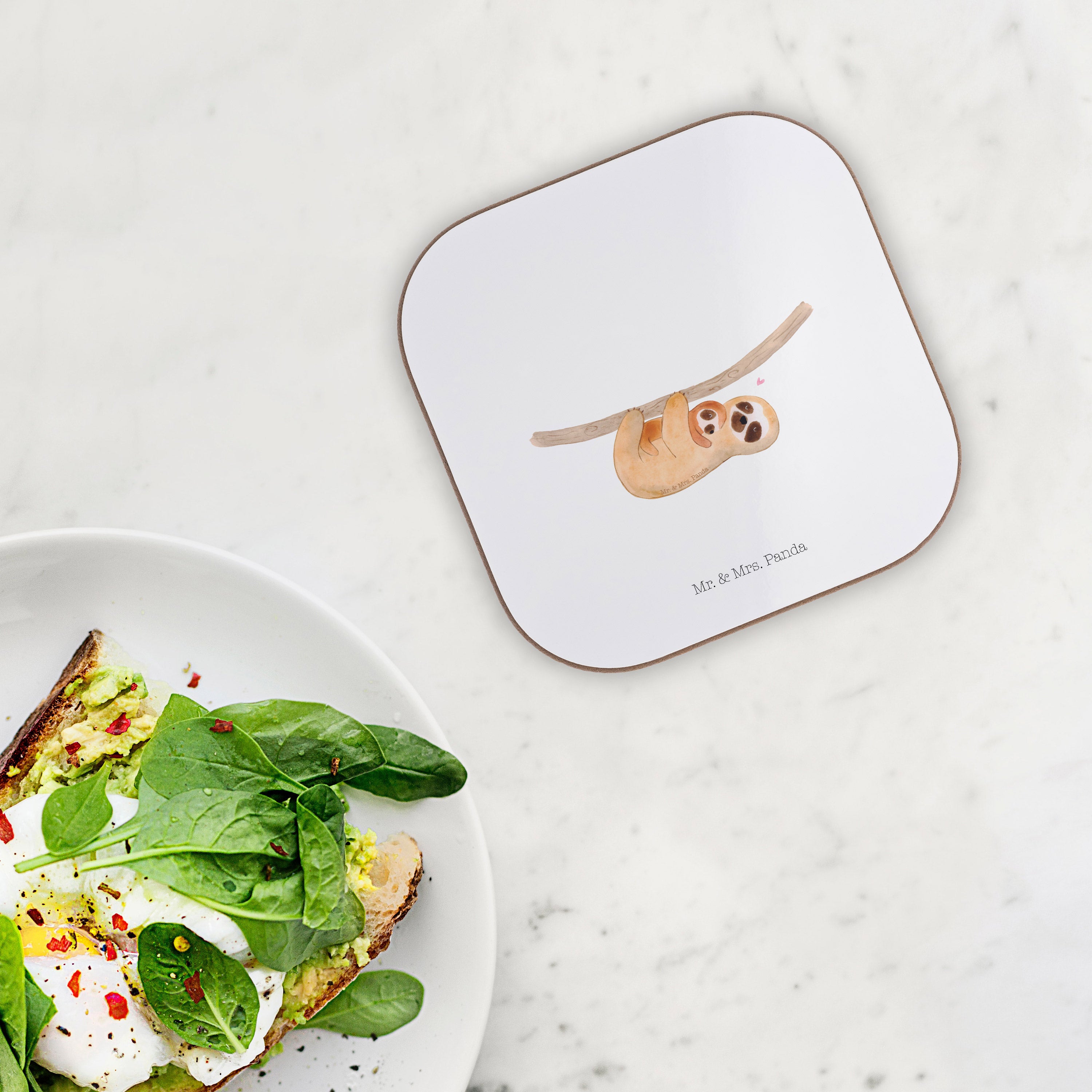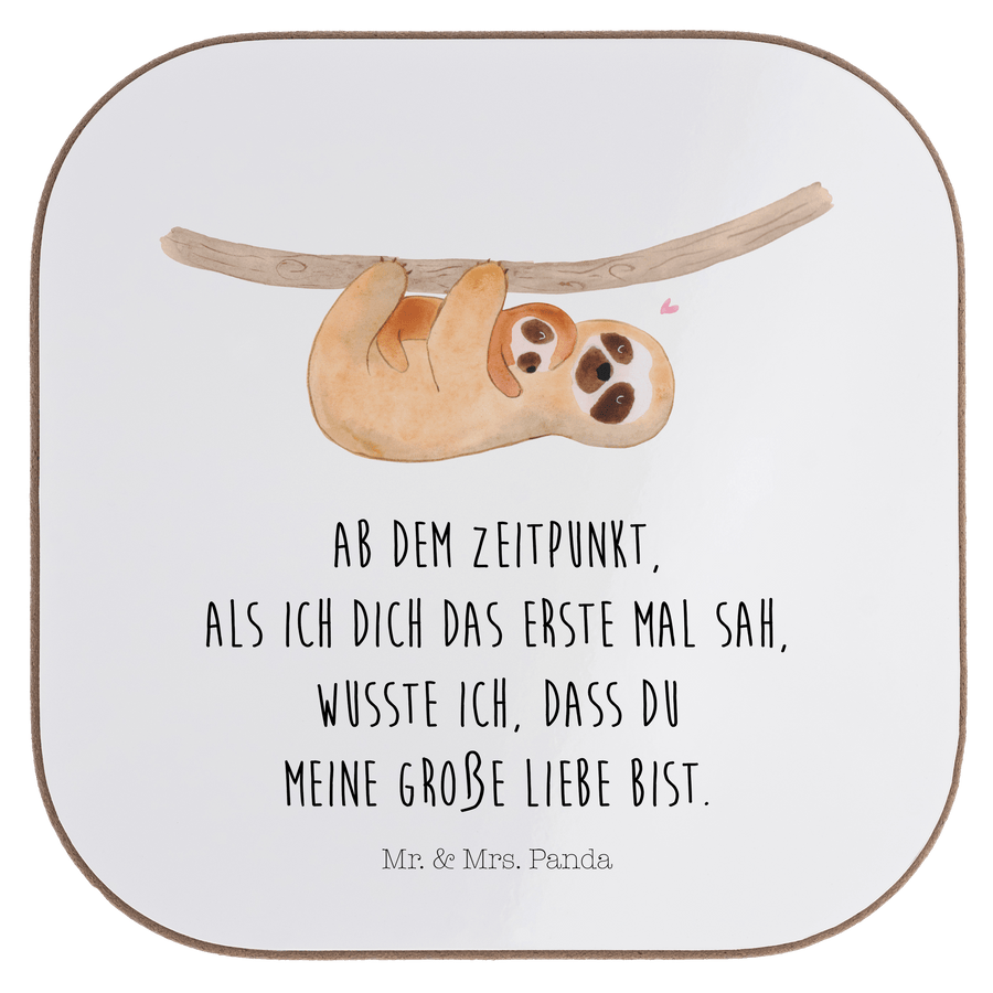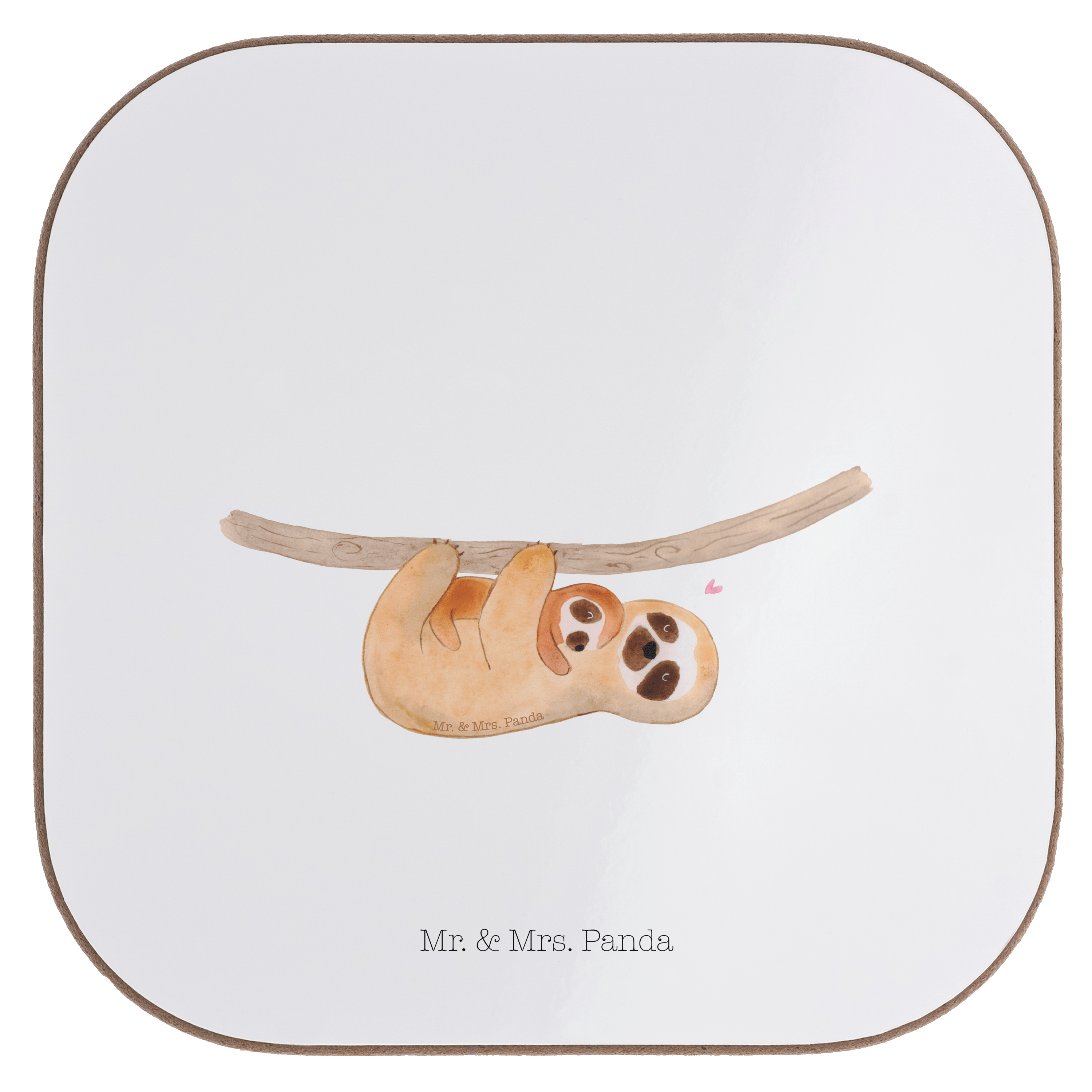 Quadratische Untersetzer Faultier mit Kind - mit Spruch