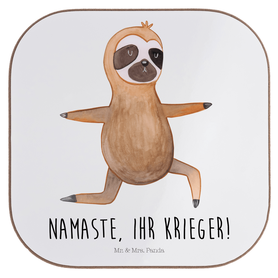 Quadratische Untersetzer Faultier Yoga - mit Spruch - Weiß