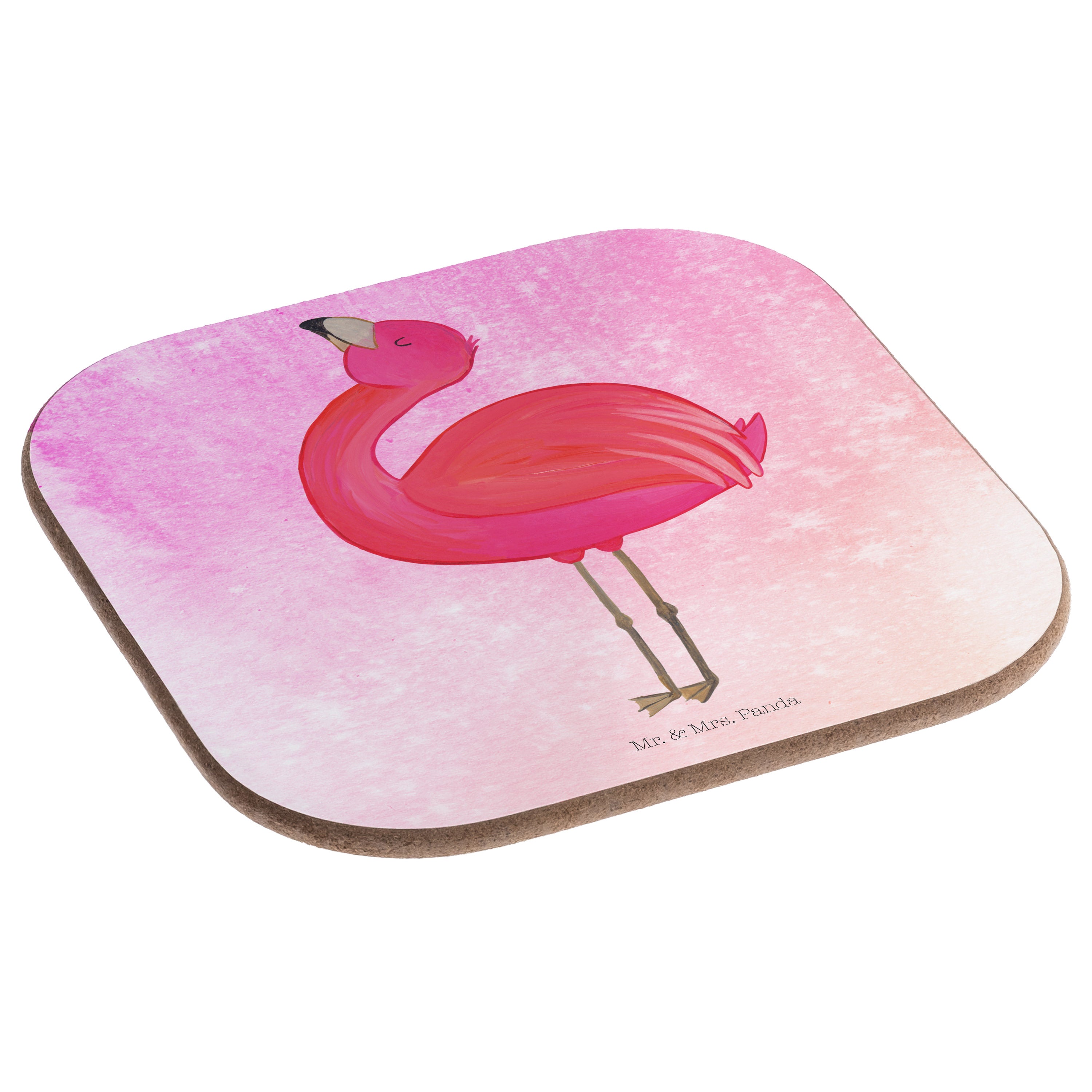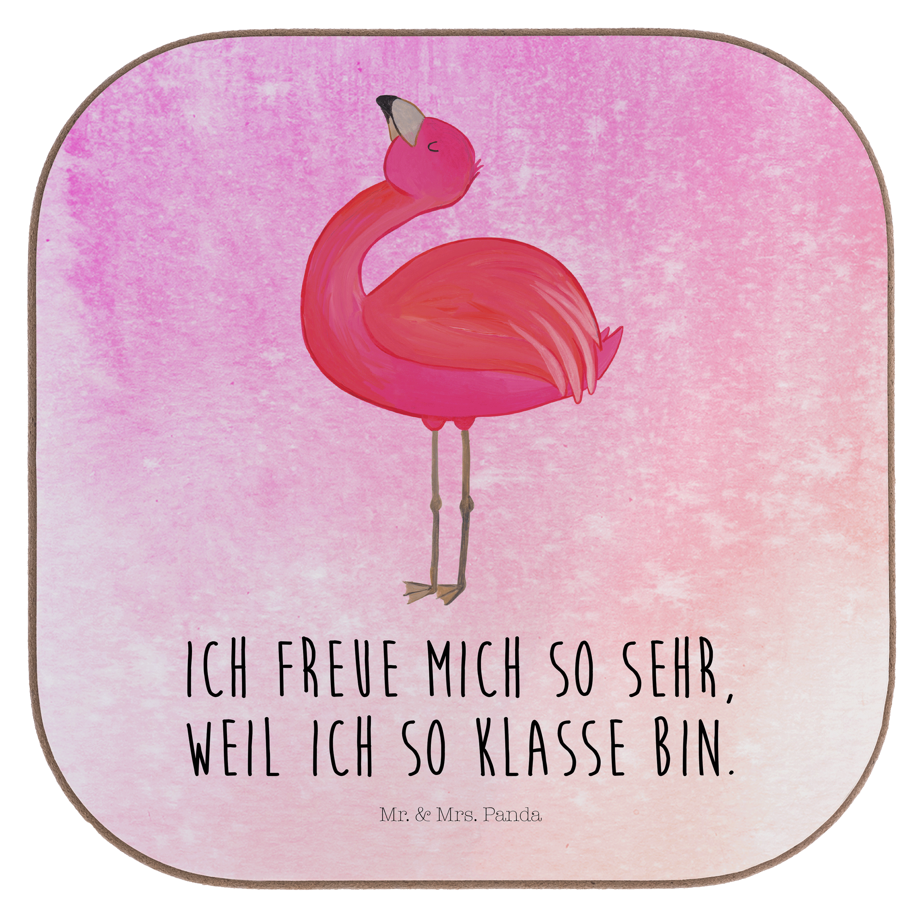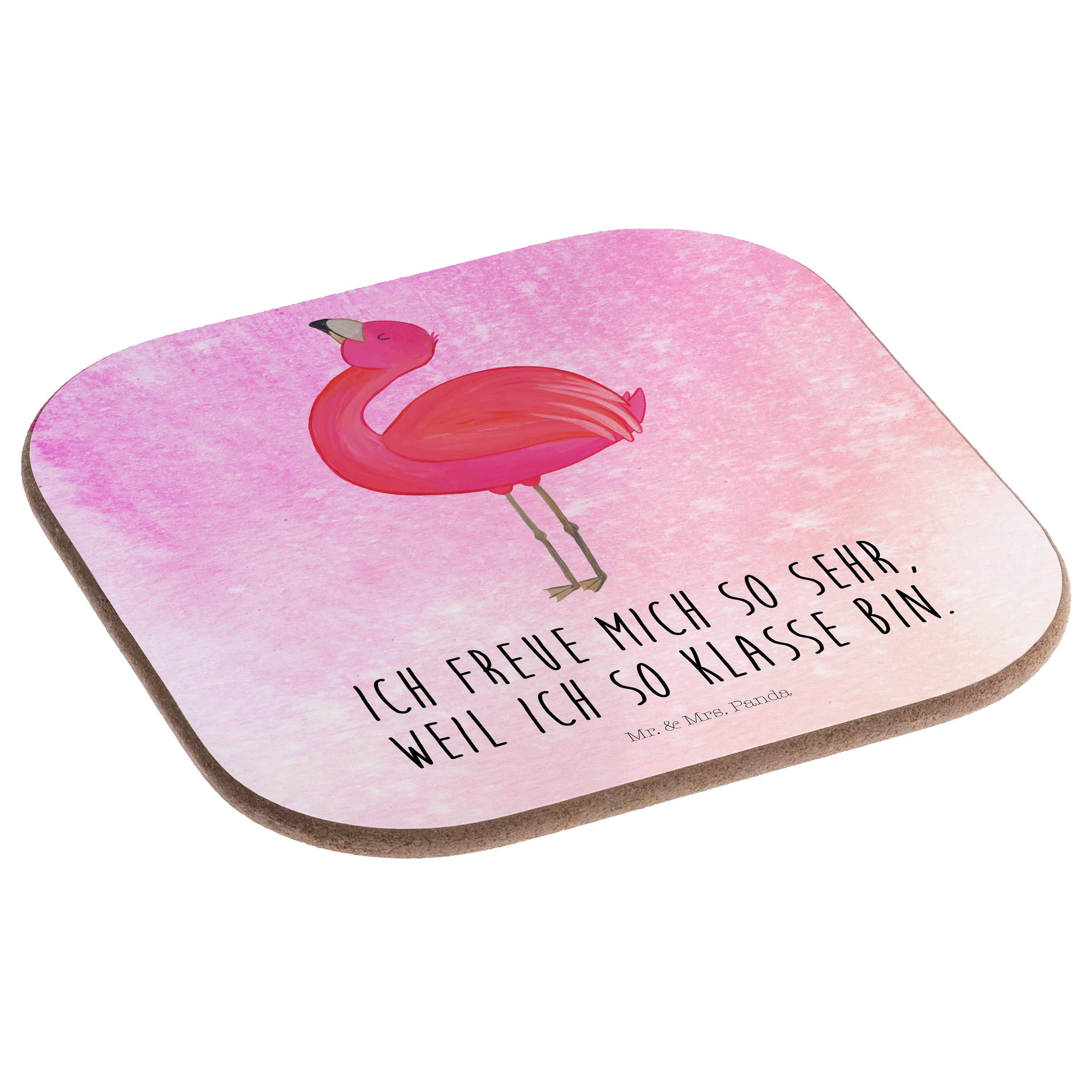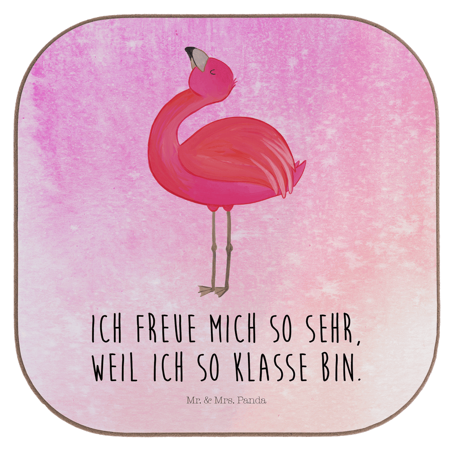 Quadratische Untersetzer Flamingo stolz - mit Spruch - Aquarell Pink