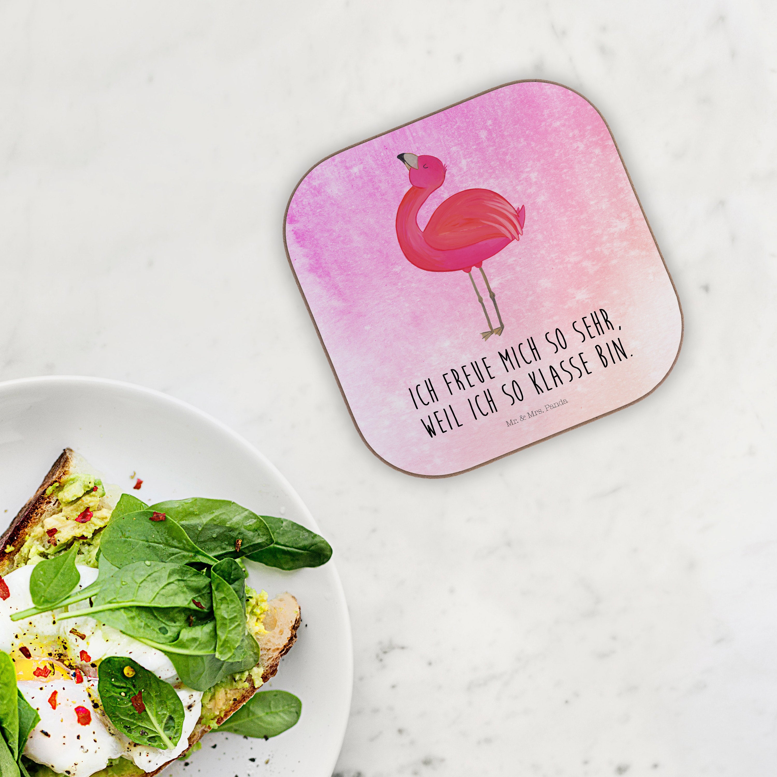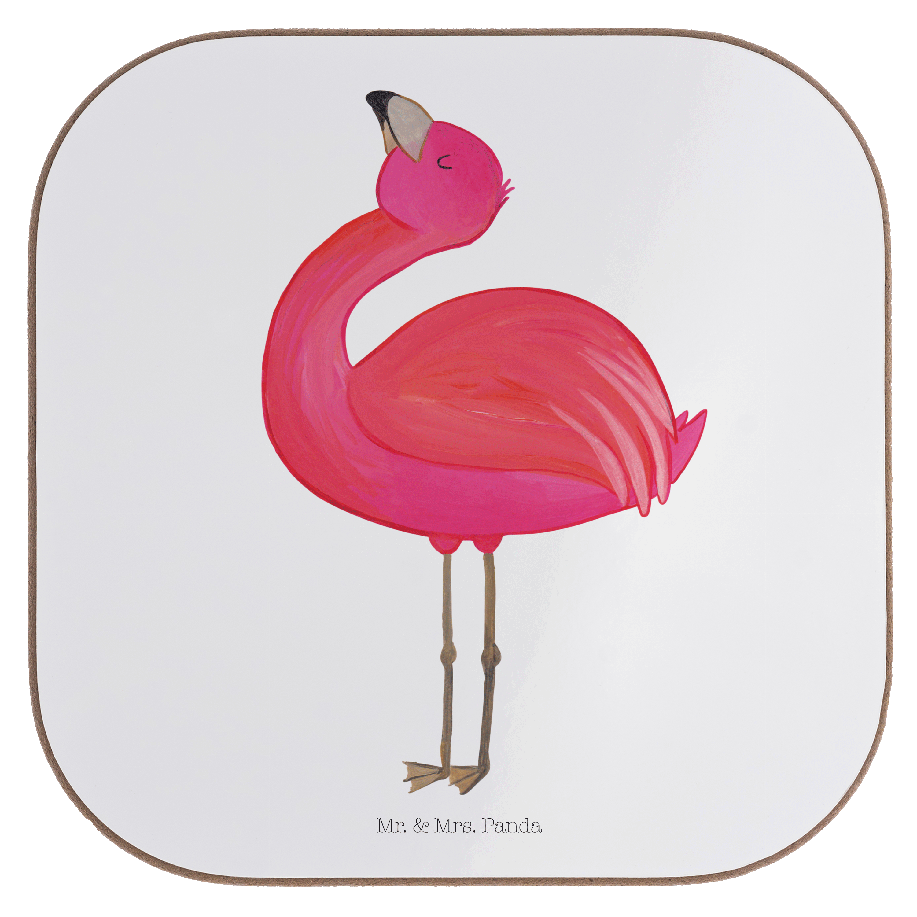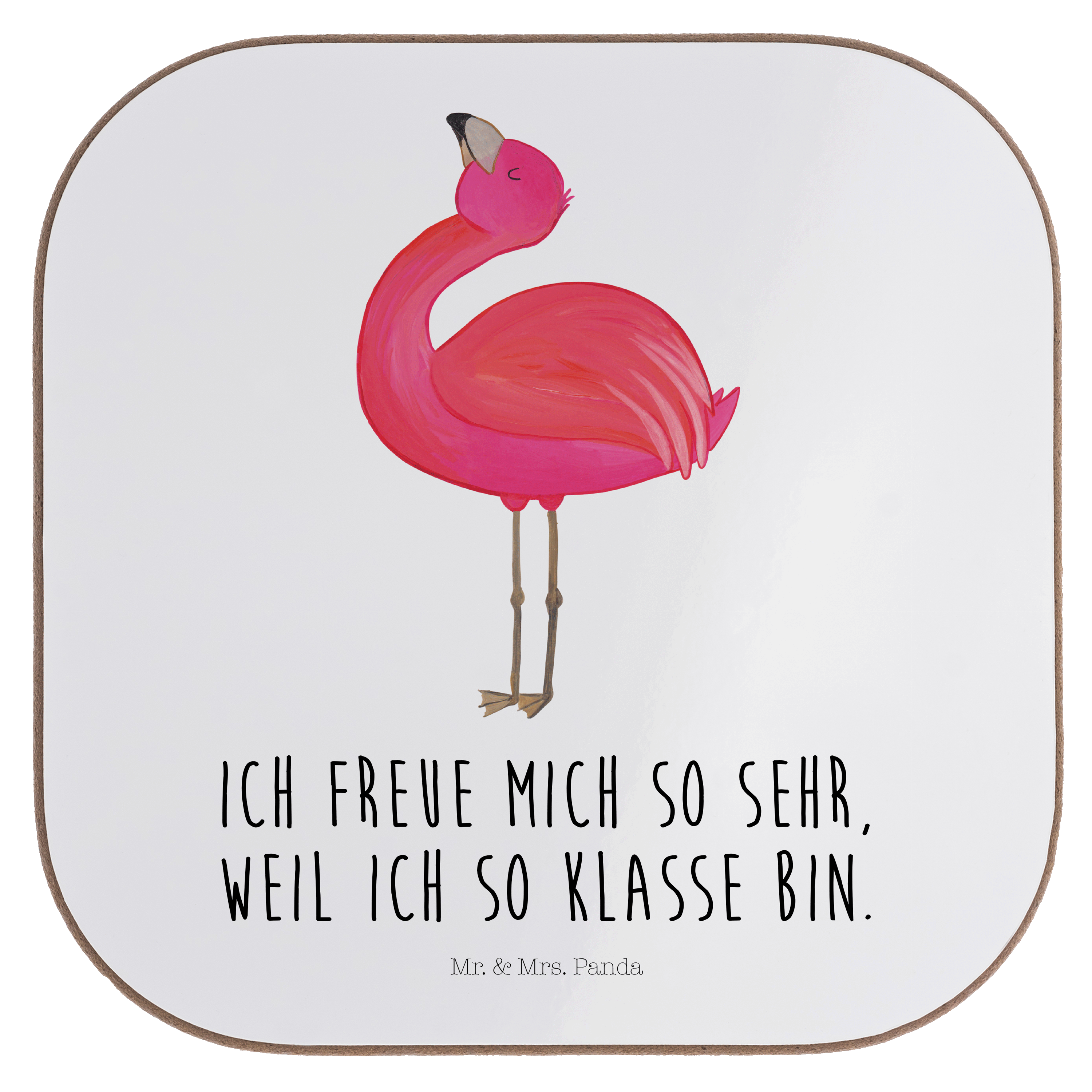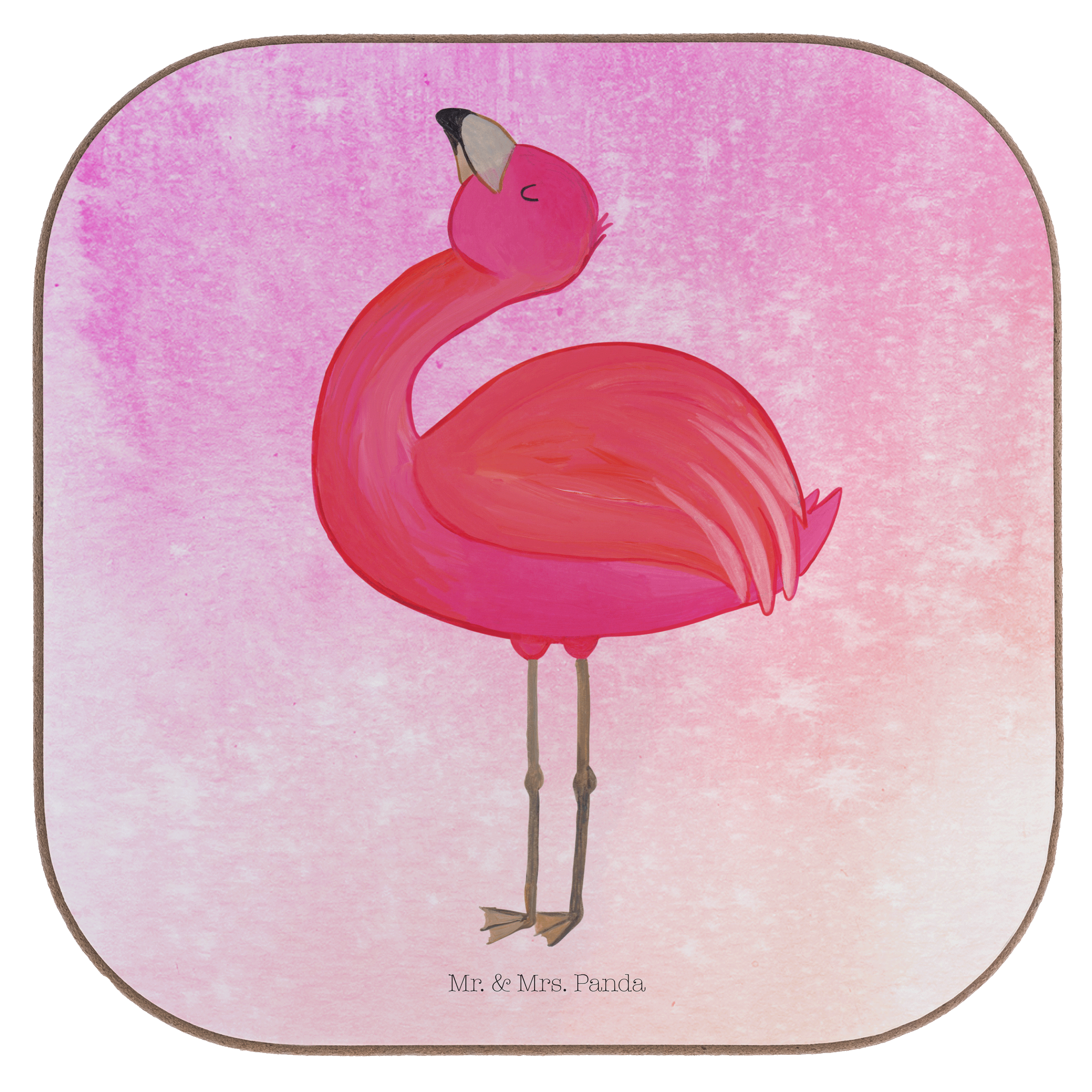 Quadratische Untersetzer Flamingo stolz - mit Spruch - Aquarell Pink