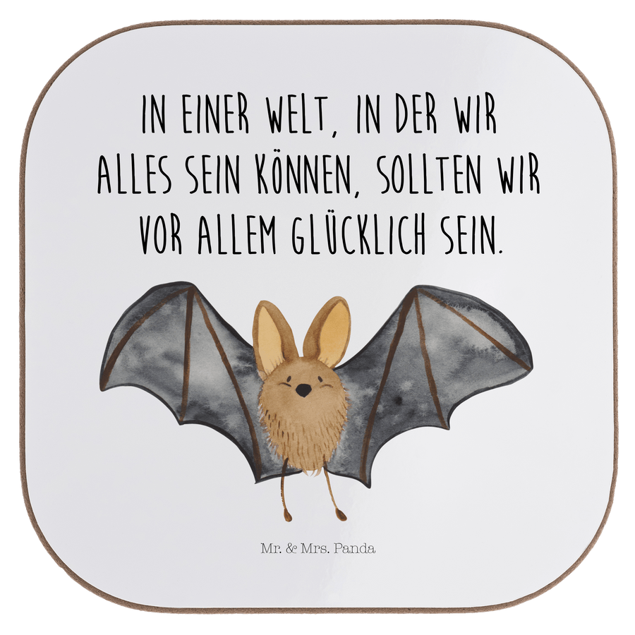 Quadratische Untersetzer Fledermaus Flügel - mit Spruch - Weiß