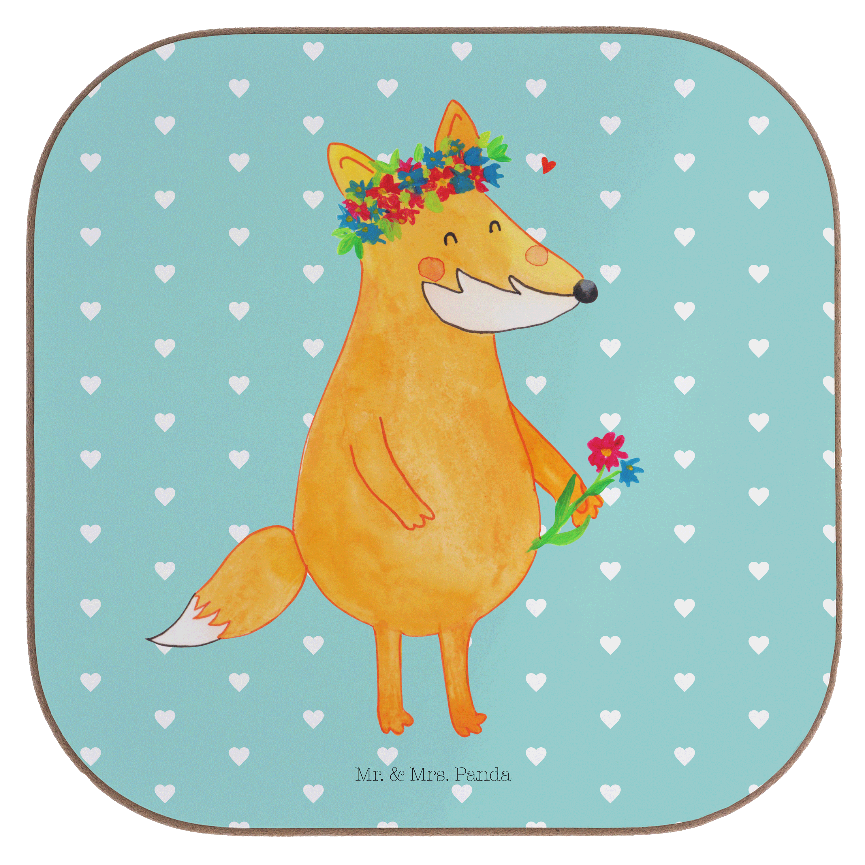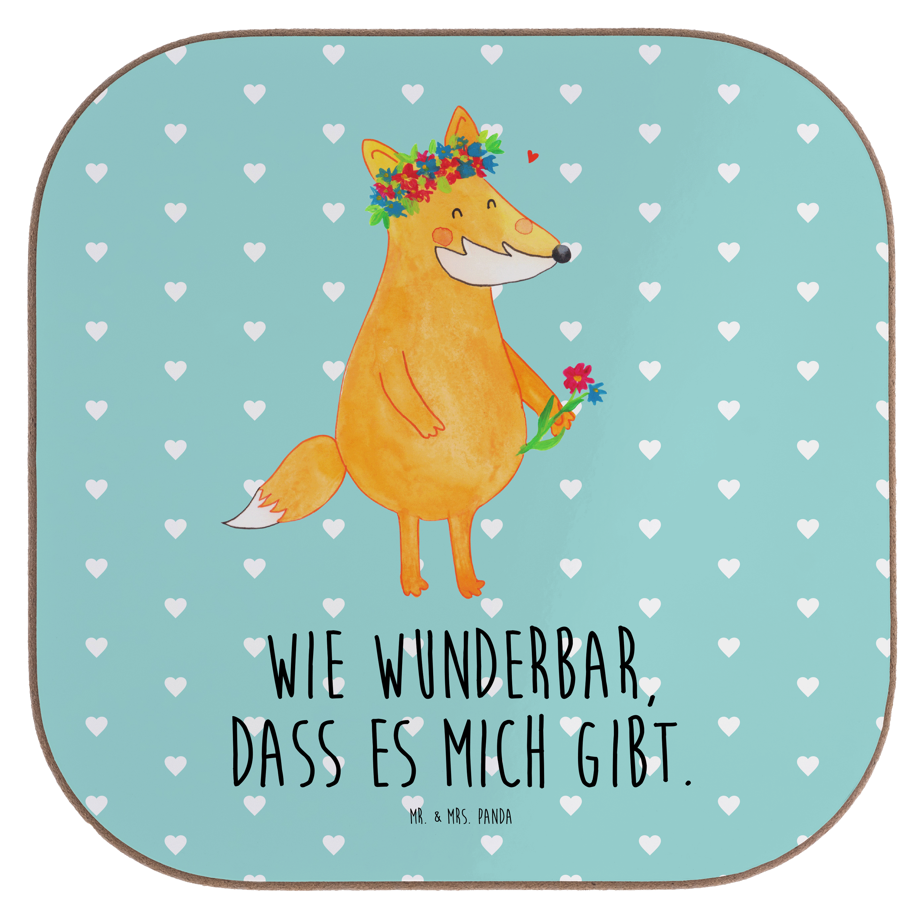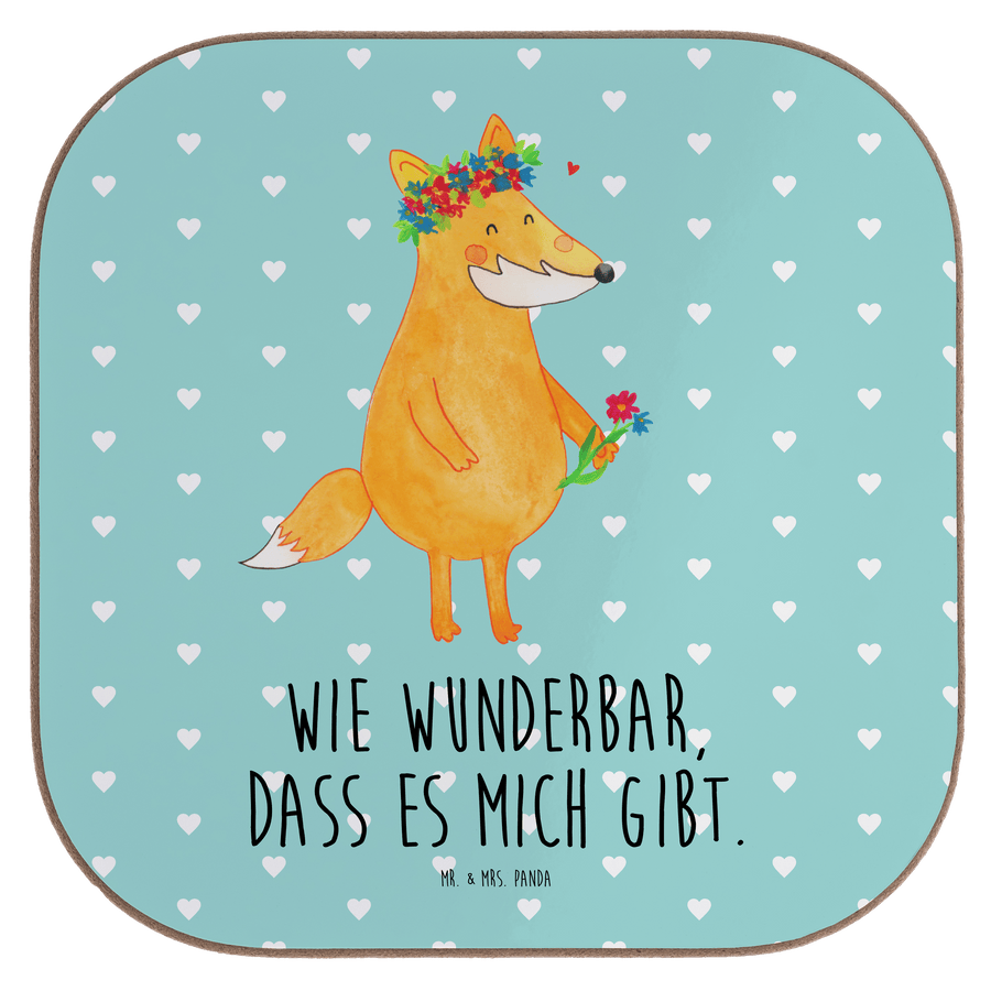Quadratische Untersetzer Fuchs Blumenliebe - mit Spruch - Türkis Pastell
