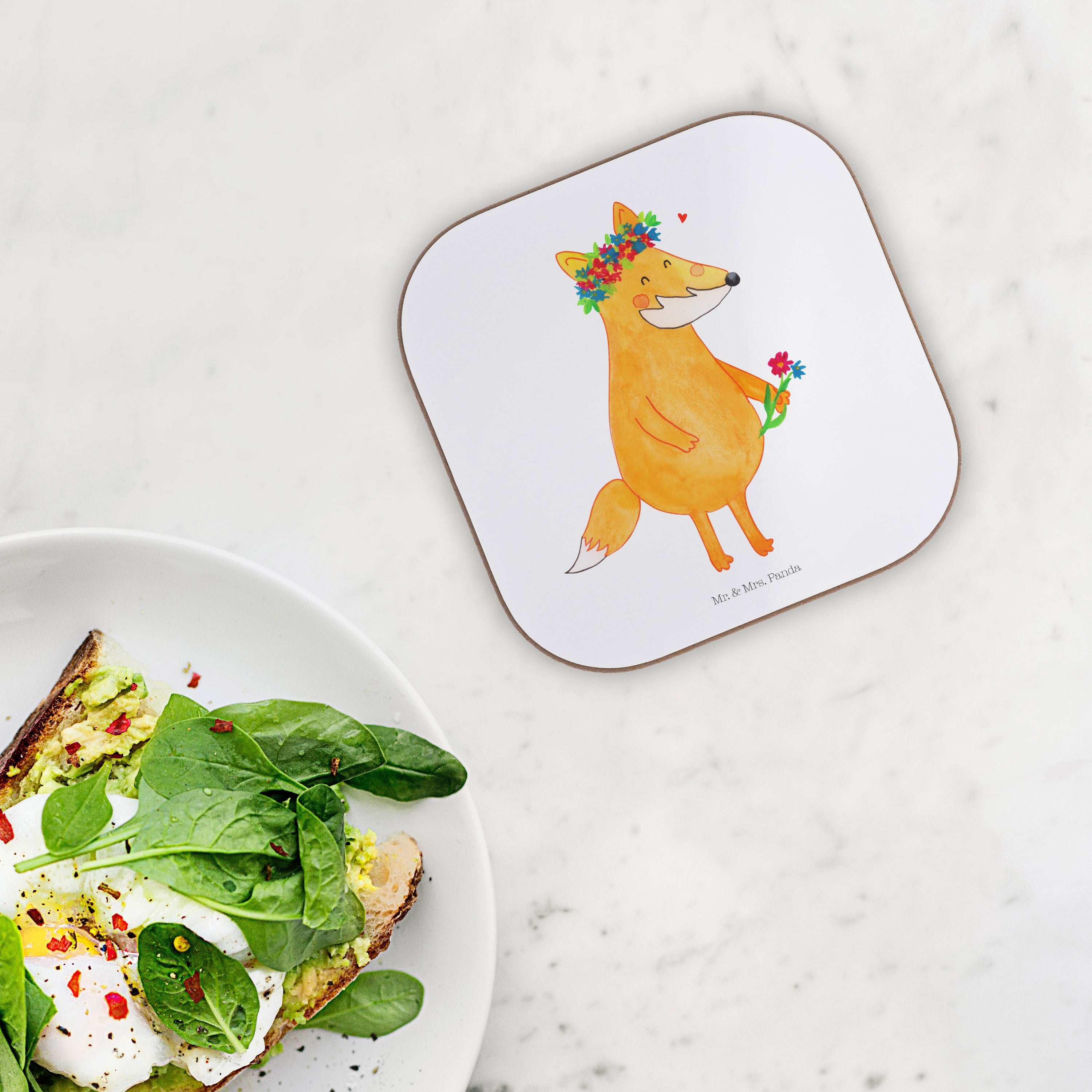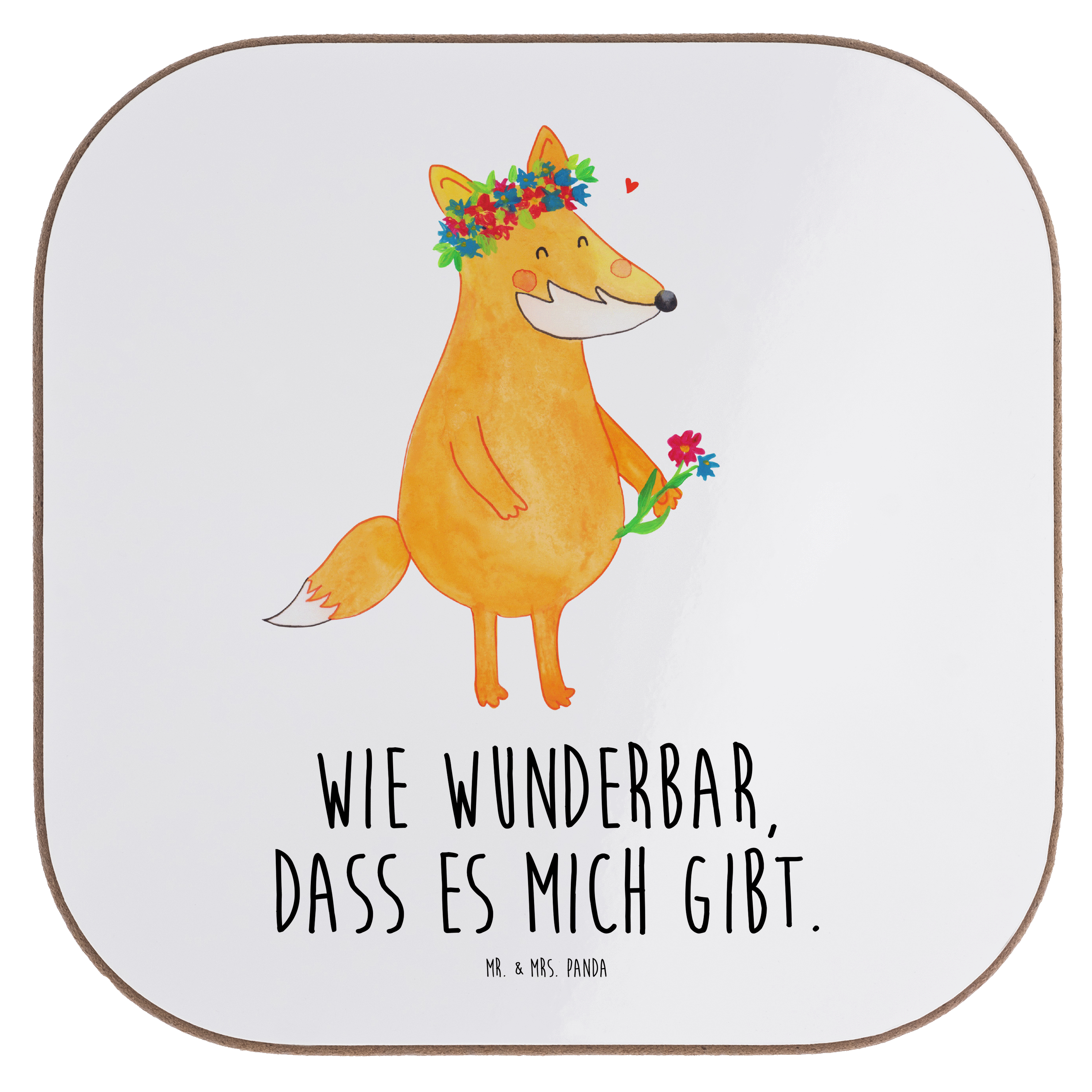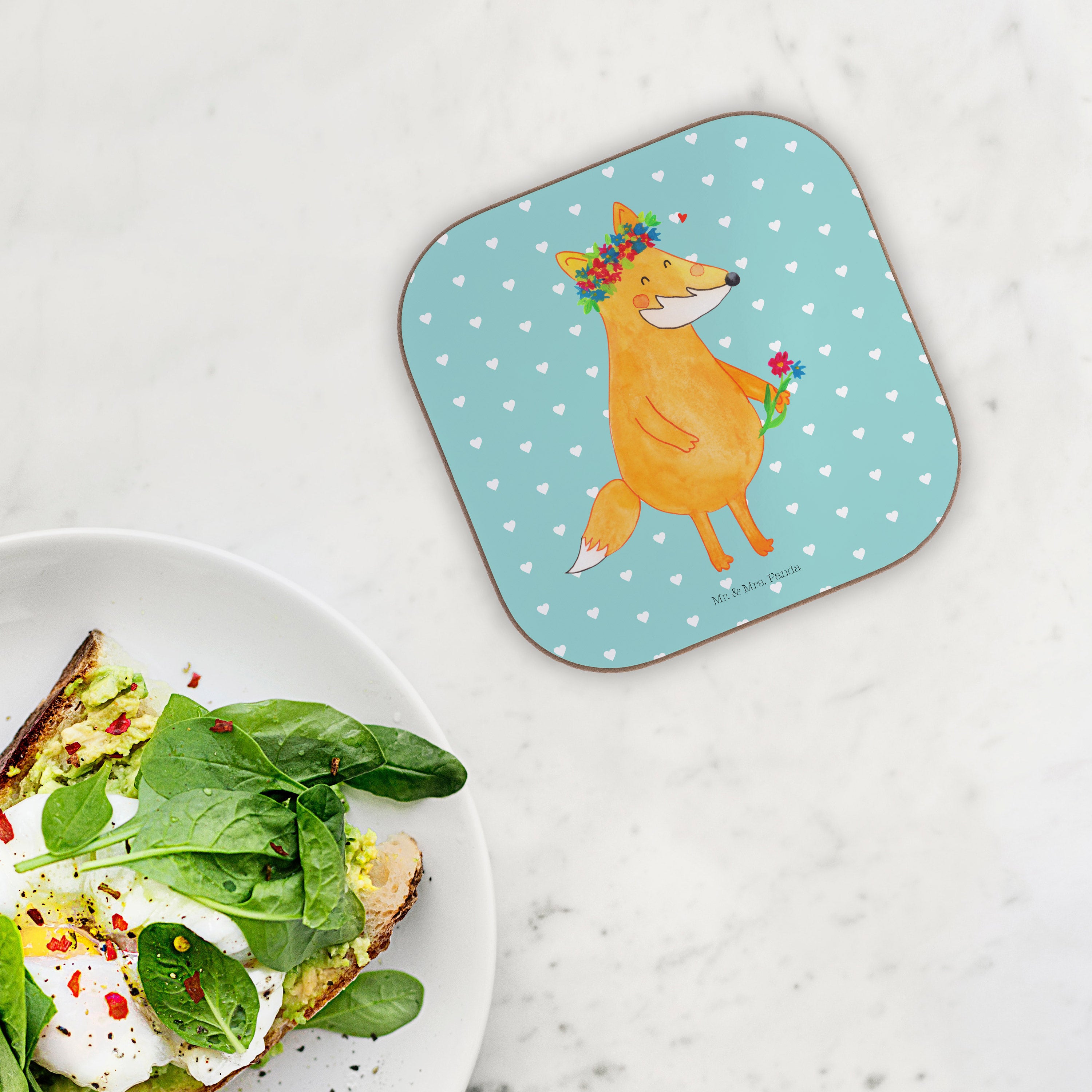 Quadratische Untersetzer Fuchs Blumenliebe - mit Spruch - Türkis Pastell