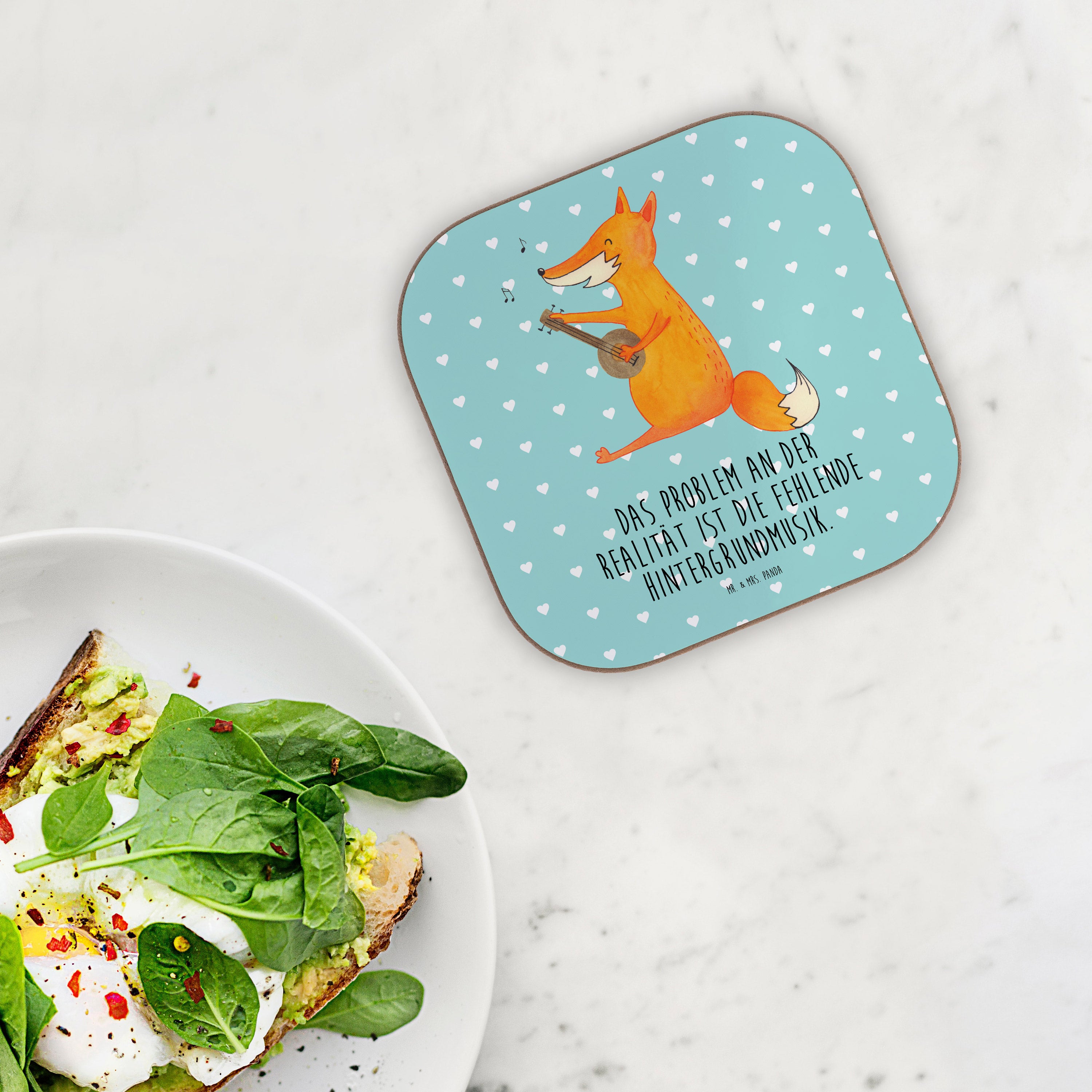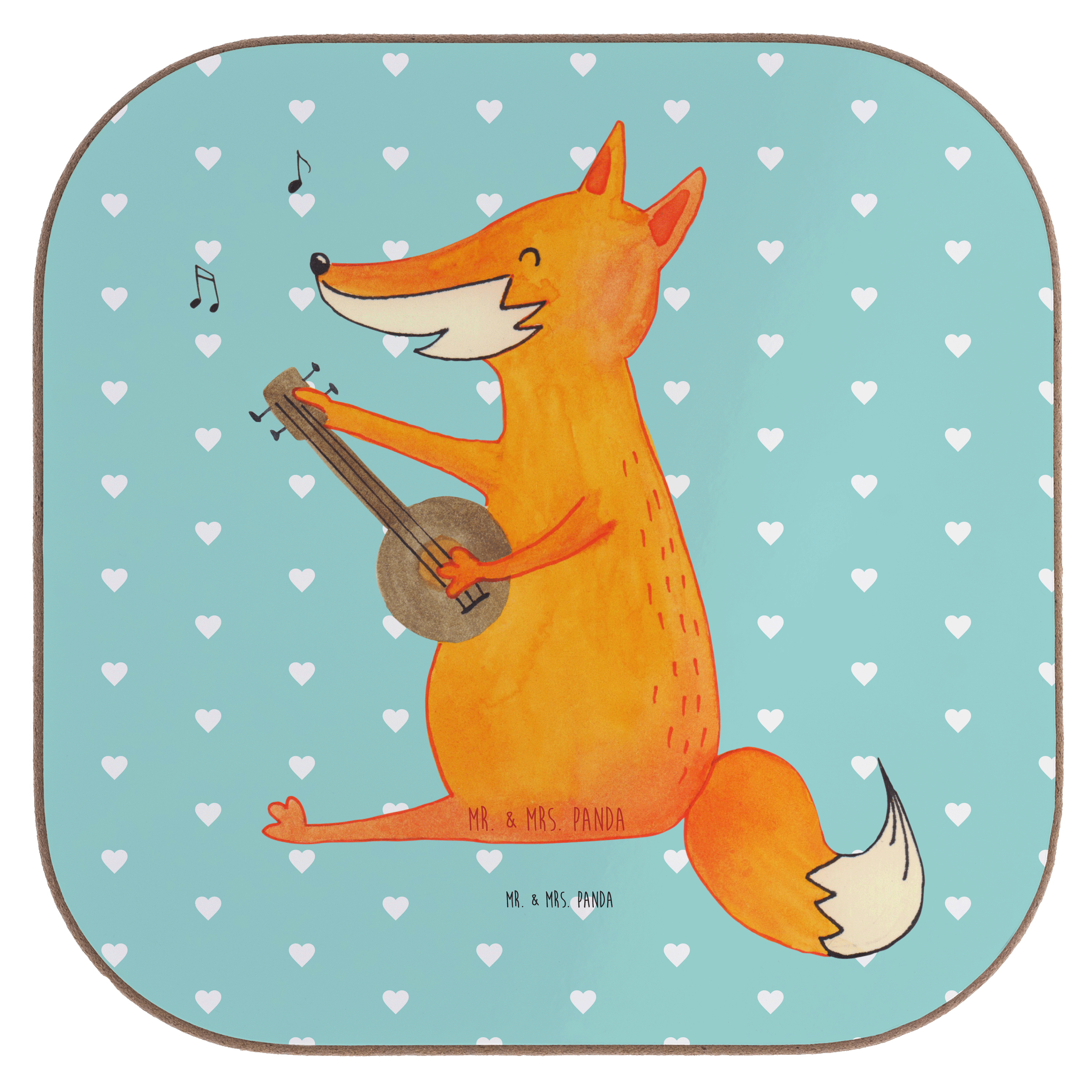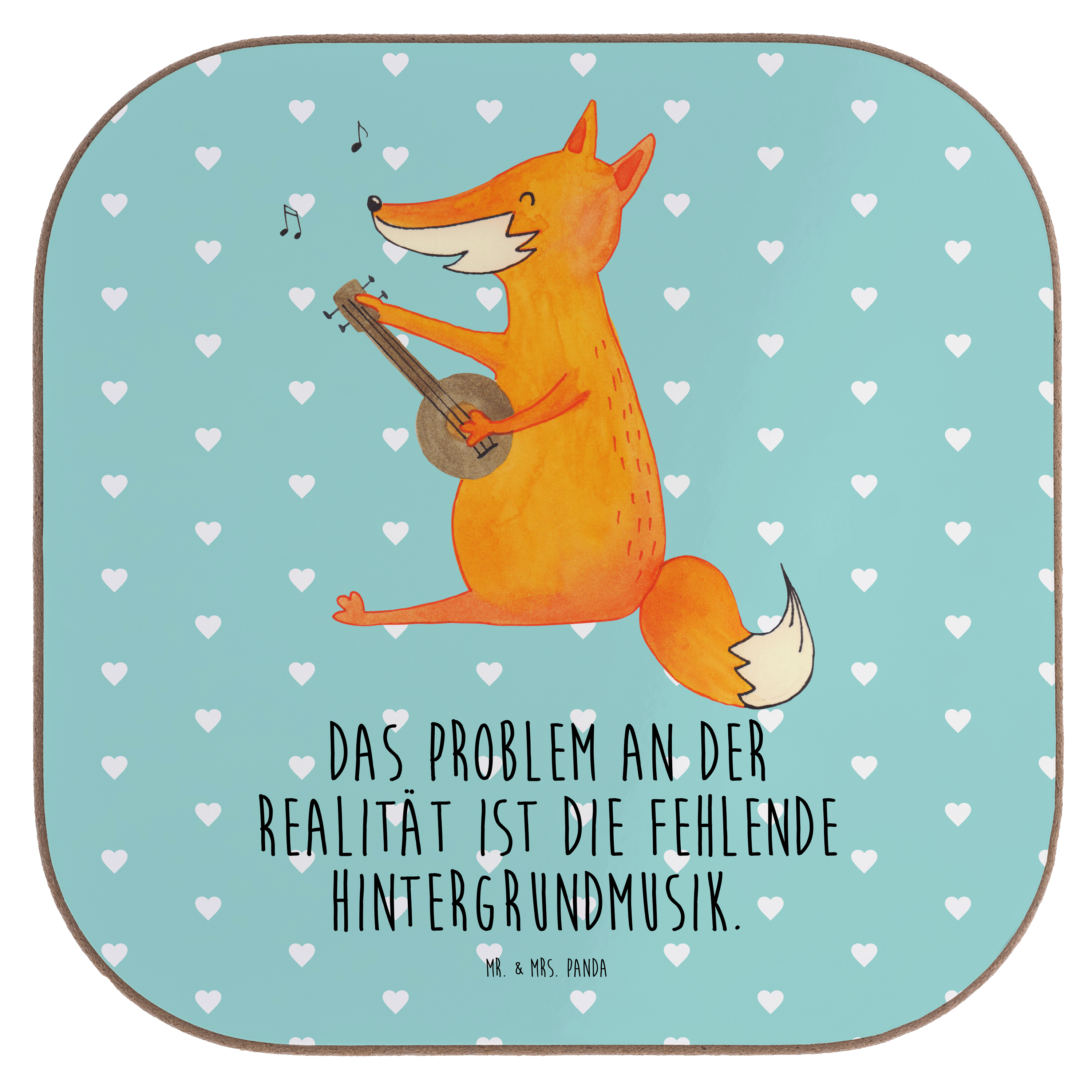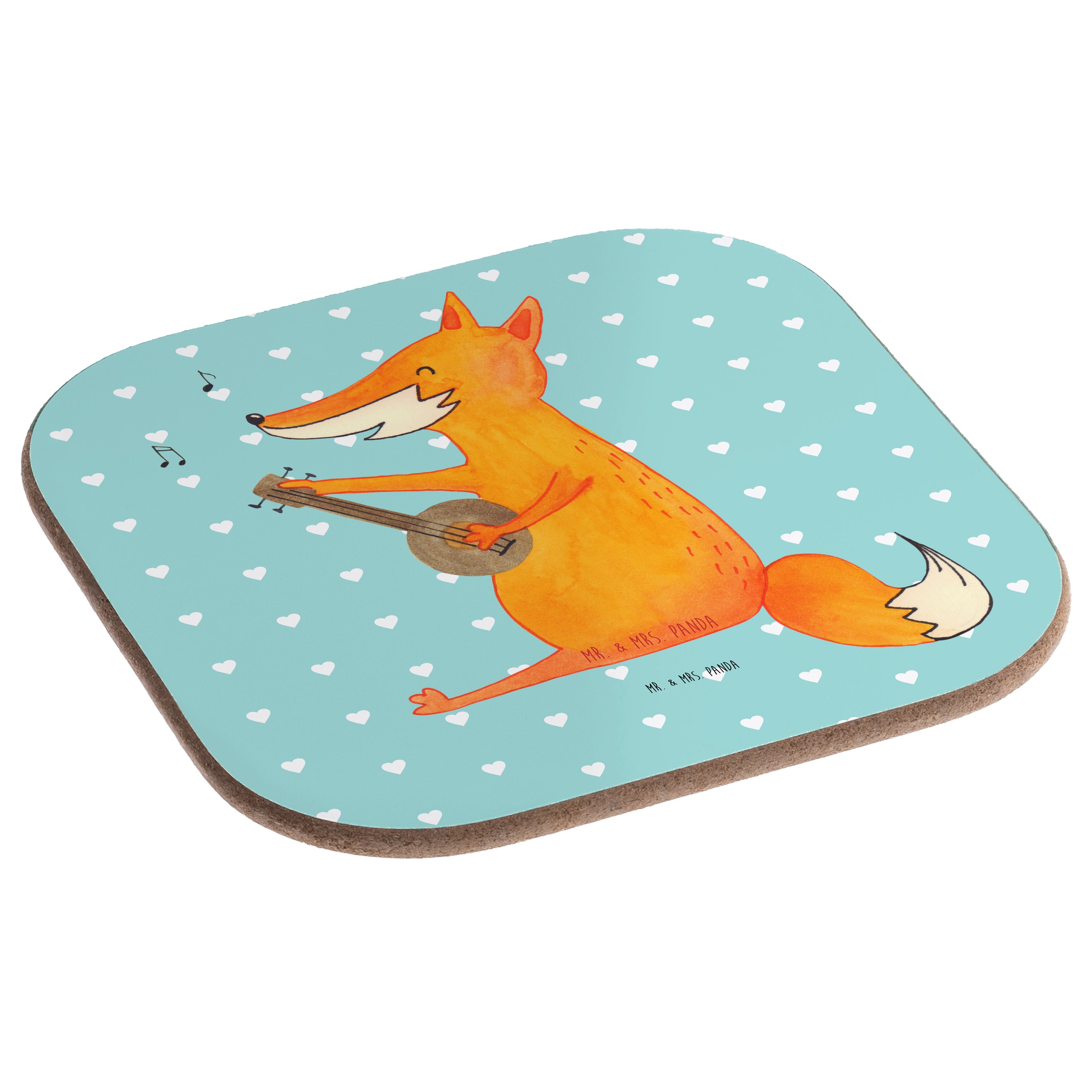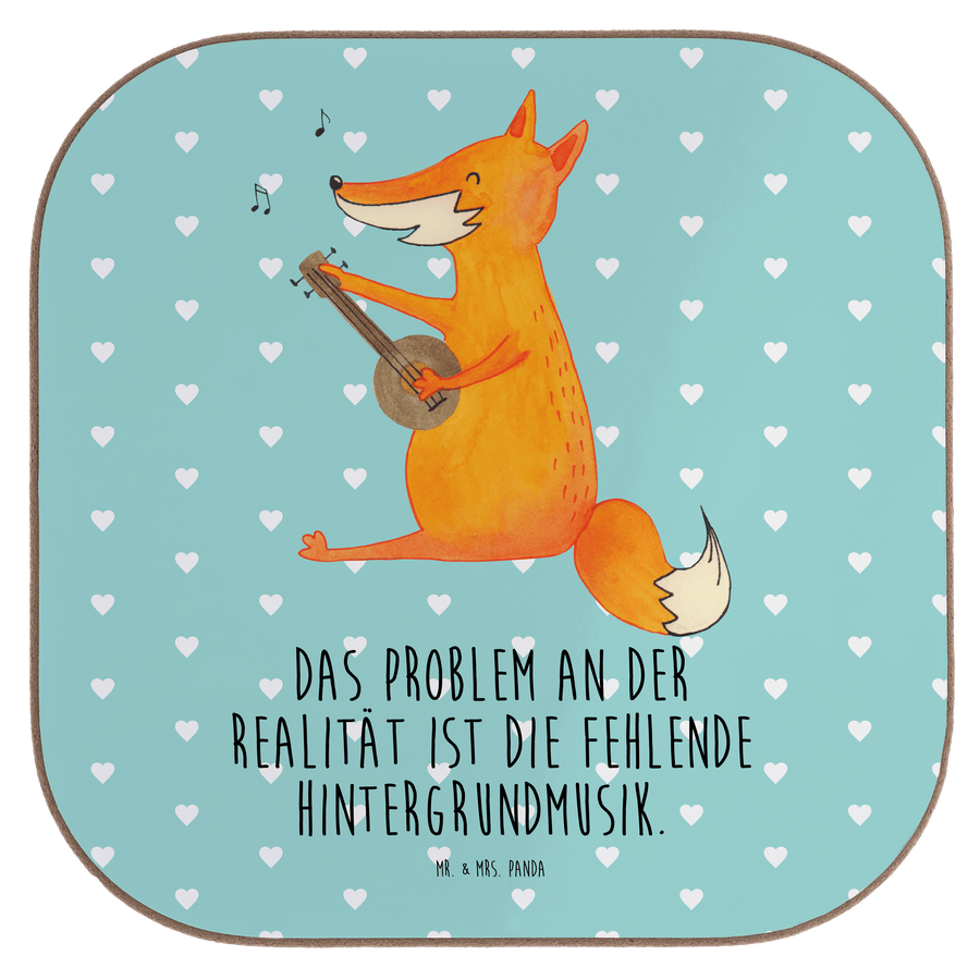 Quadratische Untersetzer Fuchs Gitarre - mit Spruch - Türkis Pastell