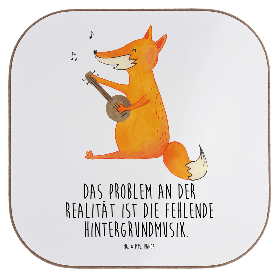 Quadratische Untersetzer Fuchs Gitarre - mit Spruch - Weiß