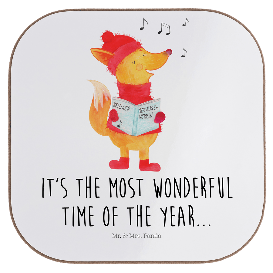 Quadratische Untersetzer Fuchs Sänger - mit Spruch - Weiß