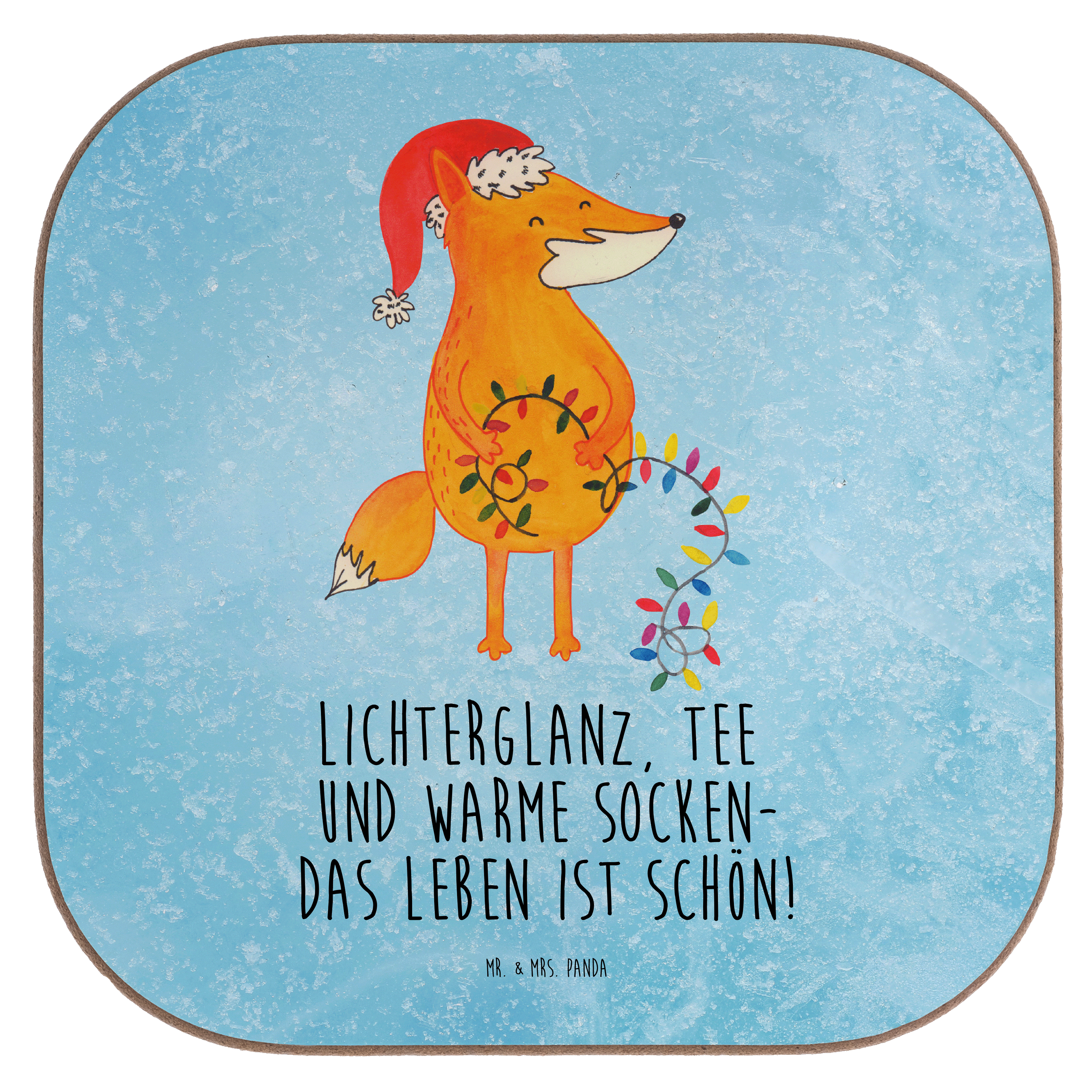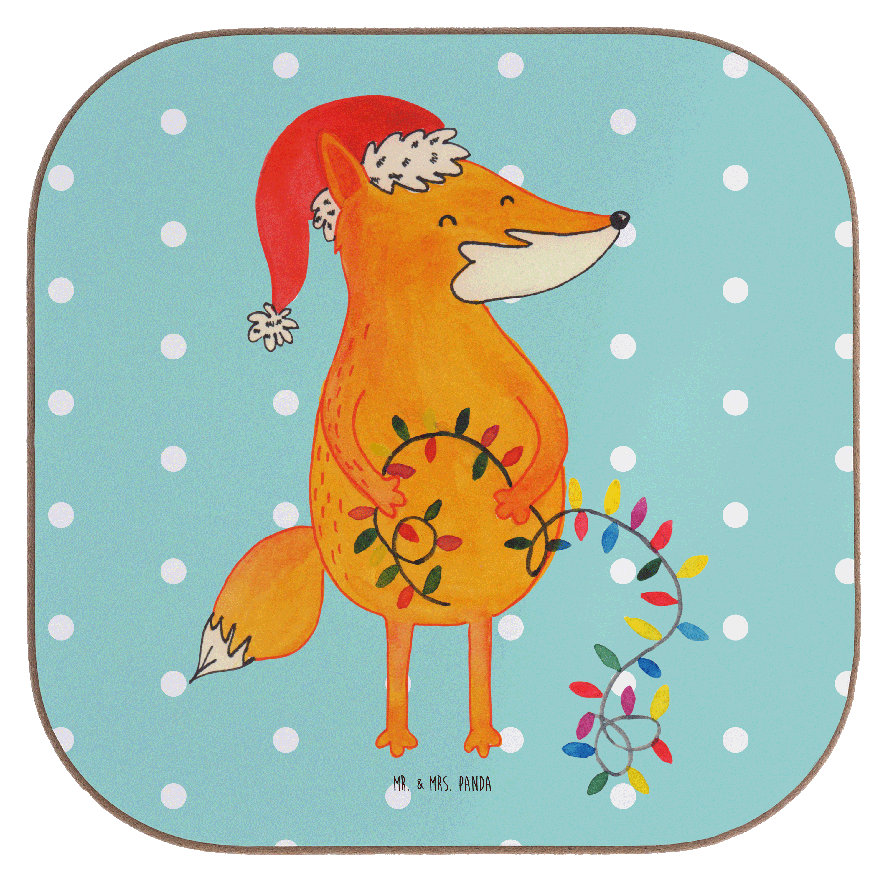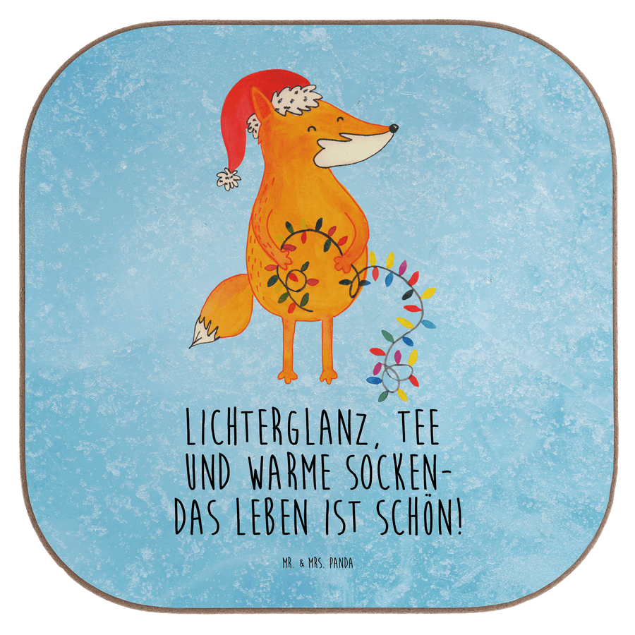 Quadratische Untersetzer Fuchs Weihnachten - mit Spruch - Eisblau