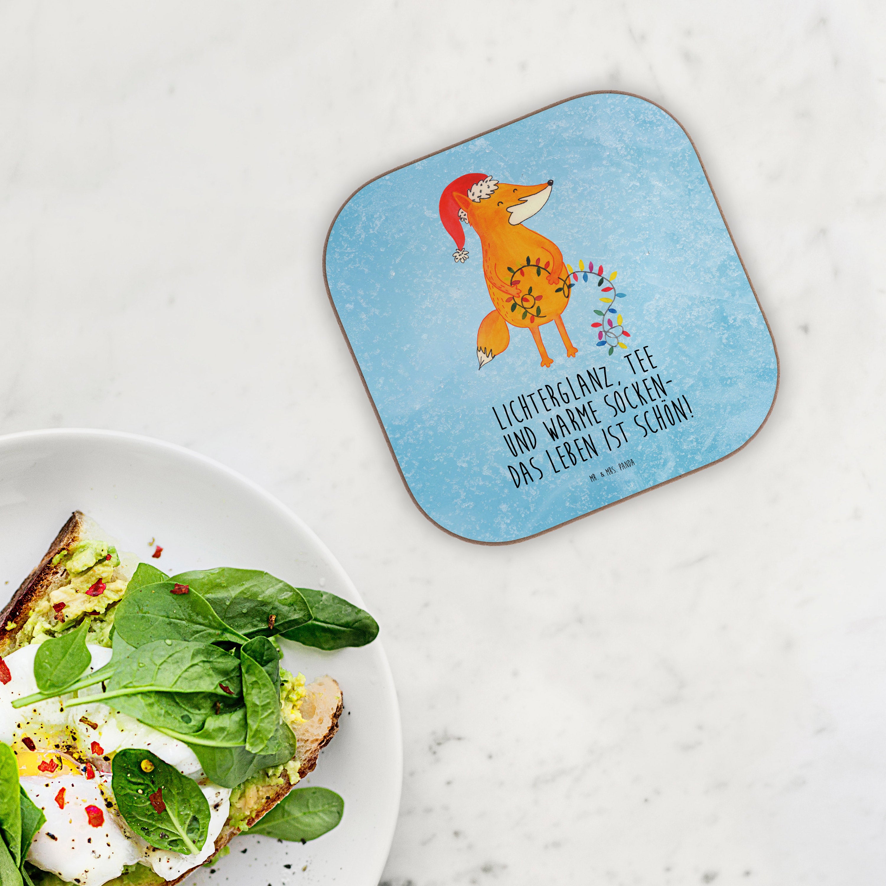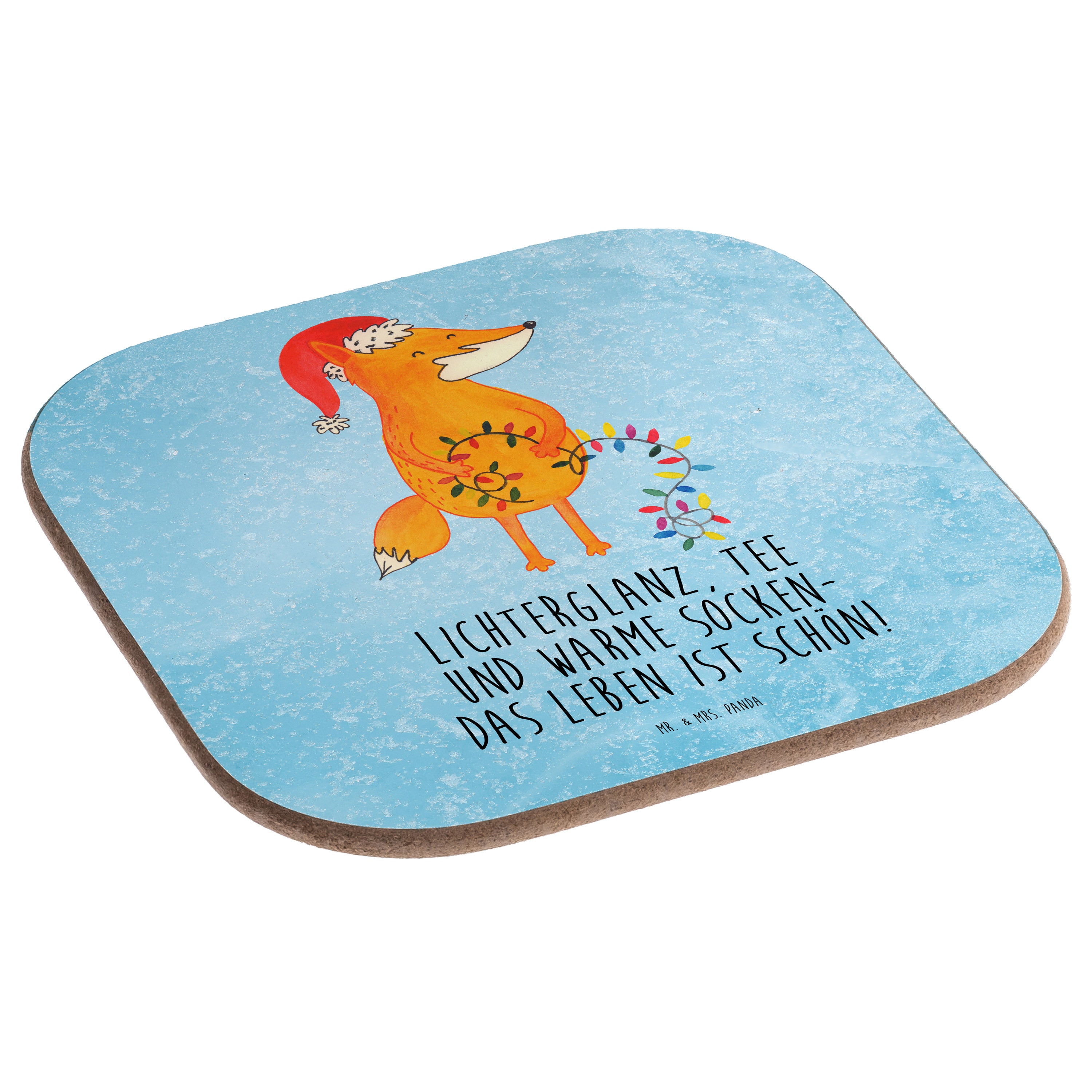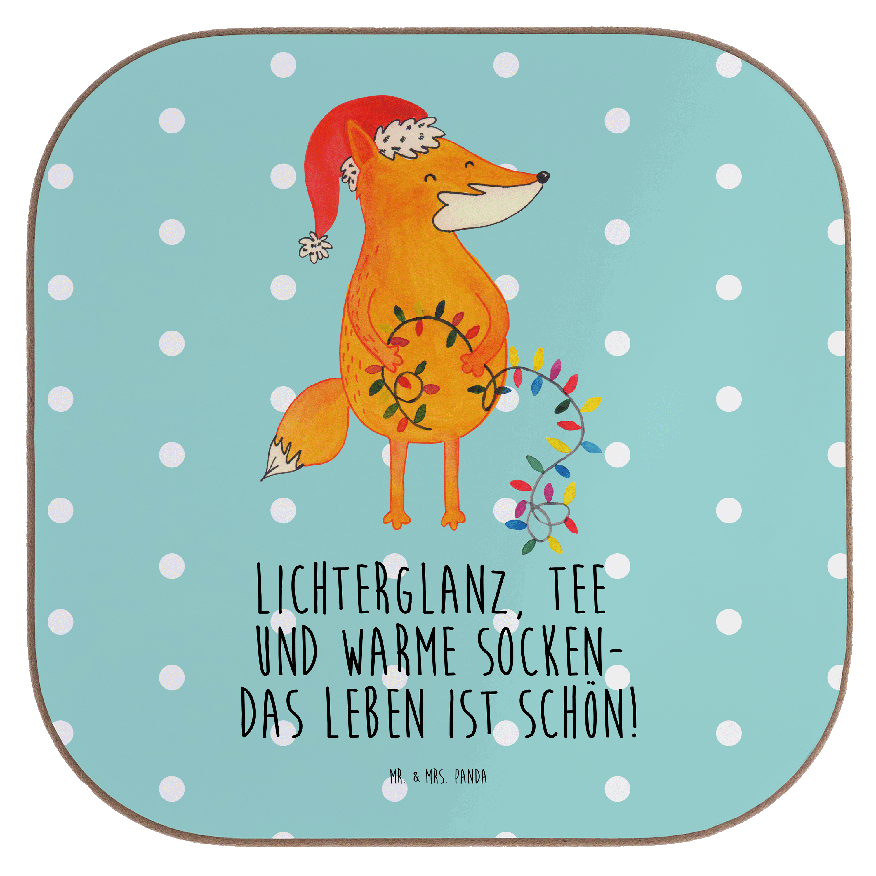 Quadratische Untersetzer Fuchs Weihnachten - mit Spruch - Eisblau