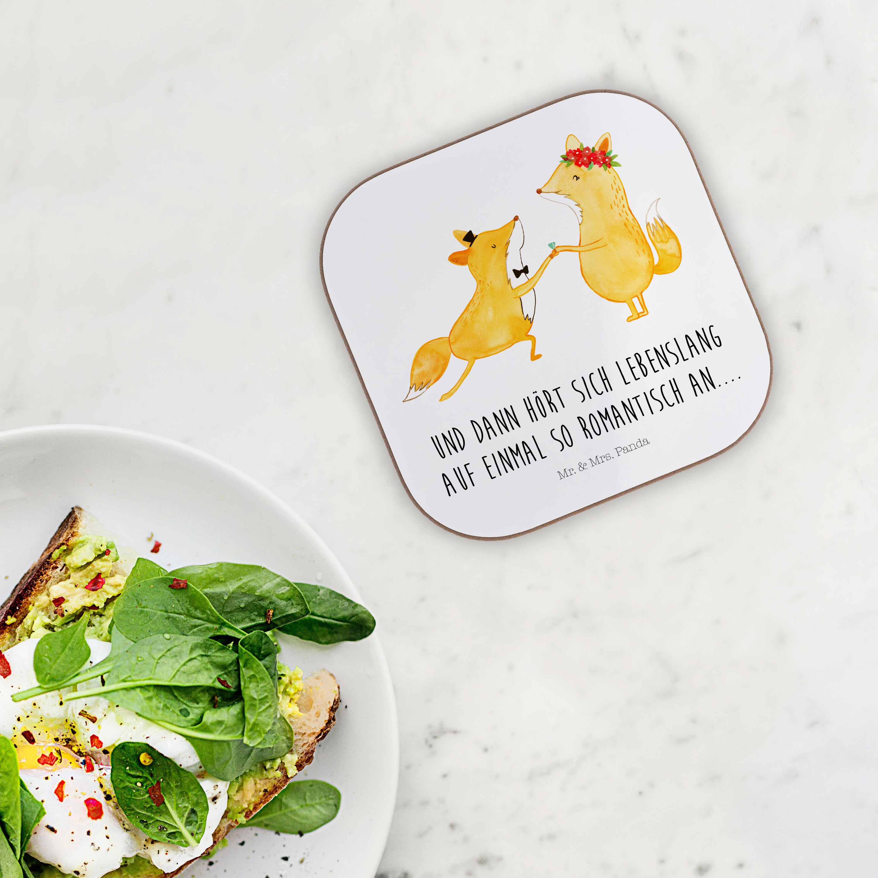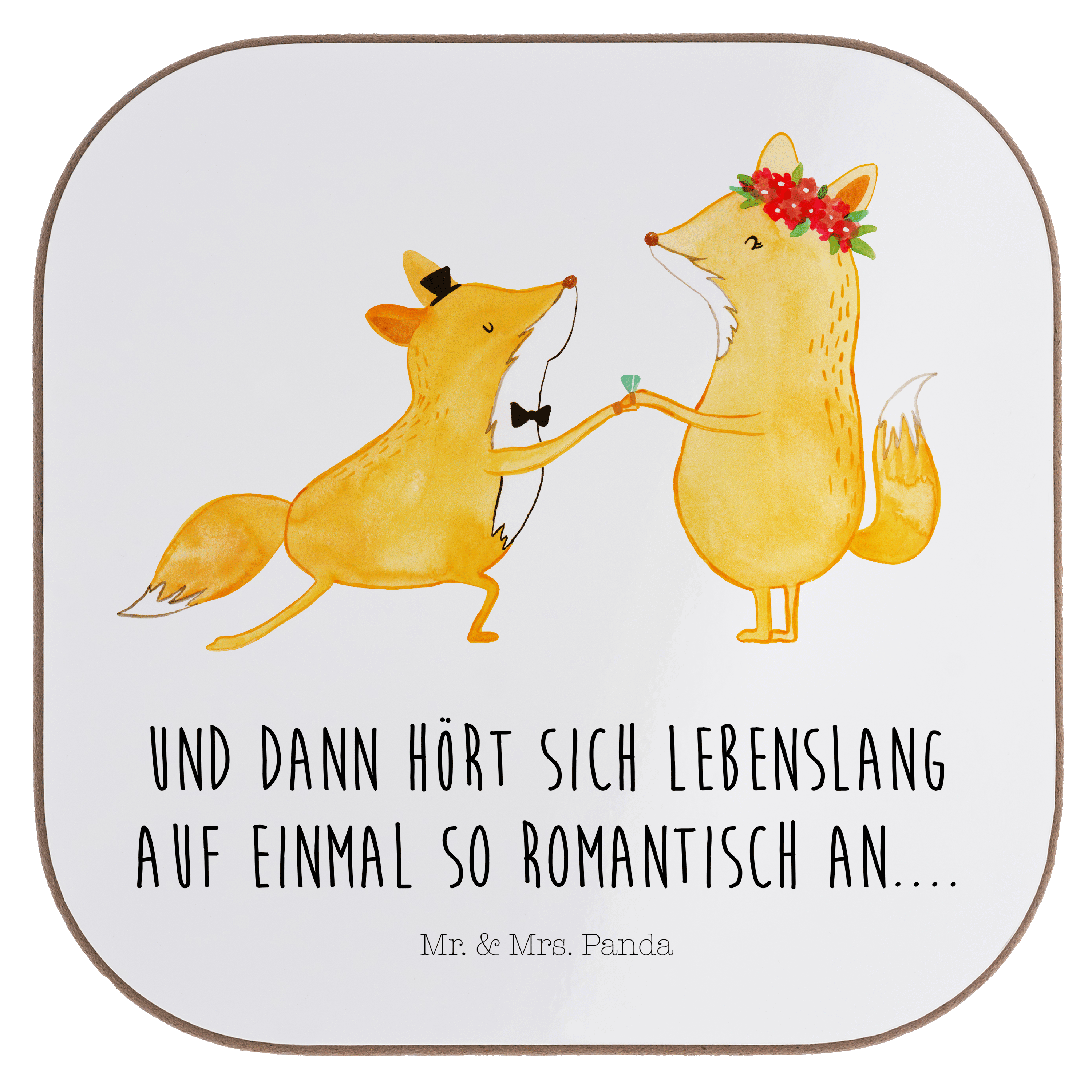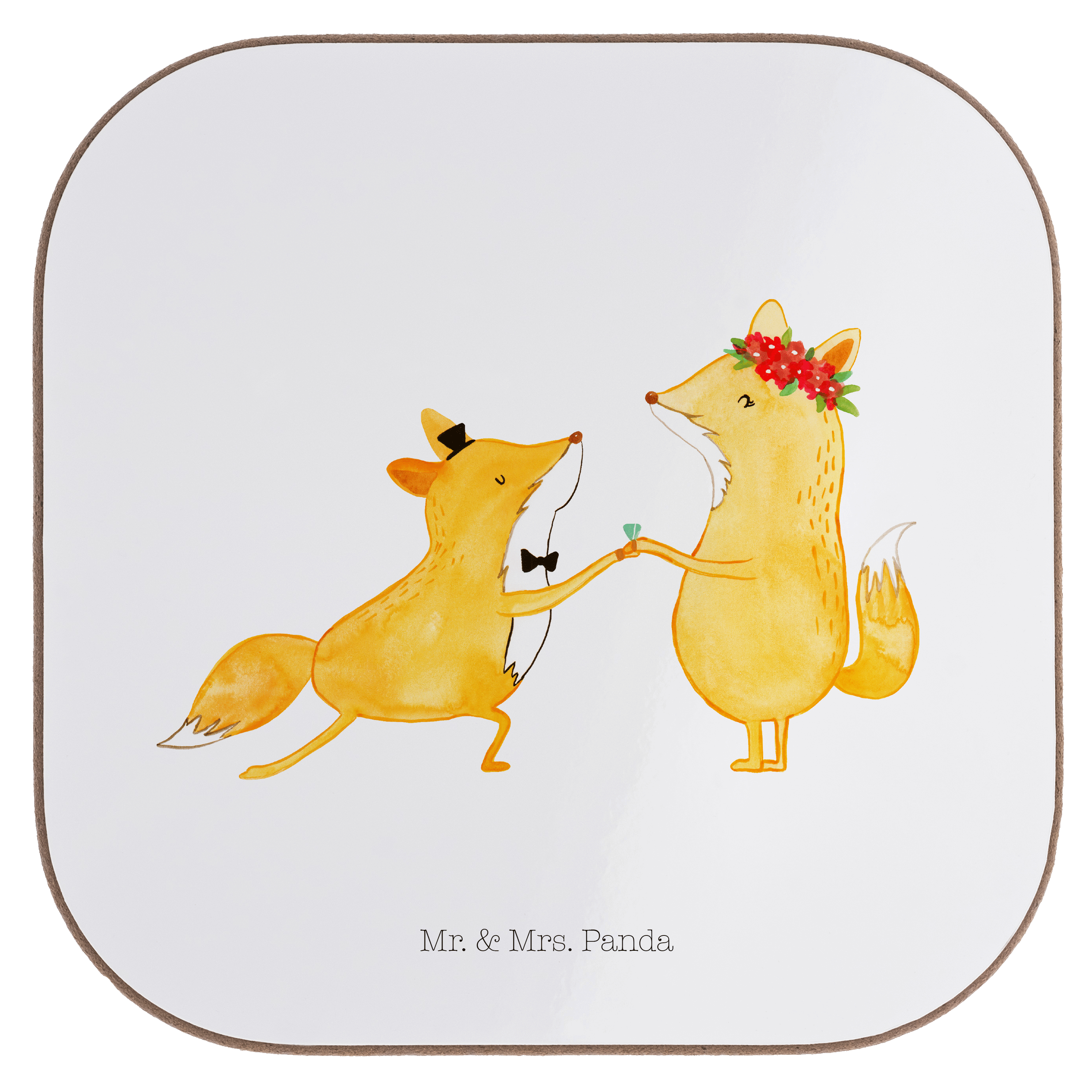Quadratische Untersetzer Füchse Hochzeit - mit Spruch