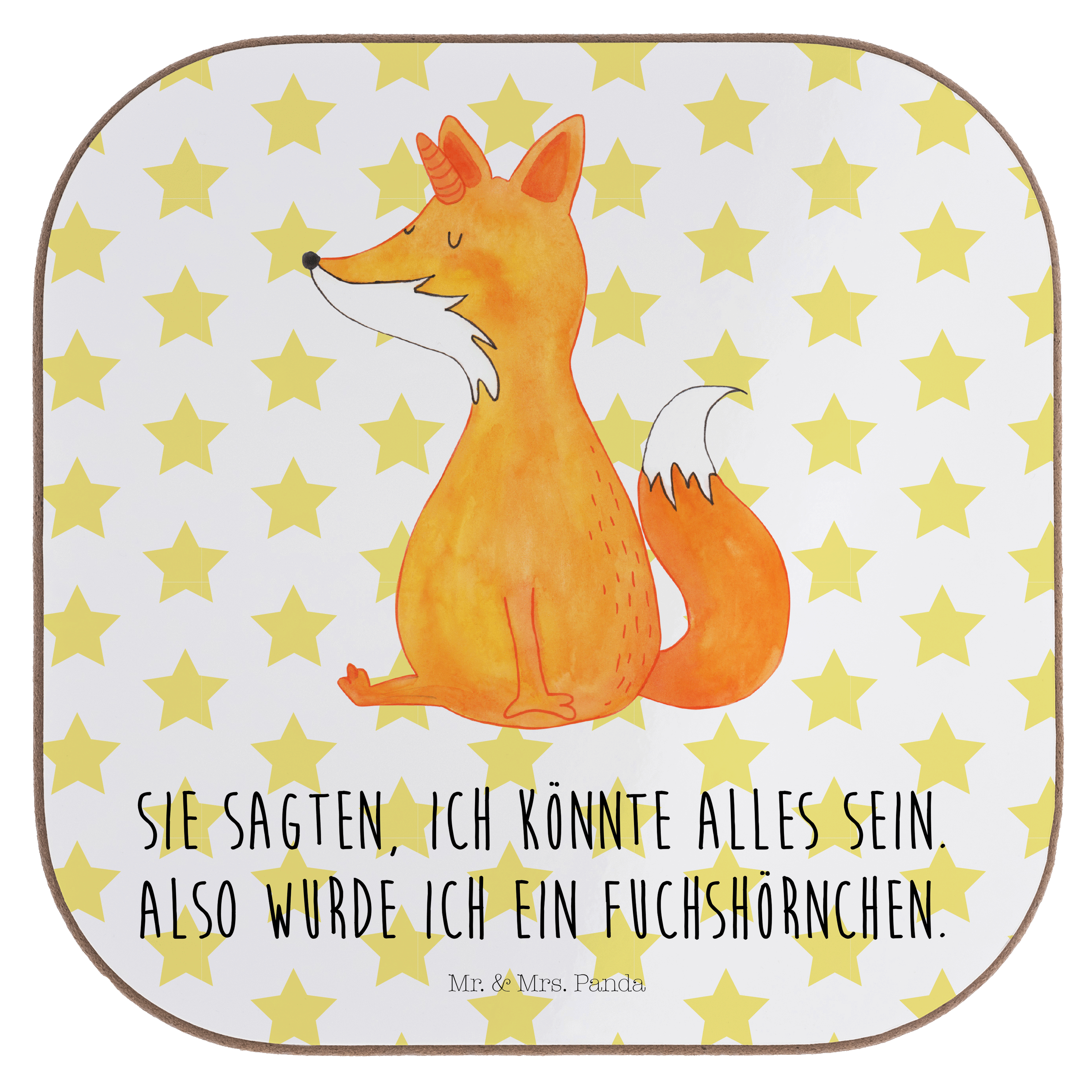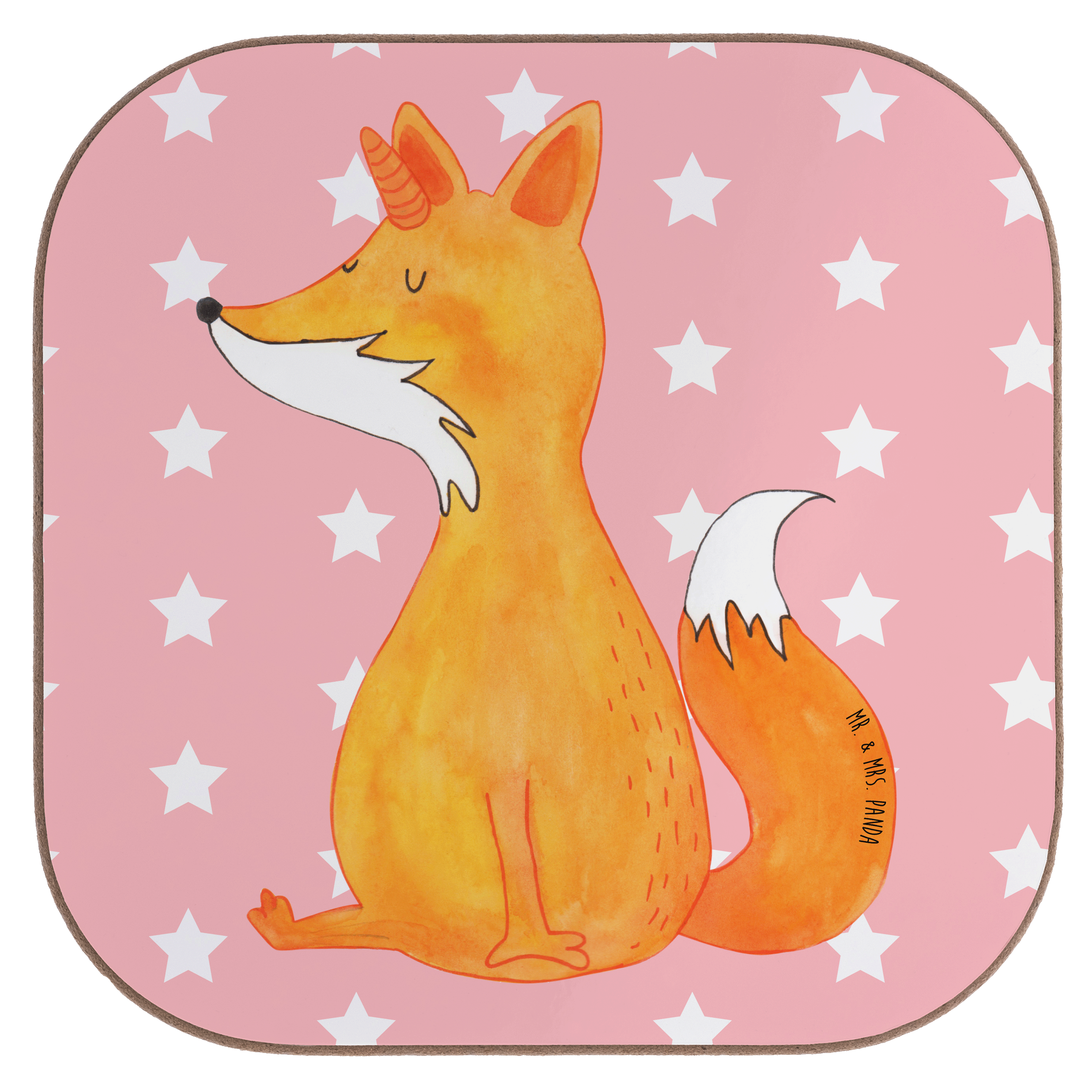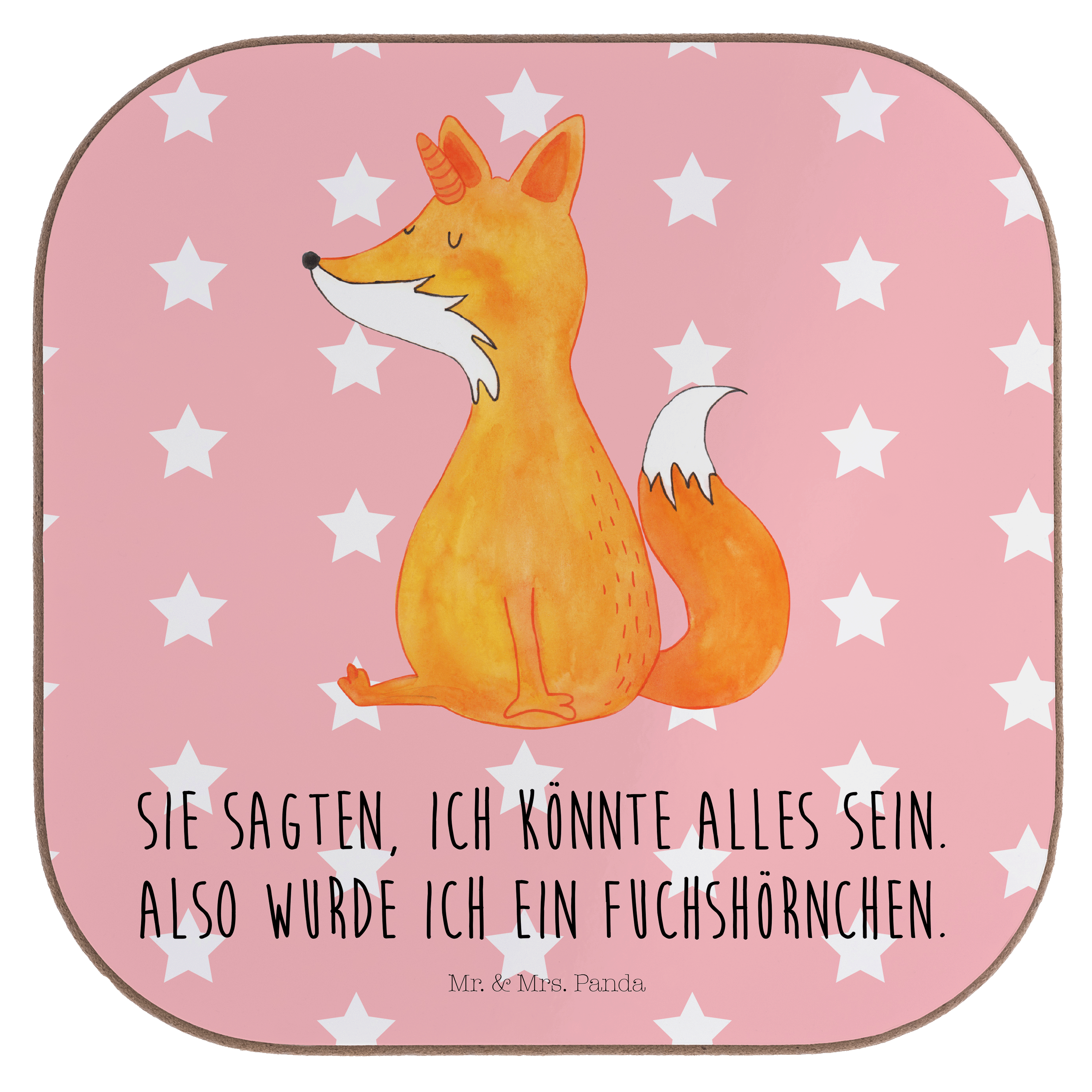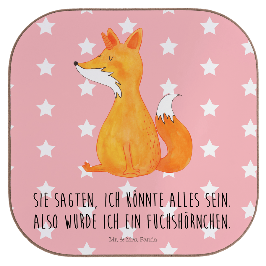 Quadratische Untersetzer Fuchshörnchen Wunsch - mit Spruch - Rot Pastell