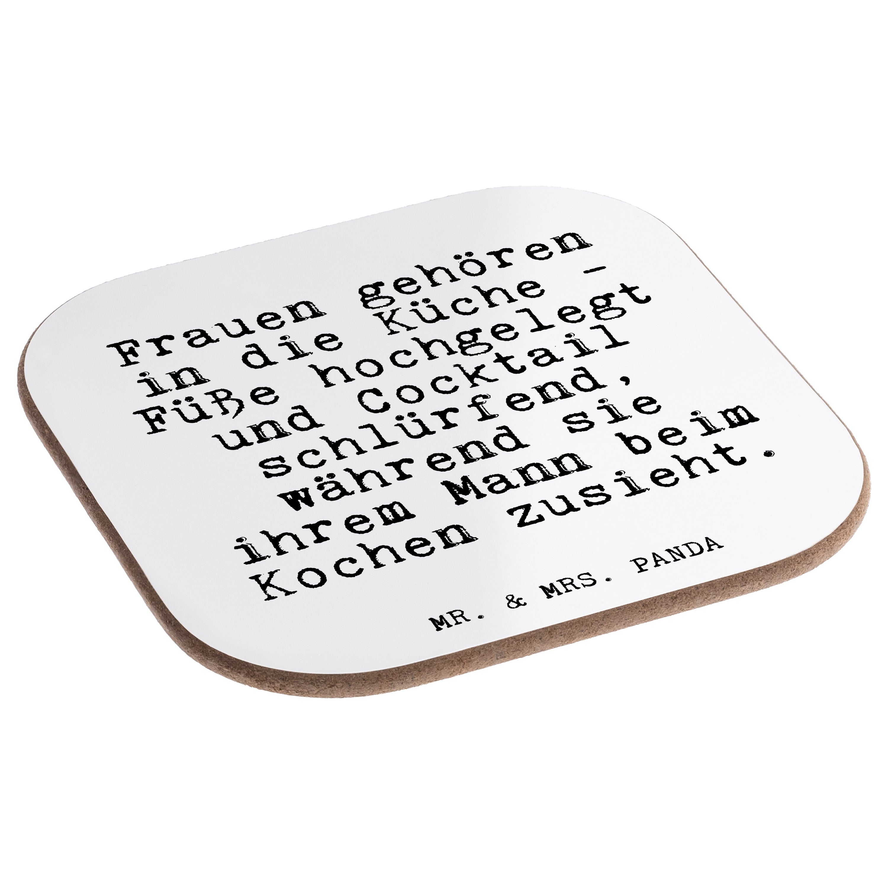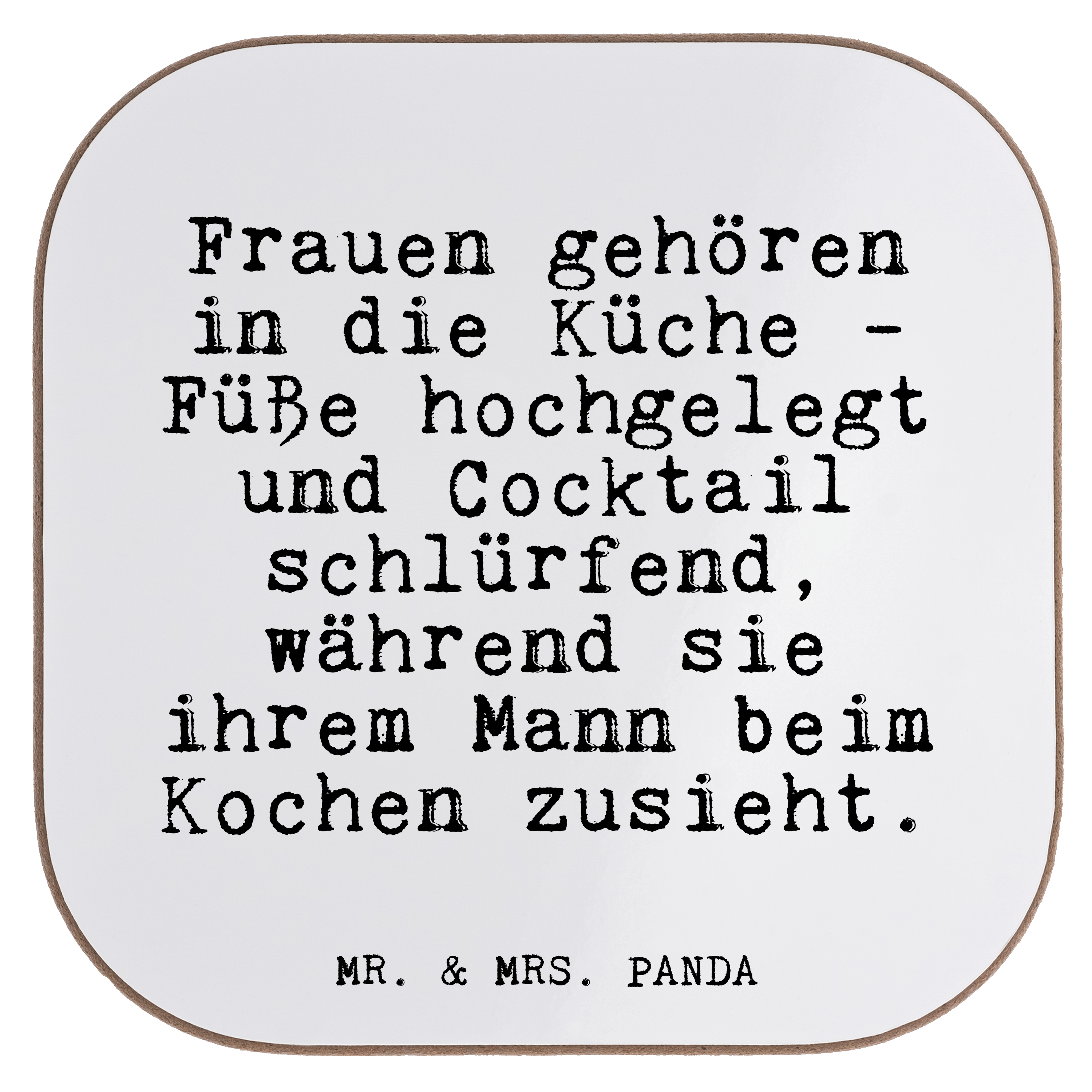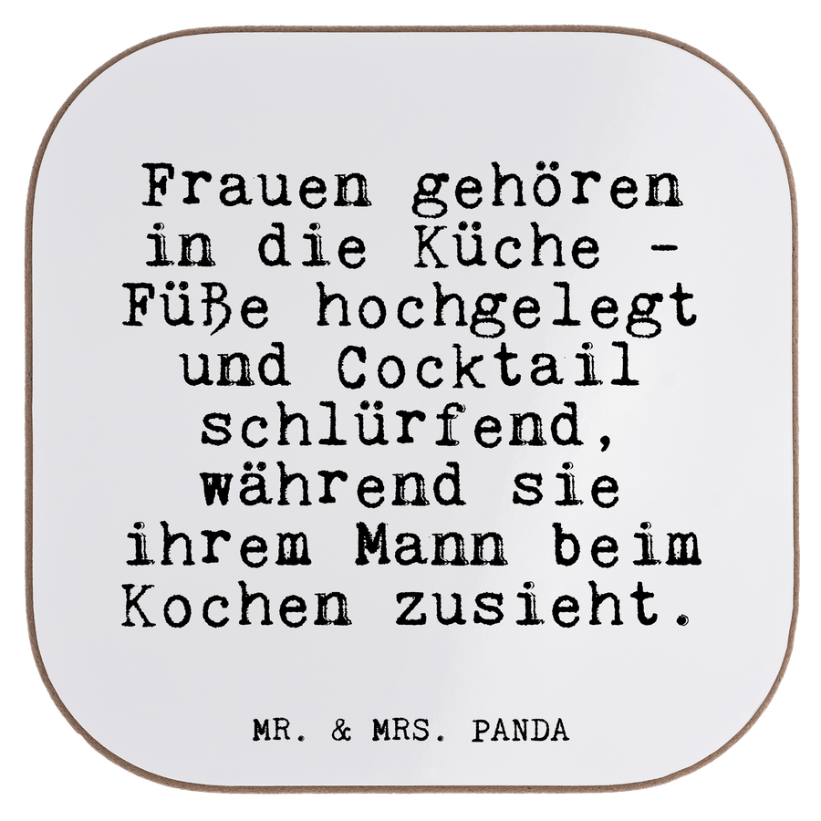 Quadratische Untersetzer Fun Talk Frauen gehören in die Küche - Füße hochgelegt und Cocktail schlürfend, während sie ihrem Mann beim Kochen zusieht. Bierdeckel, Glasuntersetzer, Untersetzer Gläser, Getränkeuntersetzer, Spruch, Sprüche, lustig, Weisheiten, Zitate, Glizer Spruch Sprüche Weisheiten Zitate Lustig Weisheit Worte