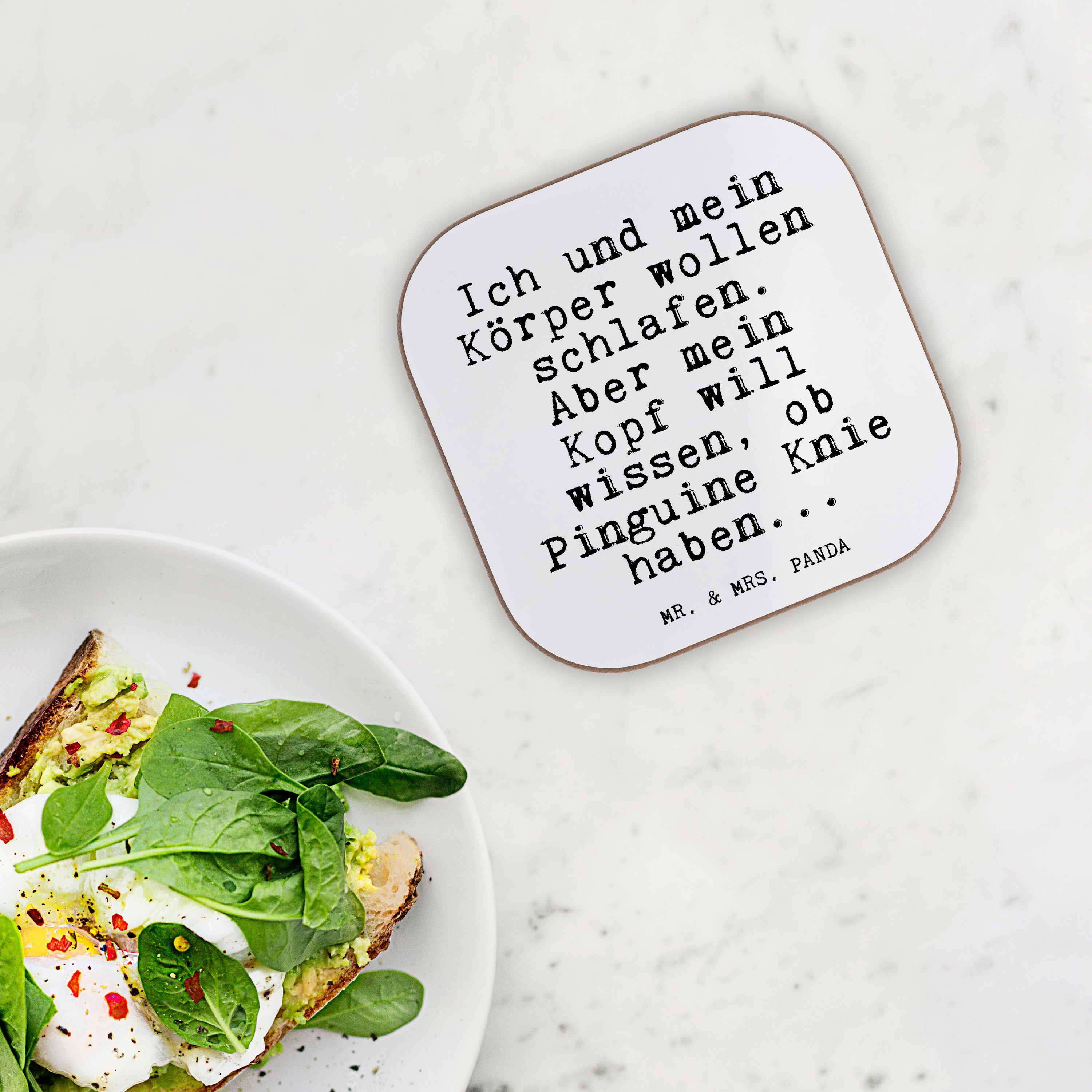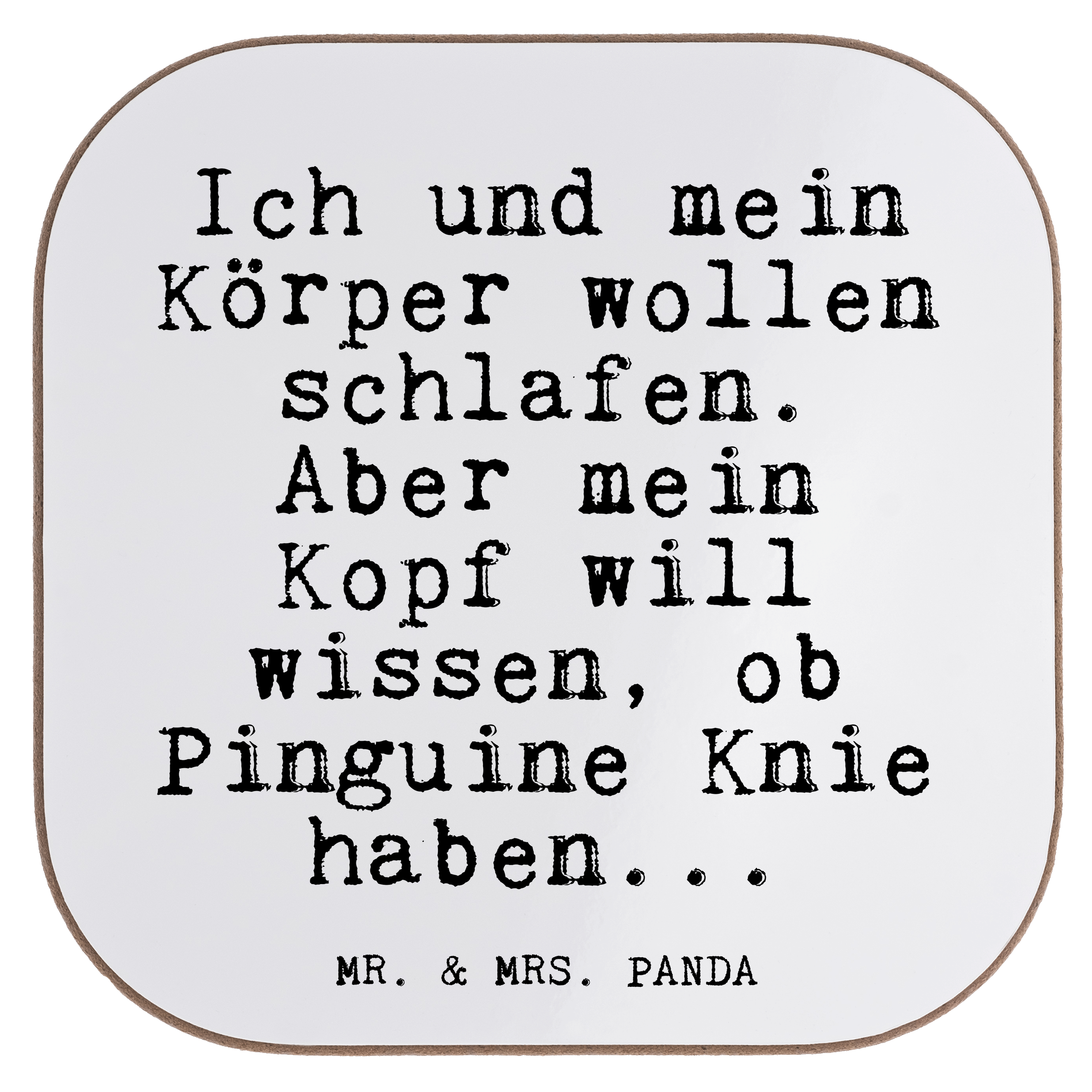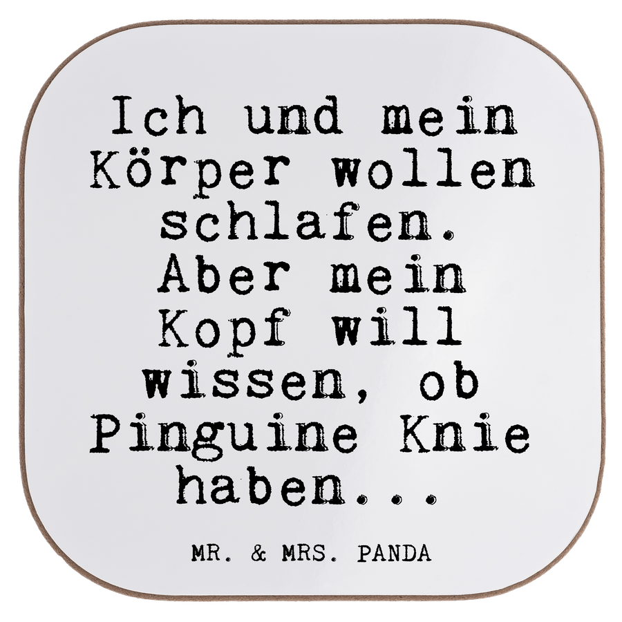 Quadratische Untersetzer Fun Talk Ich und mein Körper wollen schlafen. Aber mein Kopf will wissen, ob Pinguine Knie haben...