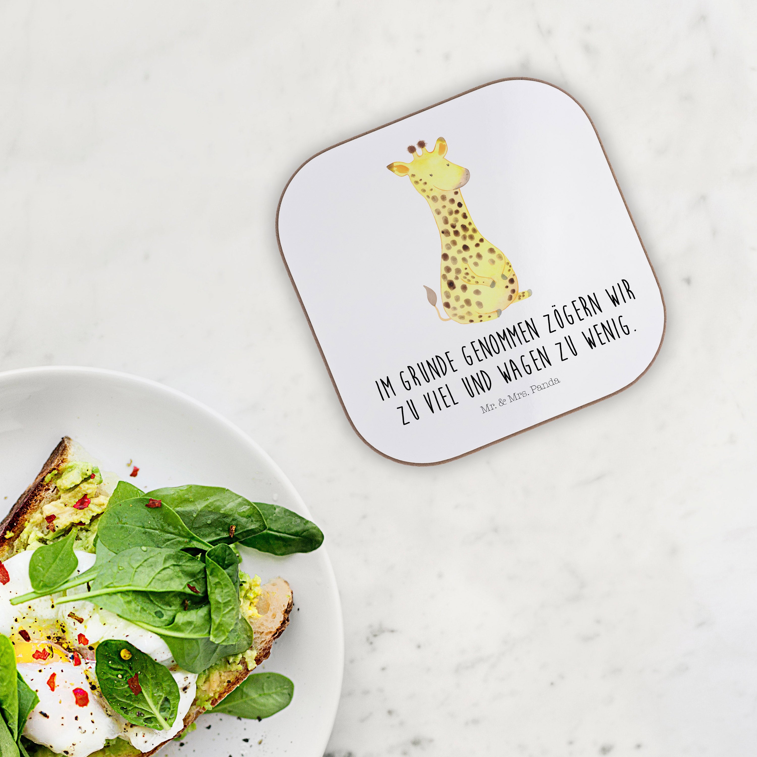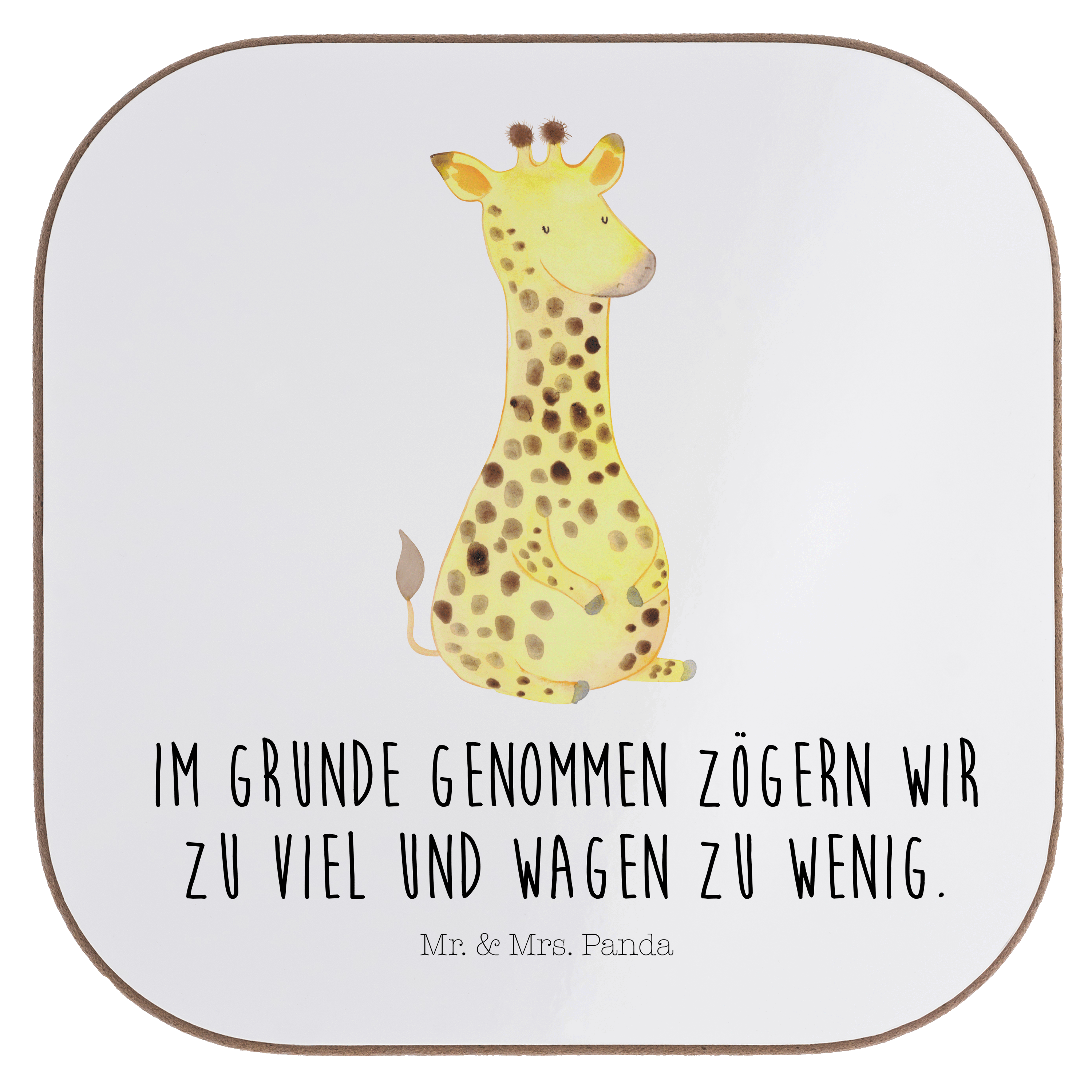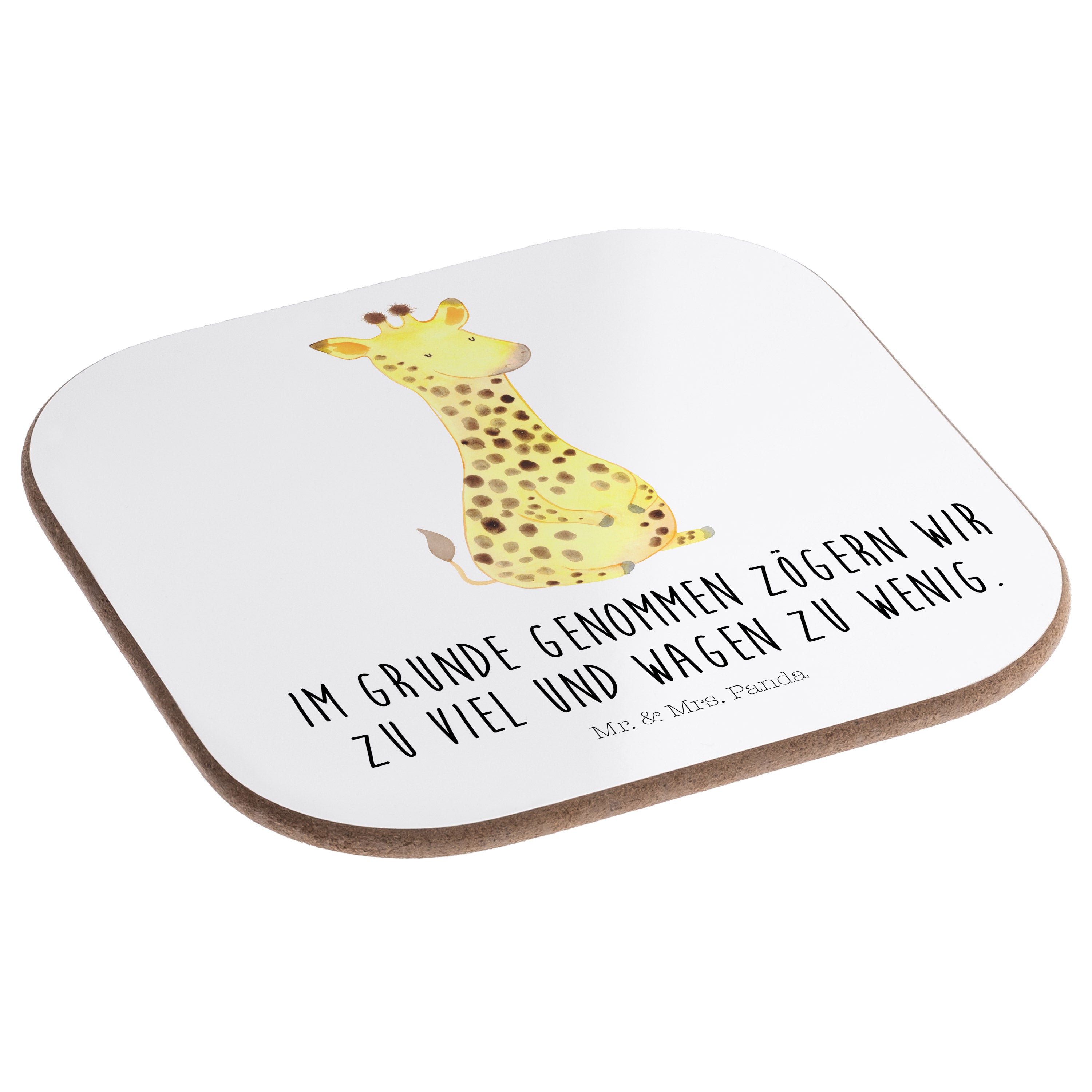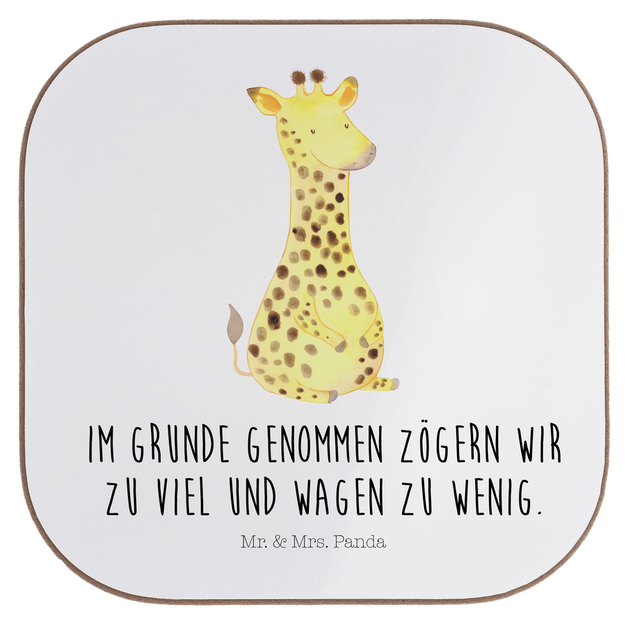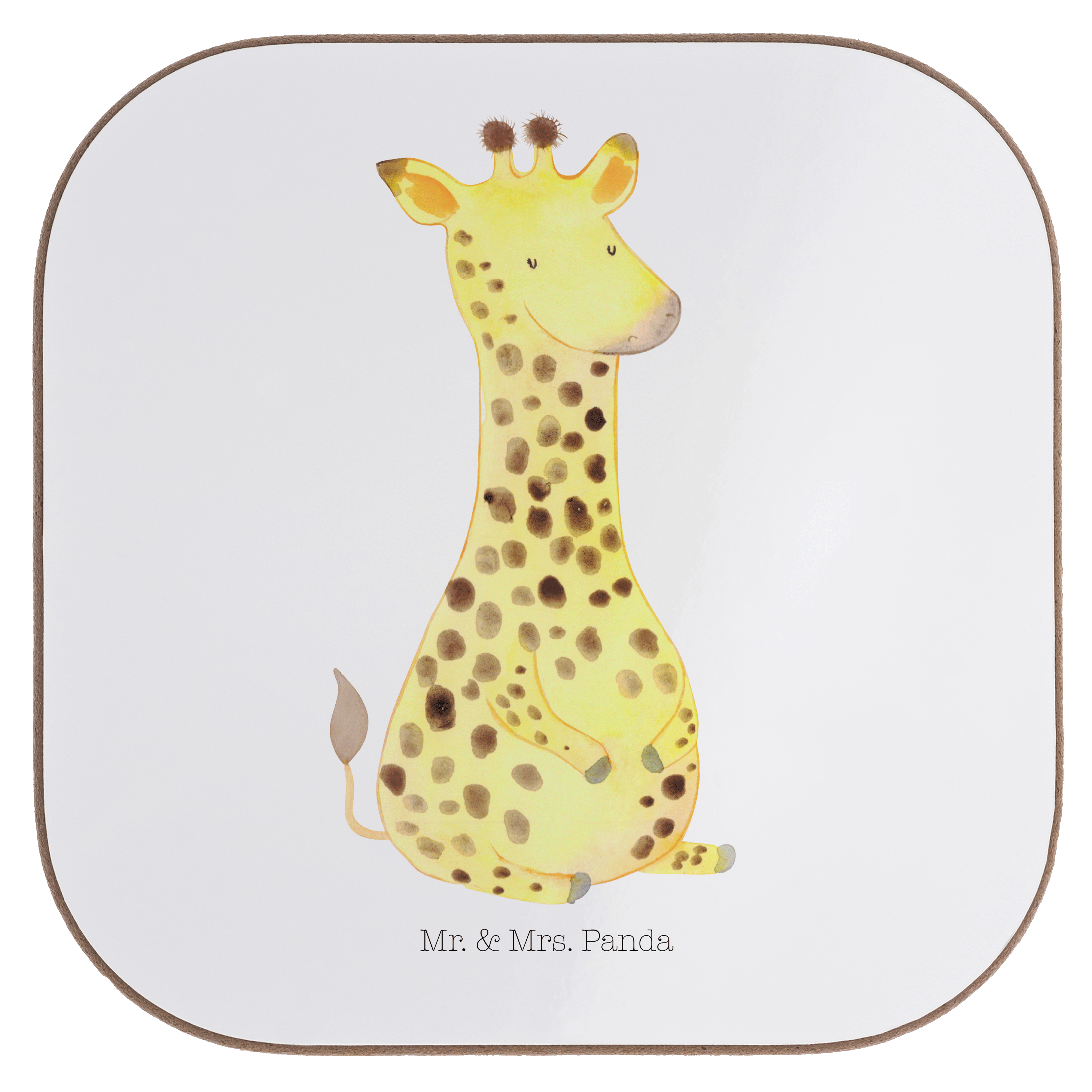 Quadratische Untersetzer Giraffe Zufrieden - mit Spruch