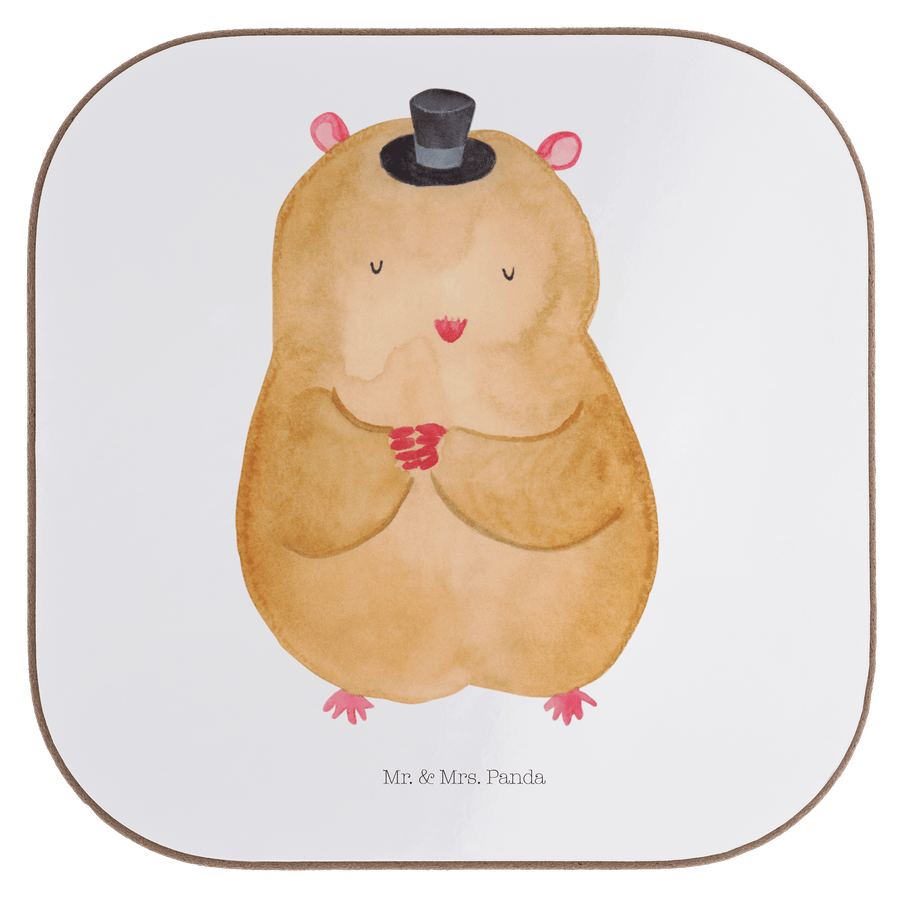 Quadratische Untersetzer Hamster mit Hut - ohne Spruch - Weiß