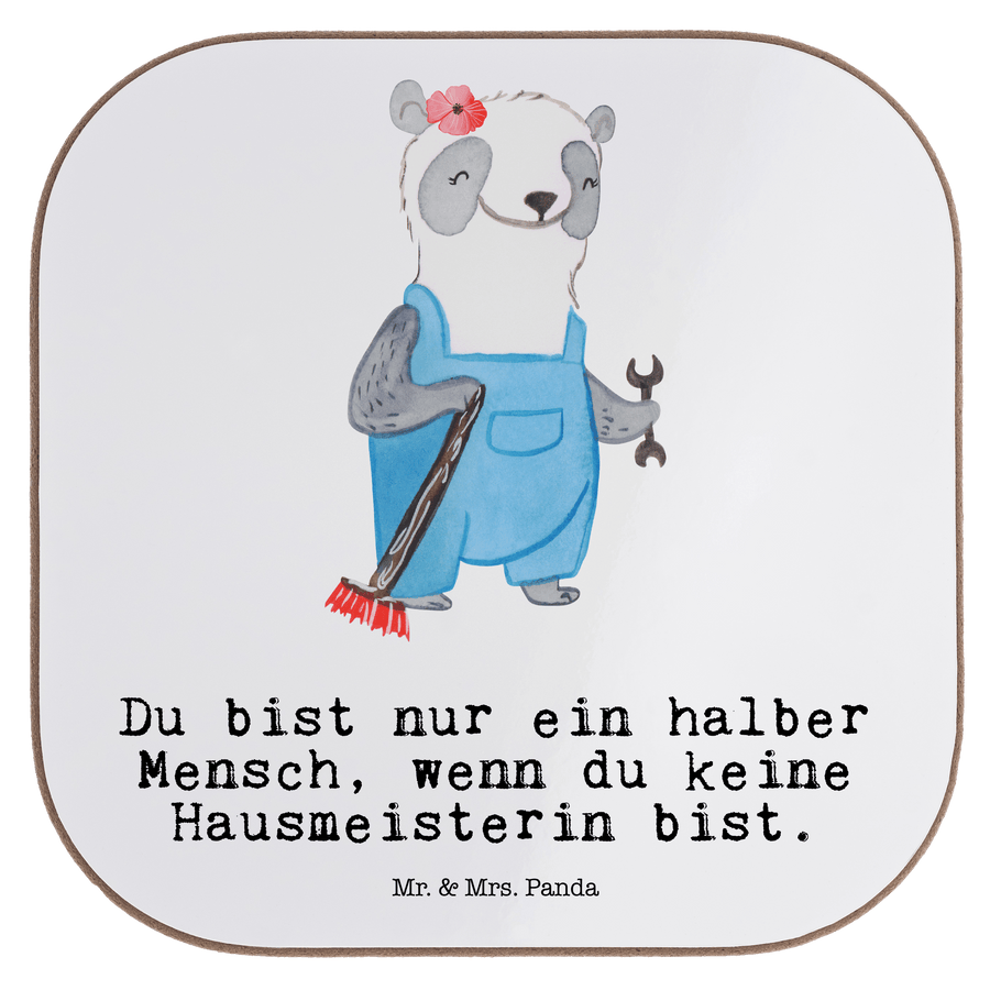 Quadratische Untersetzer Hausmeisterin mit Herz
