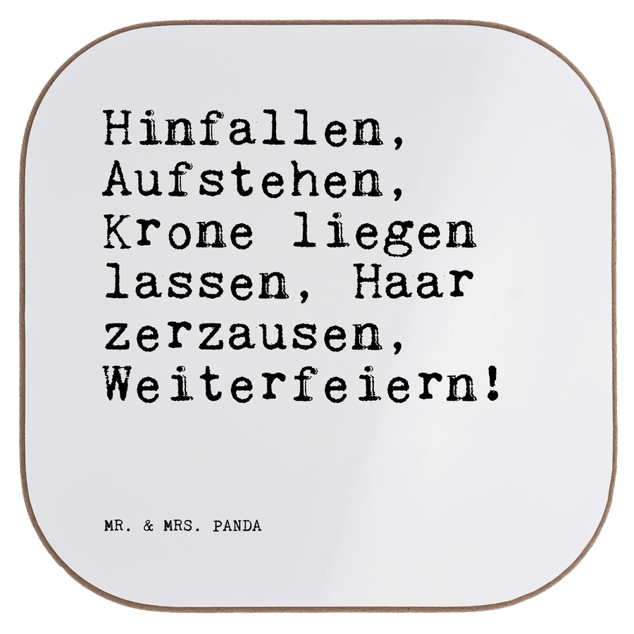 Quadratische Untersetzer Sprüche und Zitate Hinfallen, Aufstehen, Krone liegen lassen, Haar zerzausen, Weiterfeiern!
