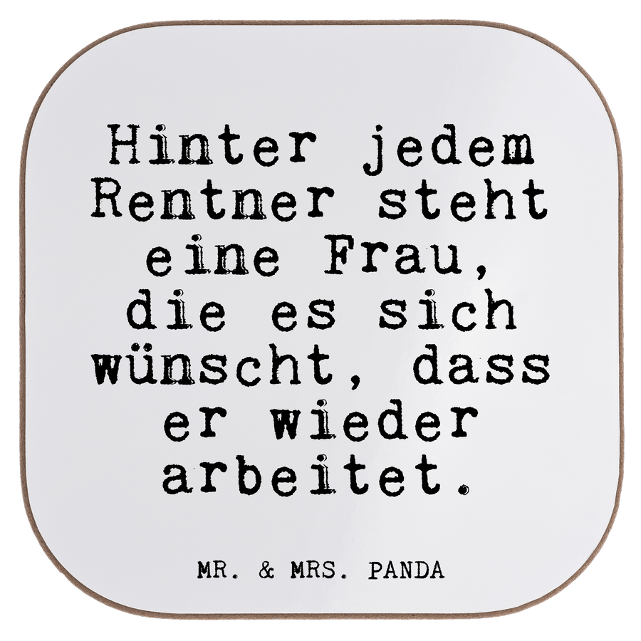 Quadratische Untersetzer Fun Talk Hinter jedem Rentner steht eine Frau, die es sich wünscht, dass er wieder arbeitet.