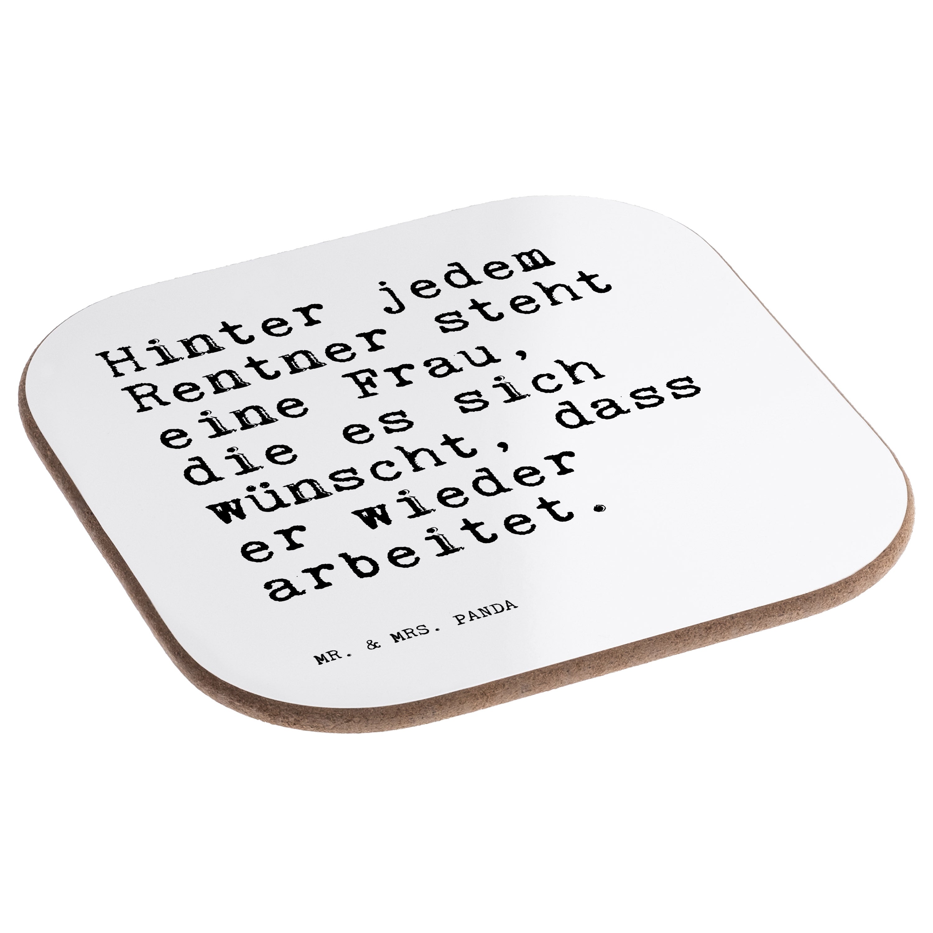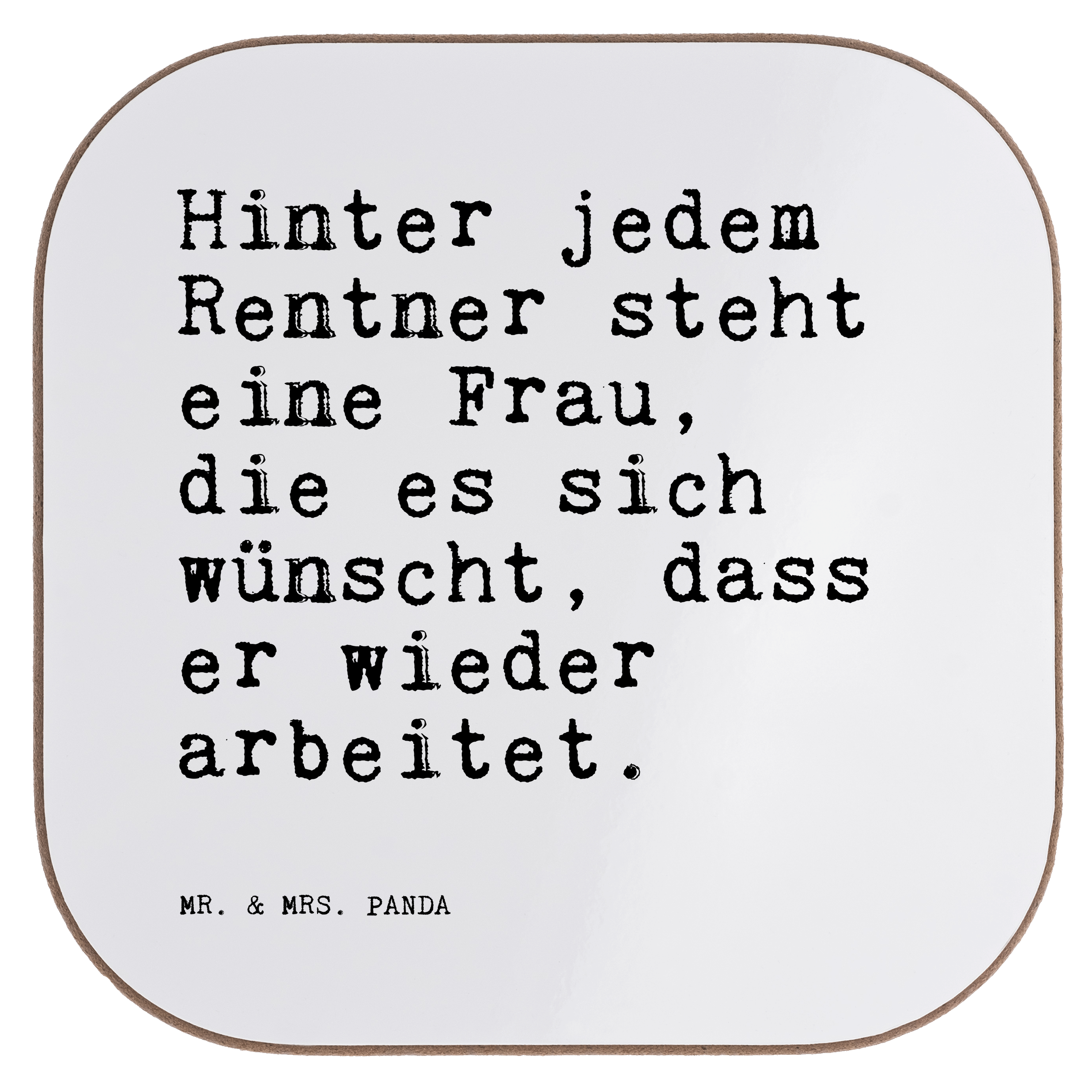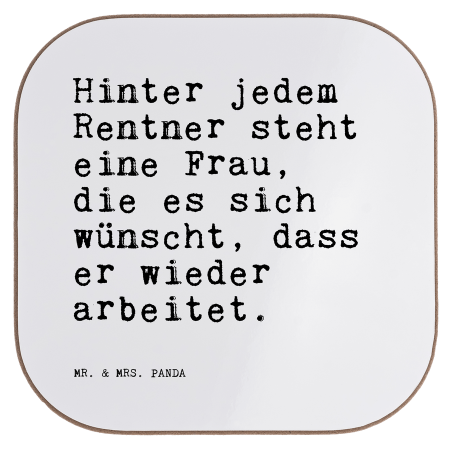Quadratische Untersetzer Sprüche und Zitate Hinter jedem Rentner steht eine Frau, die es sich wünscht, dass er wieder arbeitet.