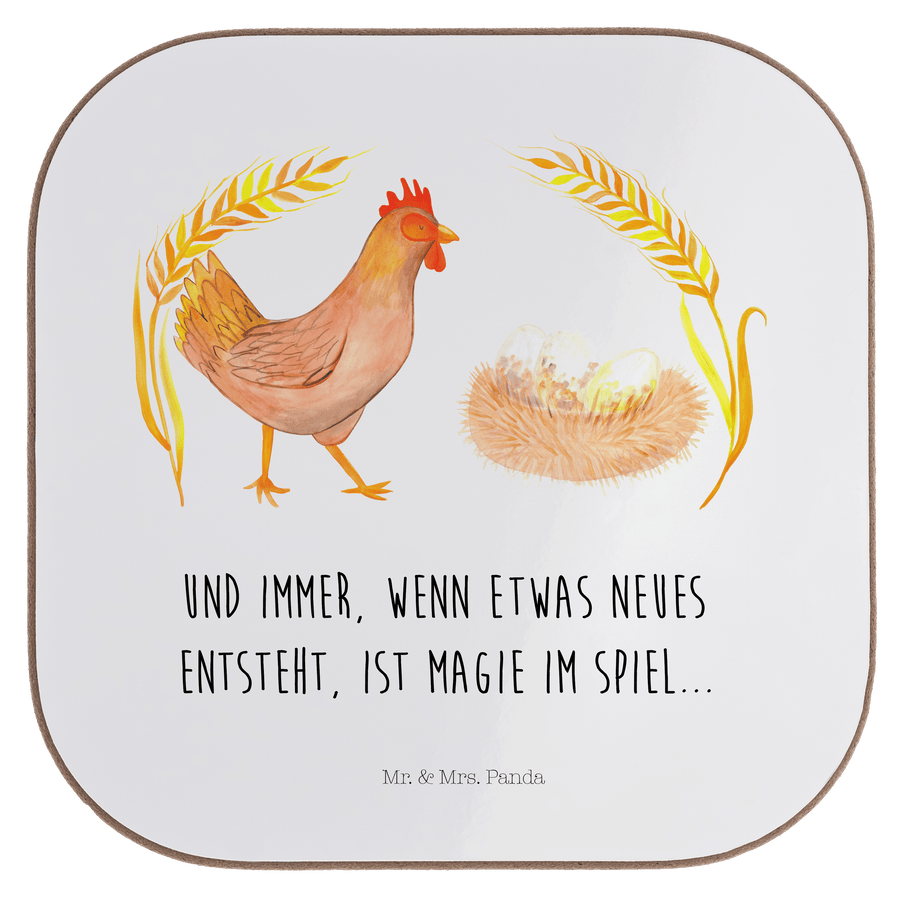 Quadratische Untersetzer Huhn stolz - mit Spruch - Weiß