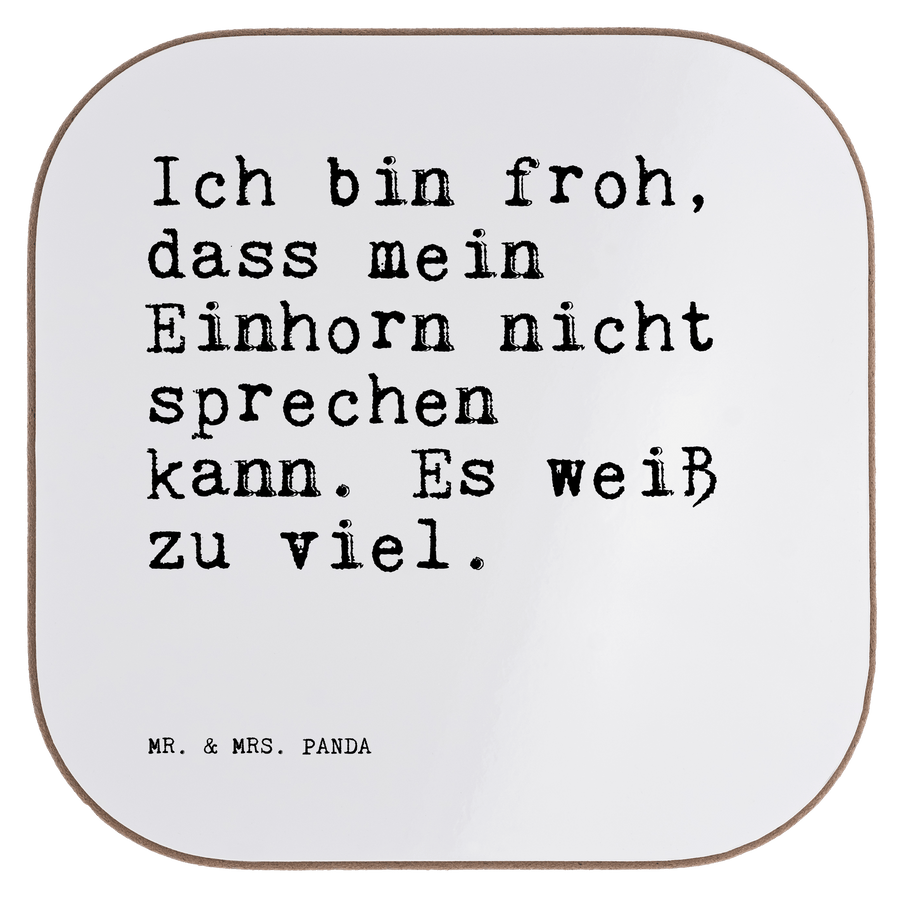 Quadratische Untersetzer Sprüche und Zitate Ich bin froh, dass mein Einhorn nicht sprechen kann. Es weiß zu viel.