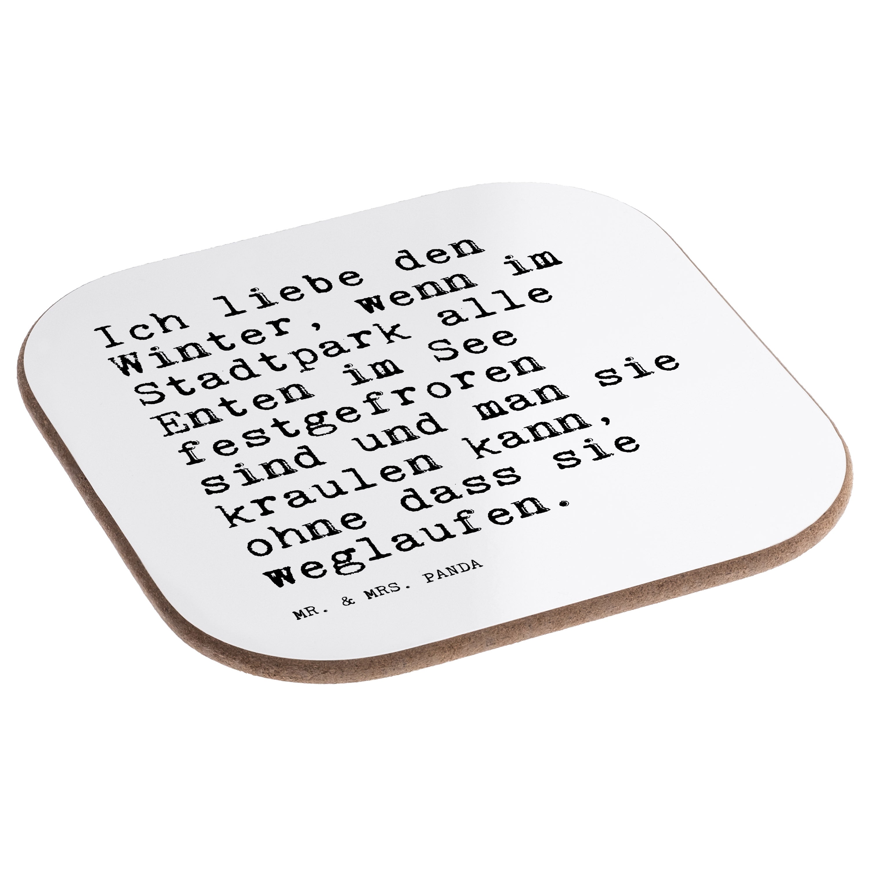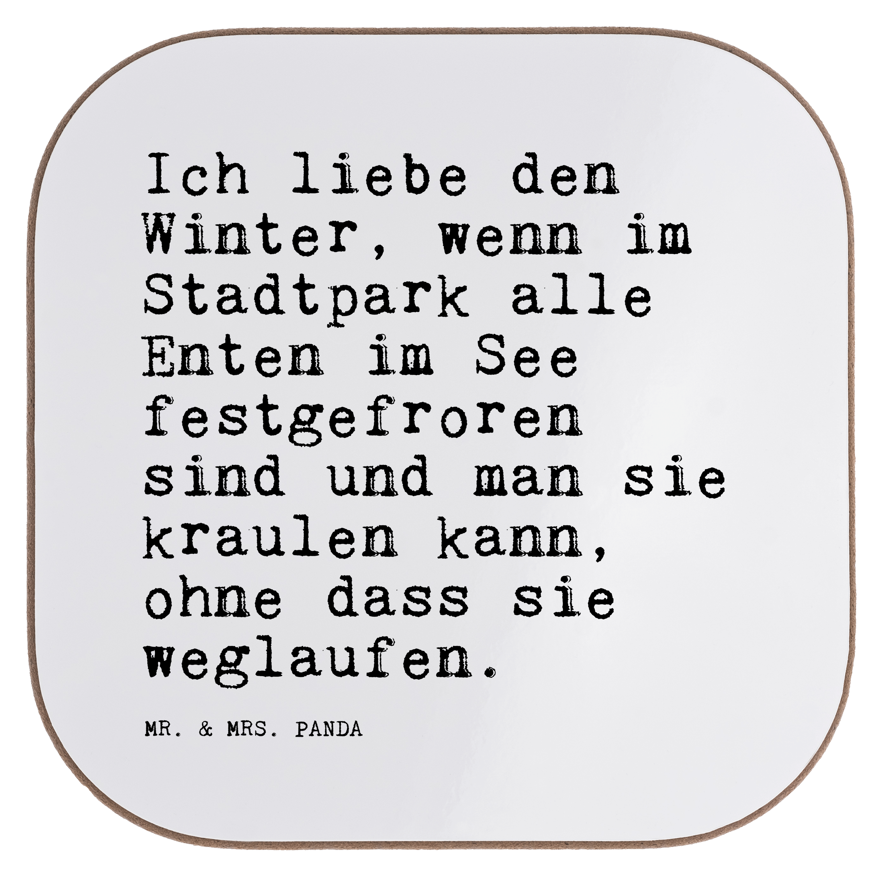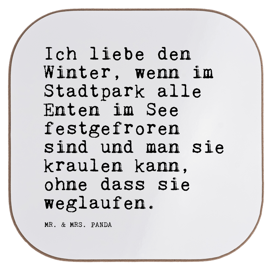 Quadratische Untersetzer Sprüche und Zitate Ich liebe den Winter, wenn im Stadtpark alle Enten im See festgefroren sind und man sie kraulen kann, ohne dass sie weglaufen.