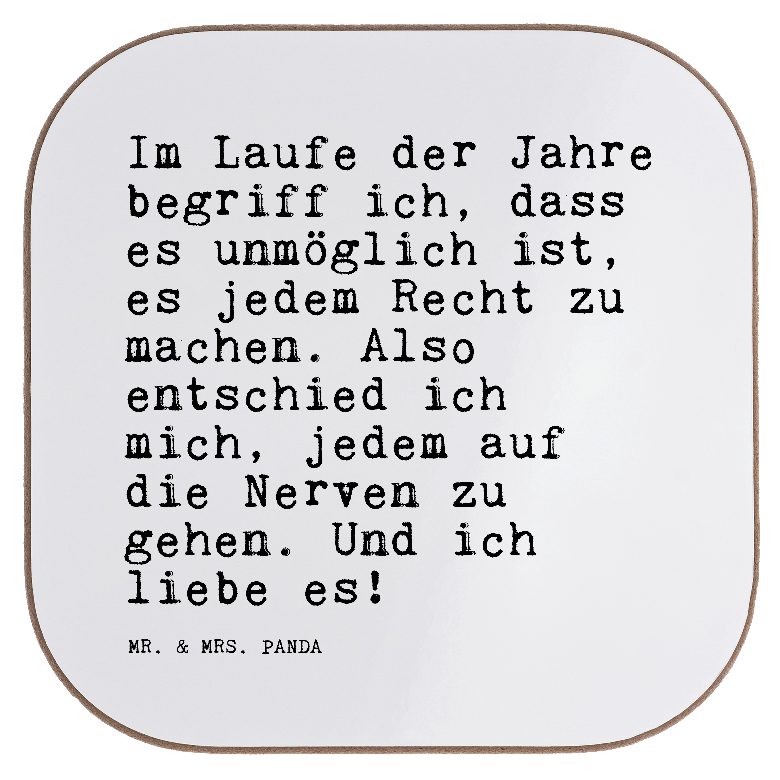 Quadratische Untersetzer Sprüche und Zitate Im Laufe der Jahre begriff ich, dass es unmöglich ist, es jedem Recht zu machen. Also entschied ich mich, jedem auf die Nerven zu gehen. Und ich liebe es!