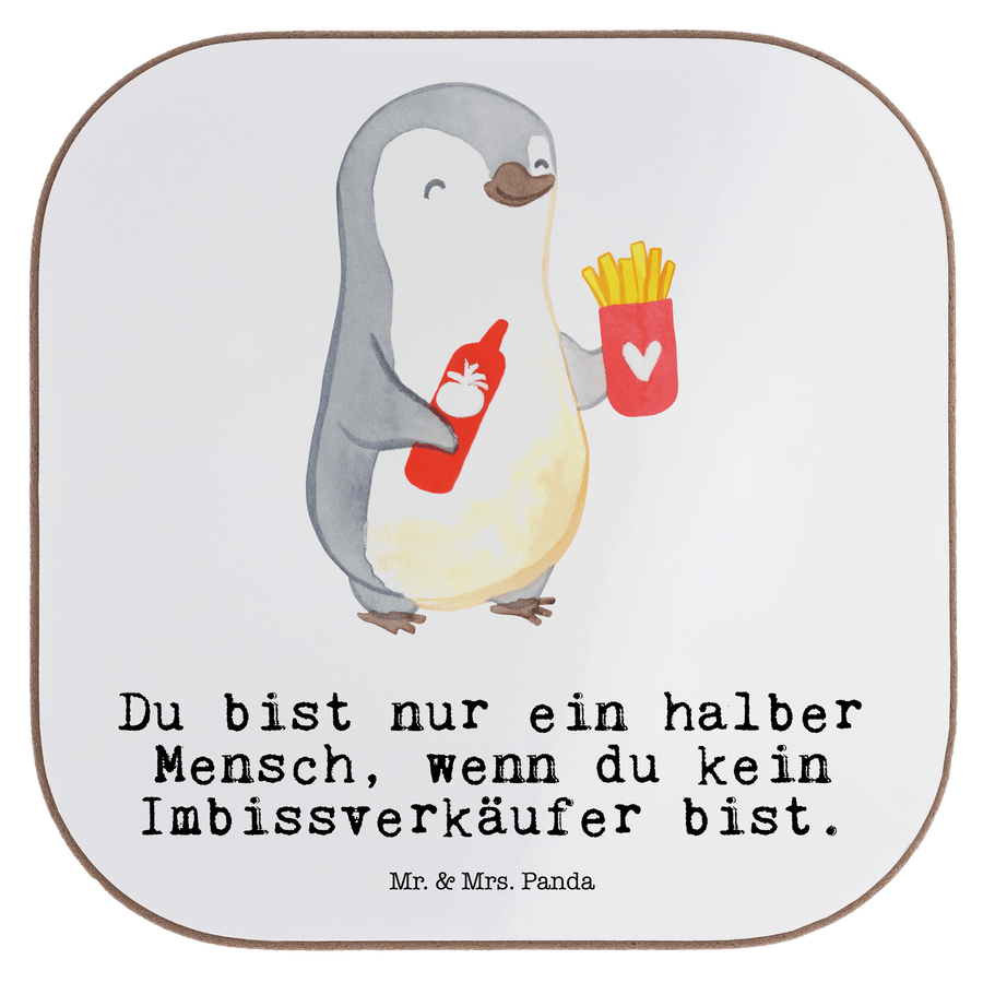 Quadratische Untersetzer Imbissverkäufer mit Herz Bierdeckel, Glasuntersetzer, Untersetzer Gläser, Getränkeuntersetzer, Beruf, Ausbildung, Jubiläum, Abschied, Rente, Kollege, Kollegin, Geschenk, Schenken, Arbeitskollege, Mitarbeiter, Firma, Danke, Dankeschön, Imbissbesitzer, Imbissverkäufer, Pommesverkäufer, Pommesliebe