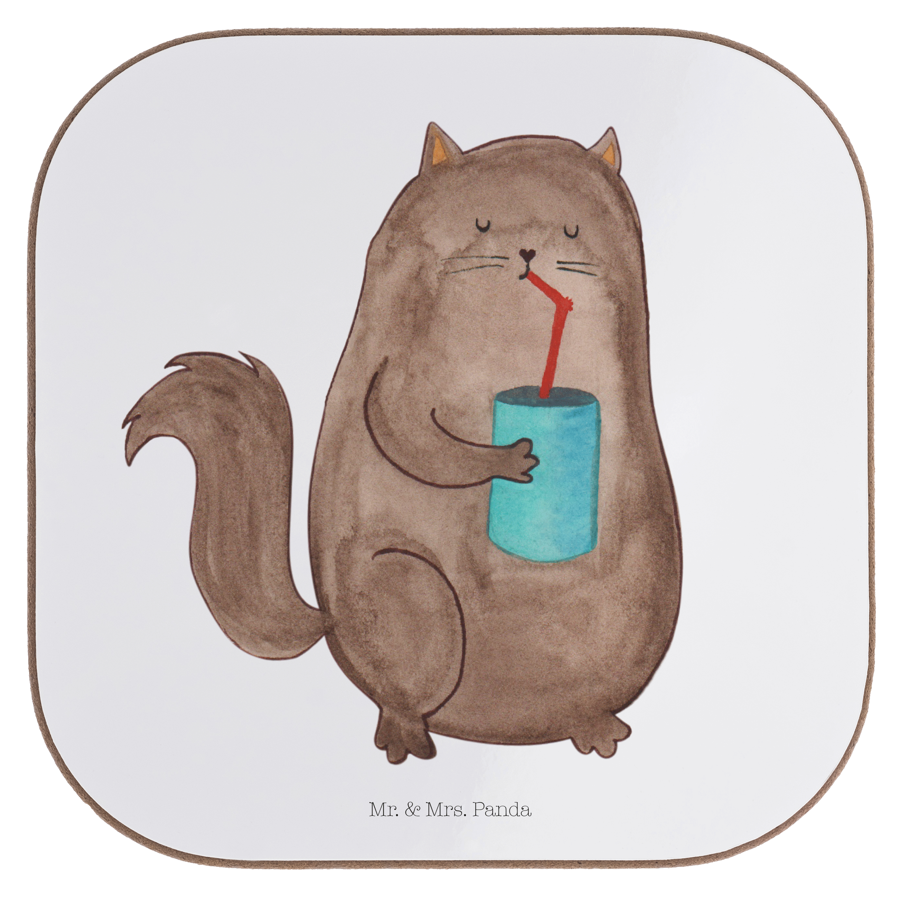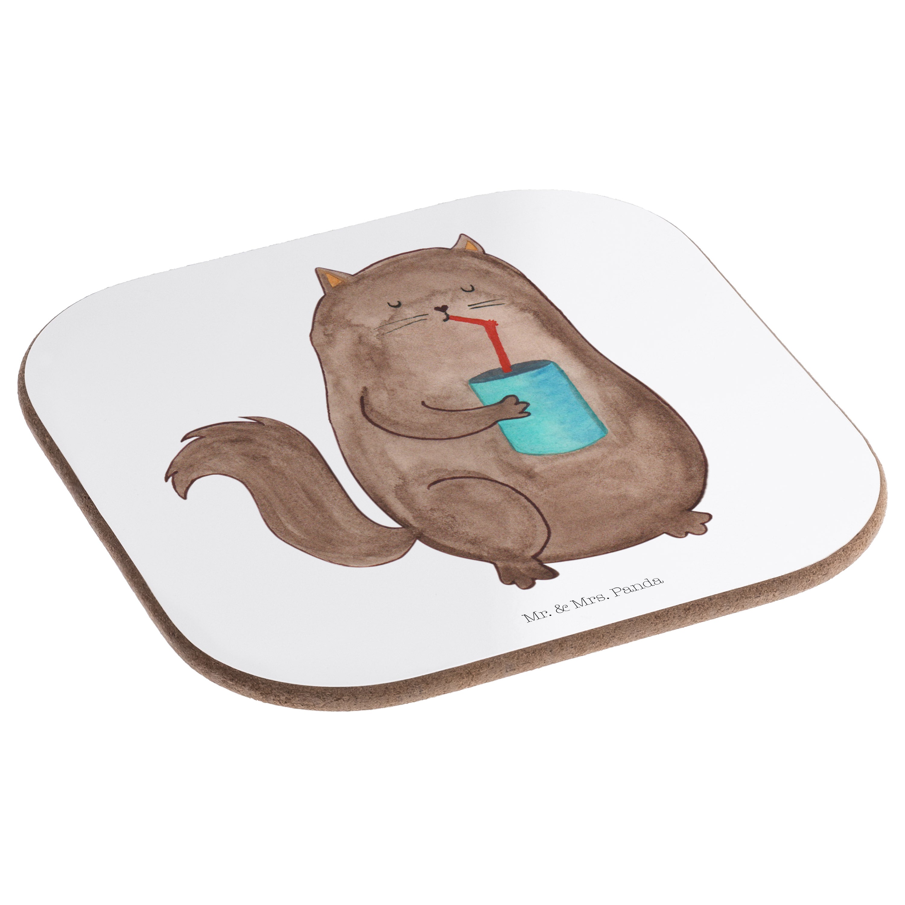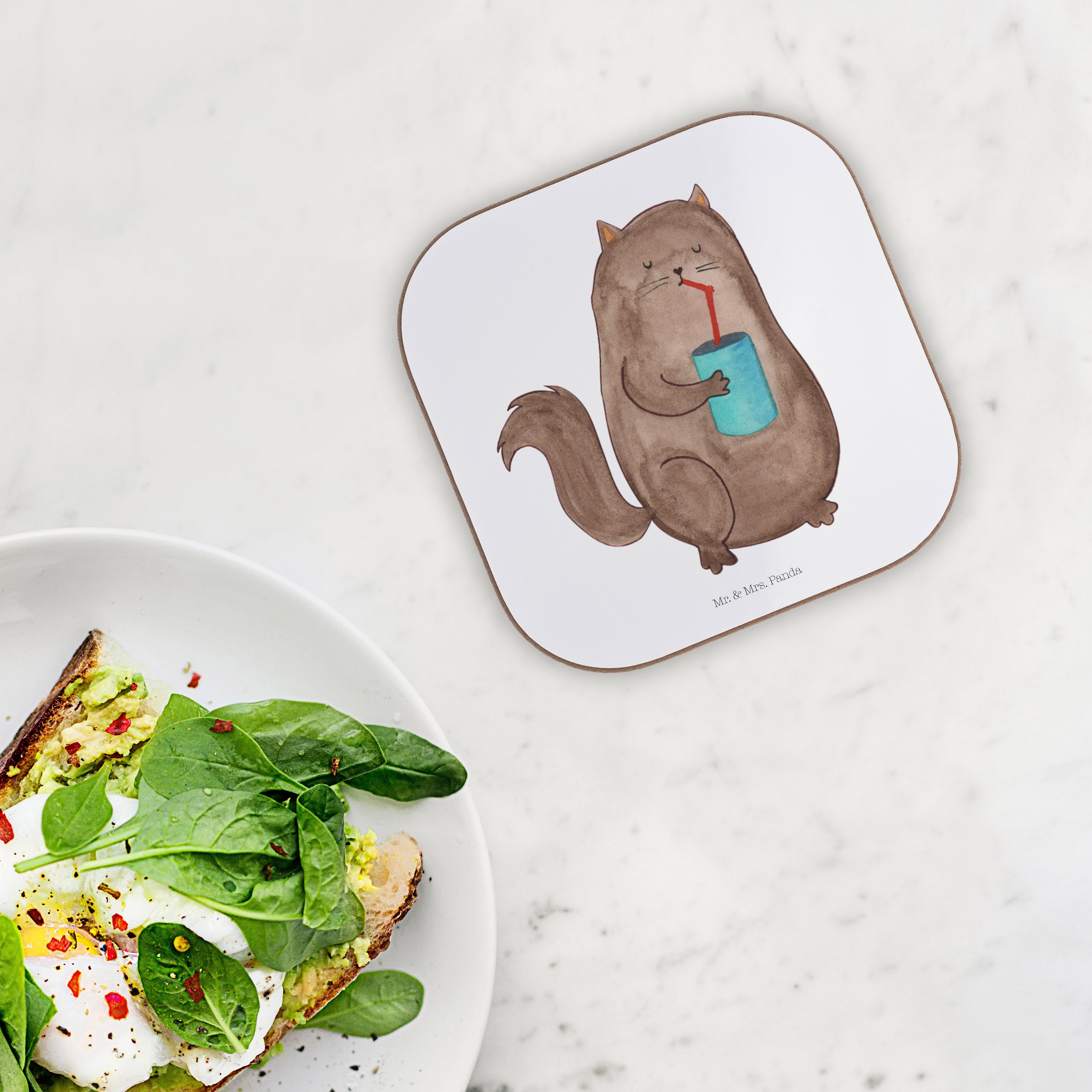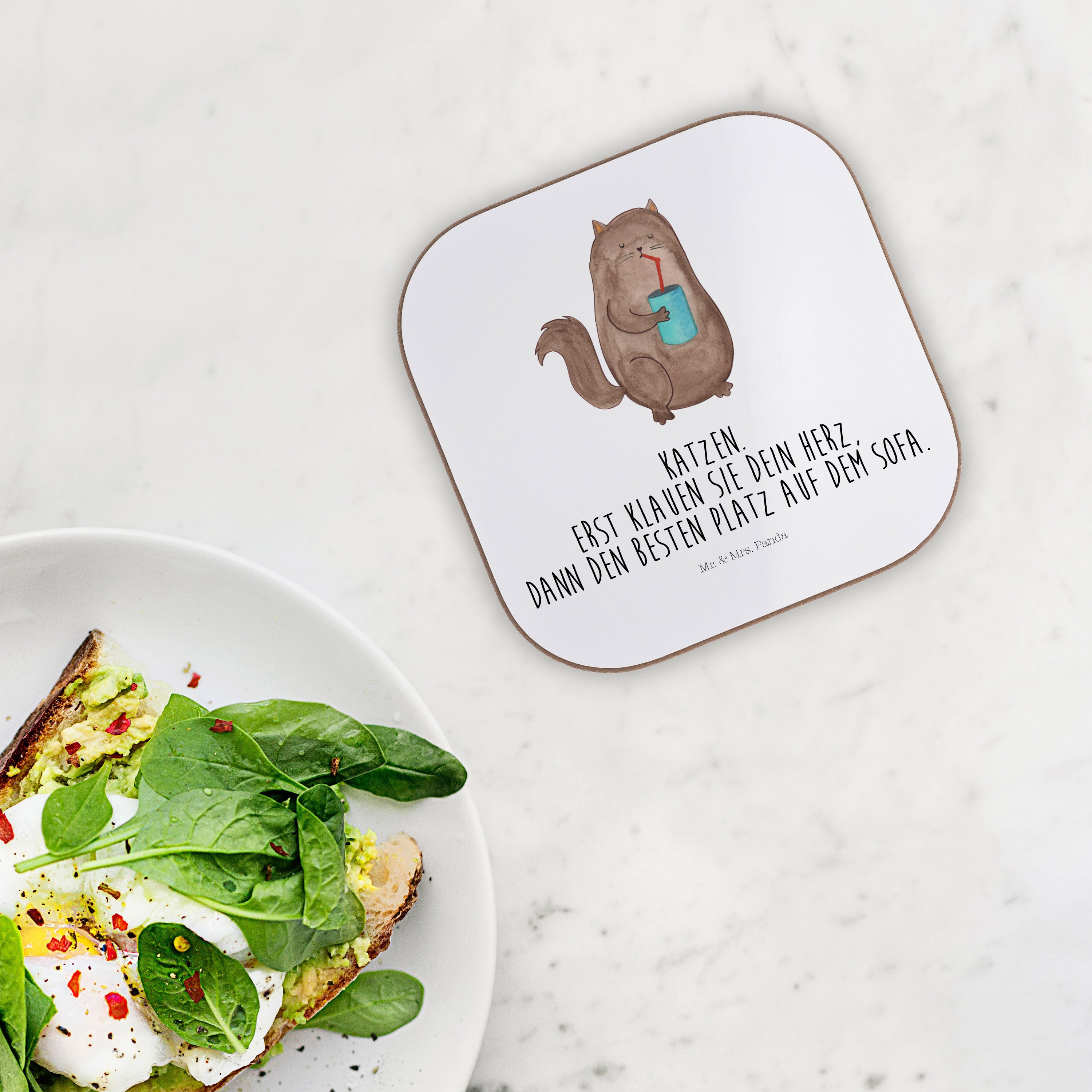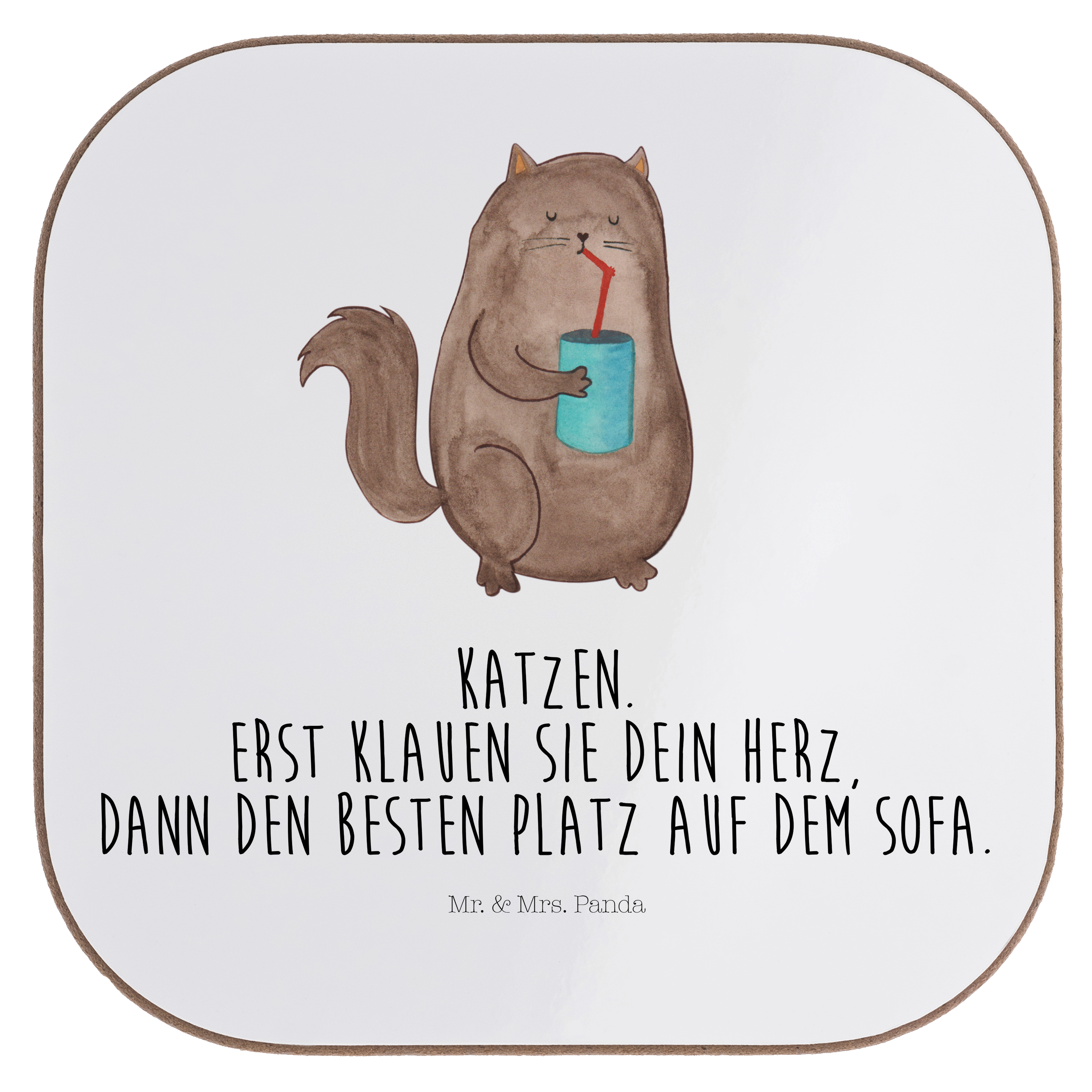 Quadratische Untersetzer Katze Dose - mit Spruch - Weiß