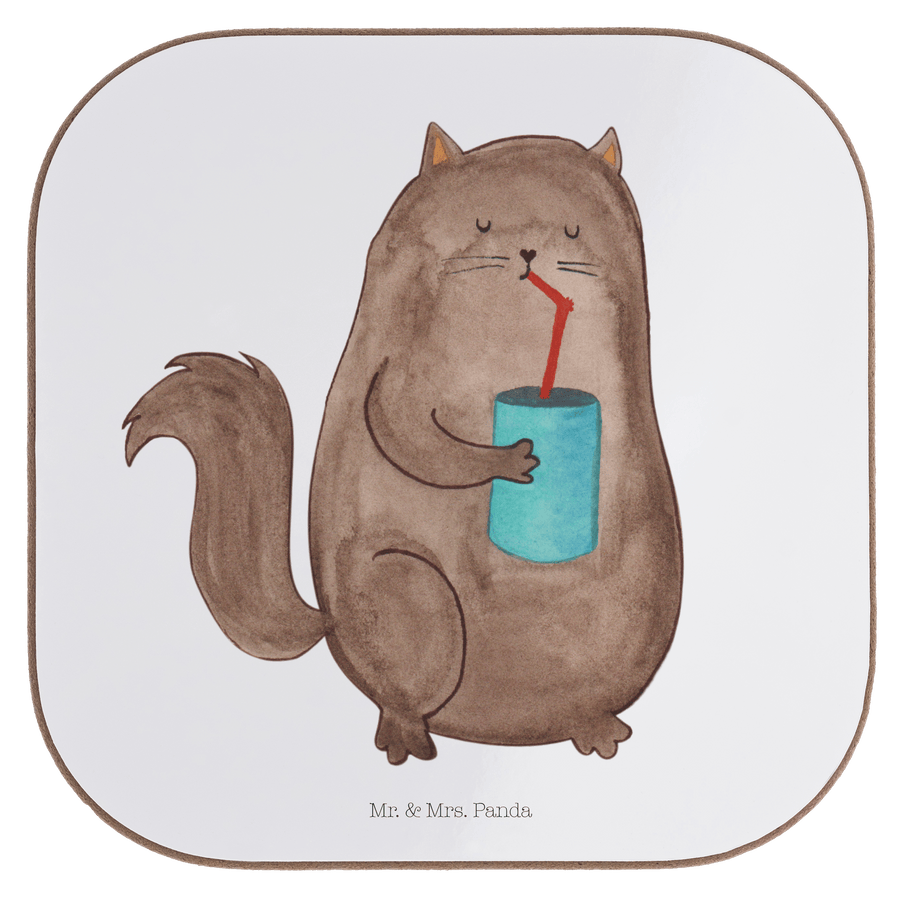 Quadratische Untersetzer Katze Dose - ohne Spruch - Weiß