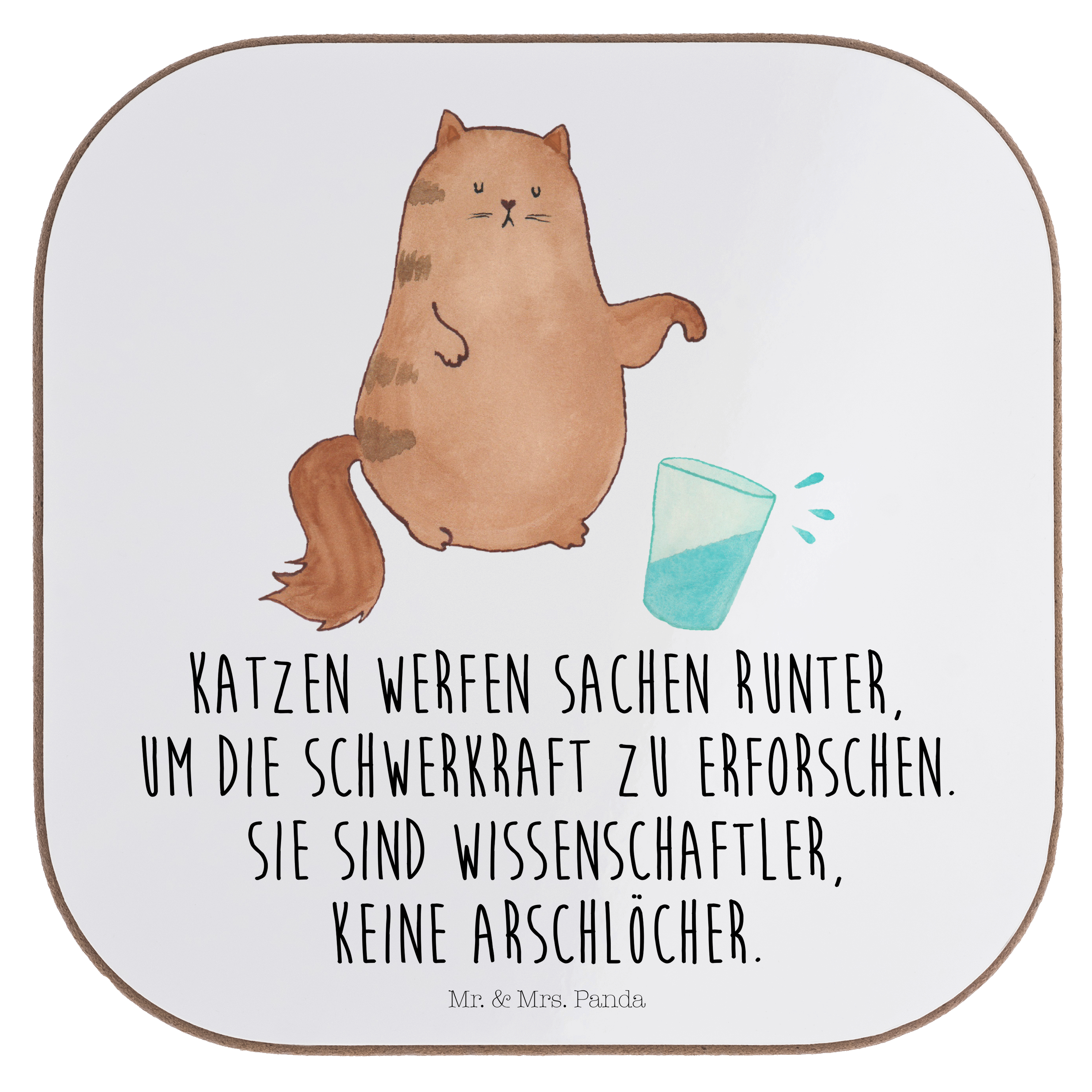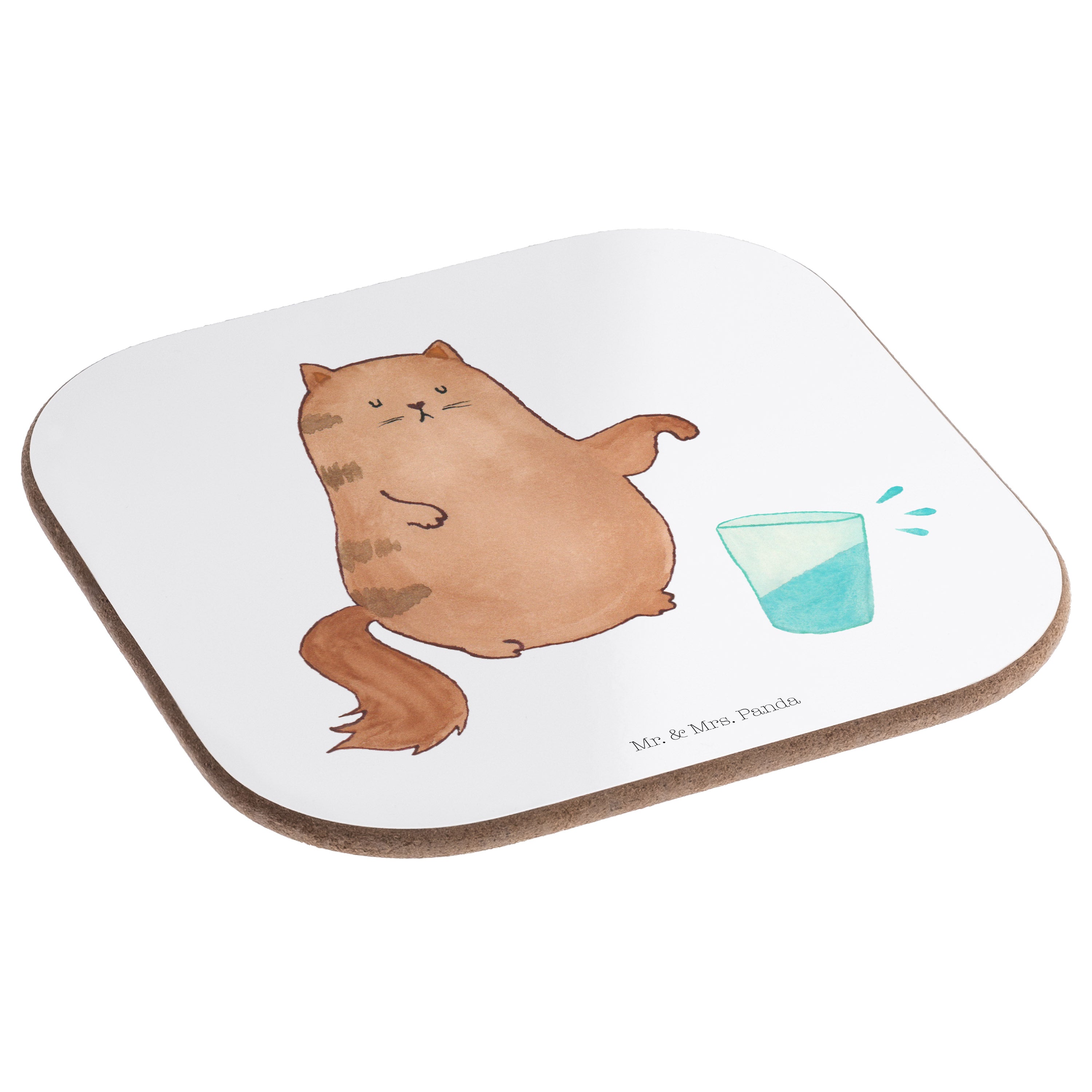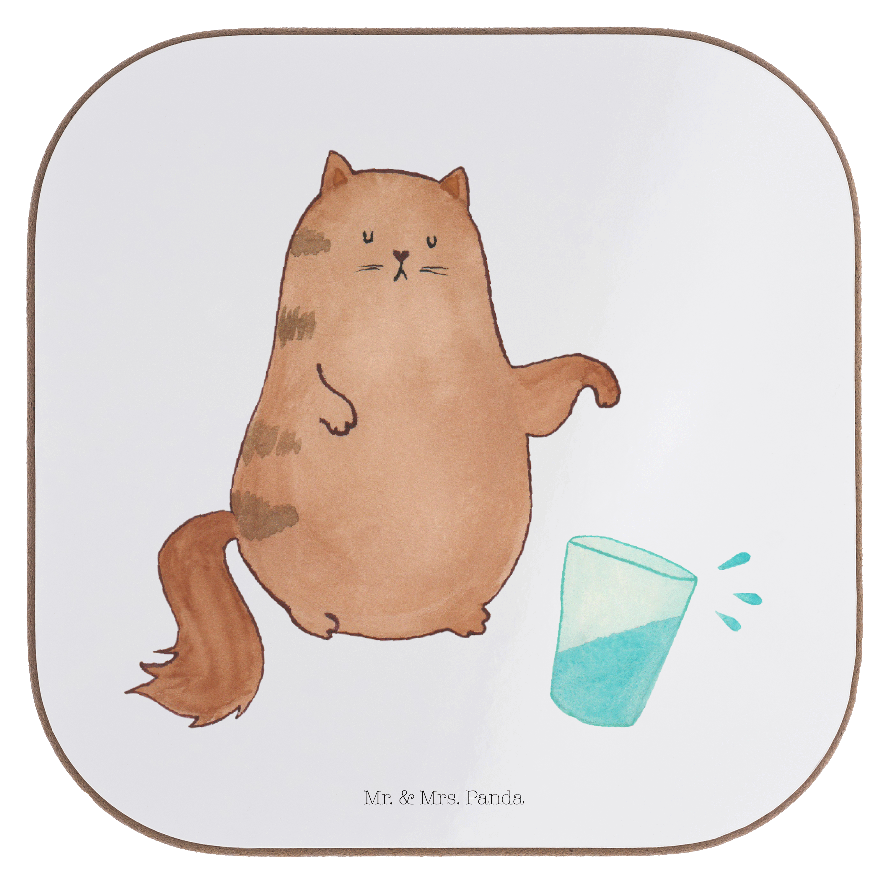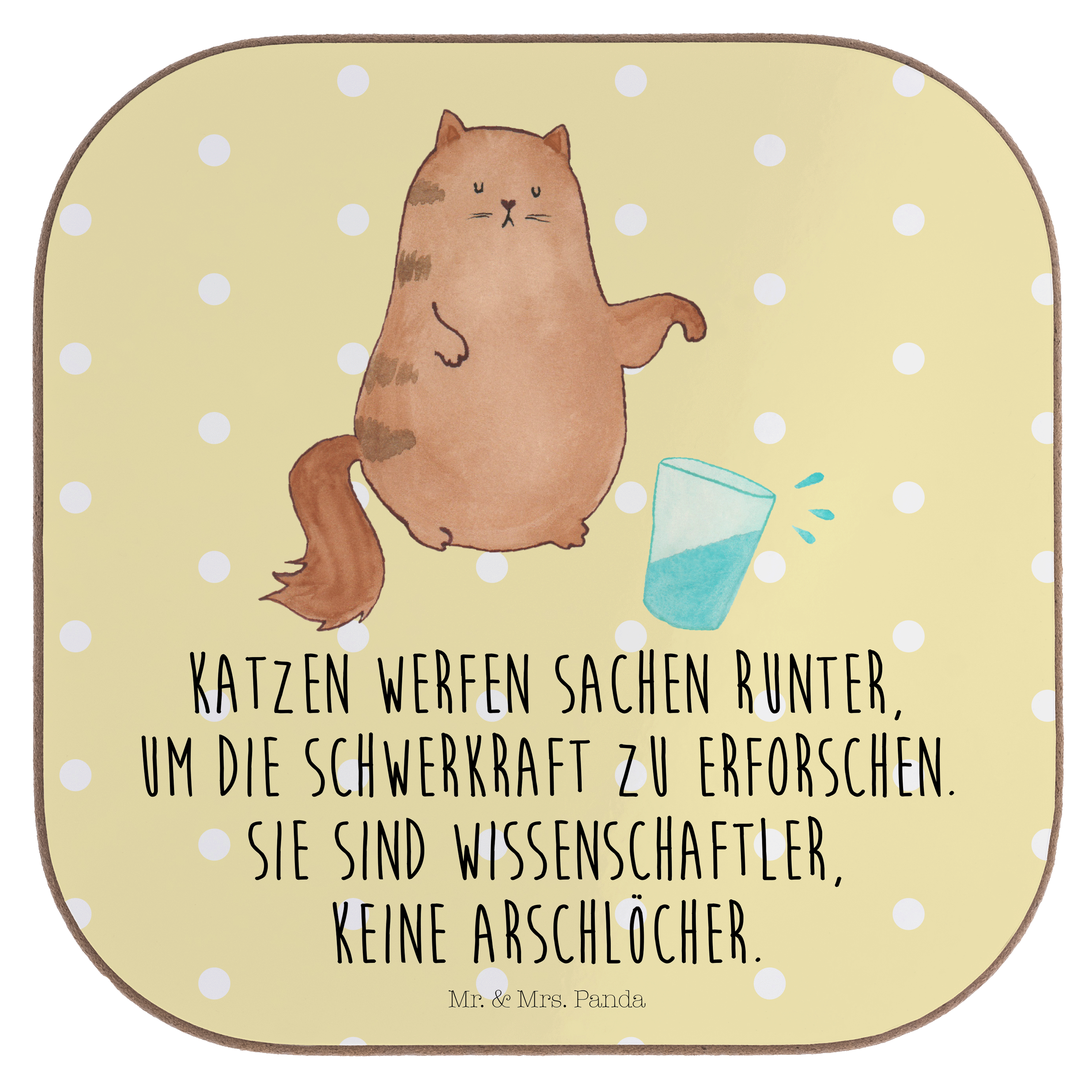 Quadratische Untersetzer Katze Wasserglas - Gelb Pastell - mit Spruch