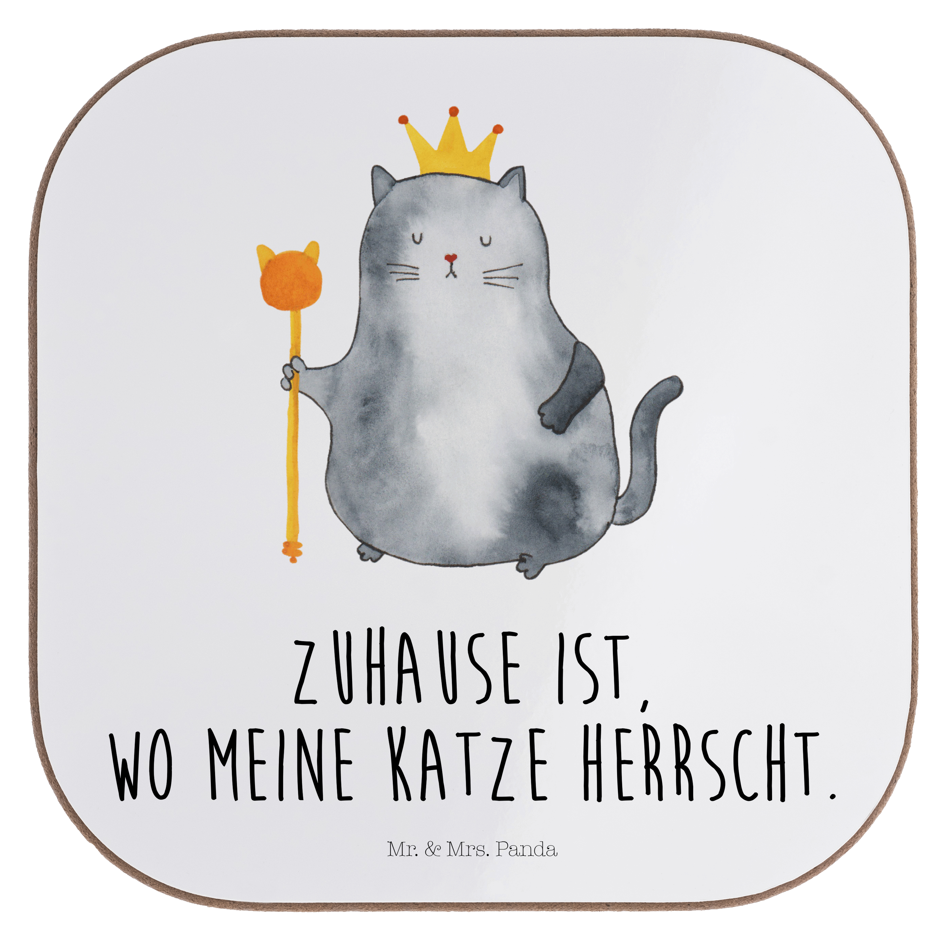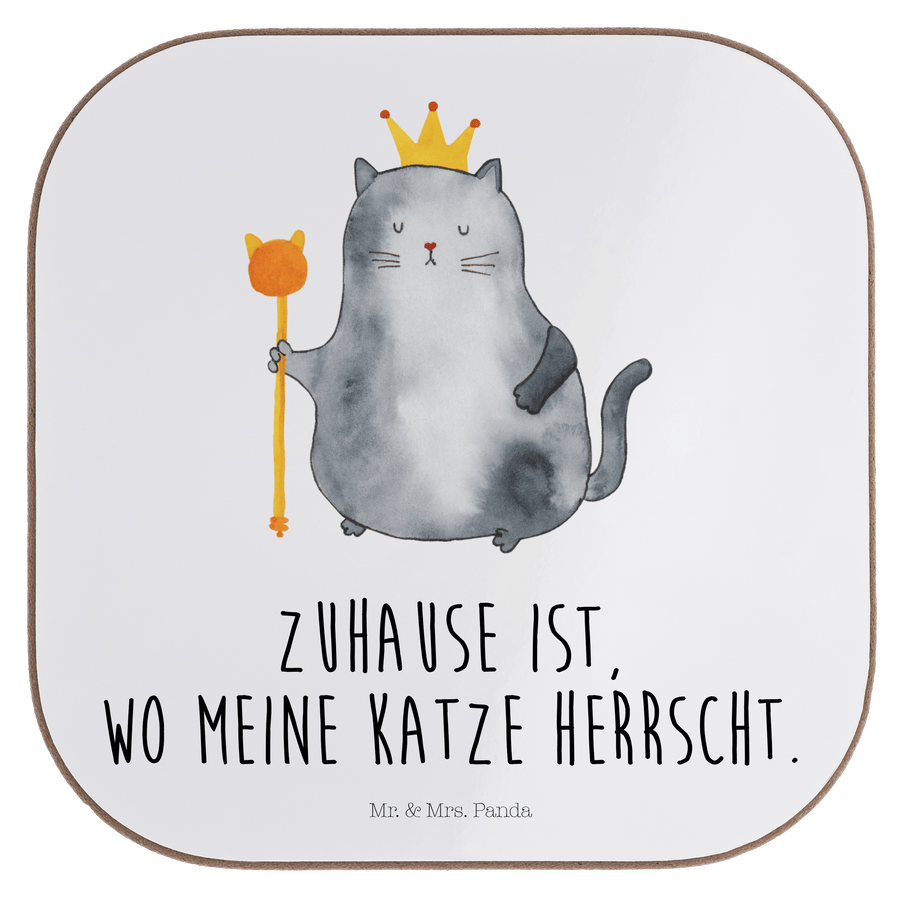 Quadratische Untersetzer Katzen Koenig - mit Spruch - Weiß