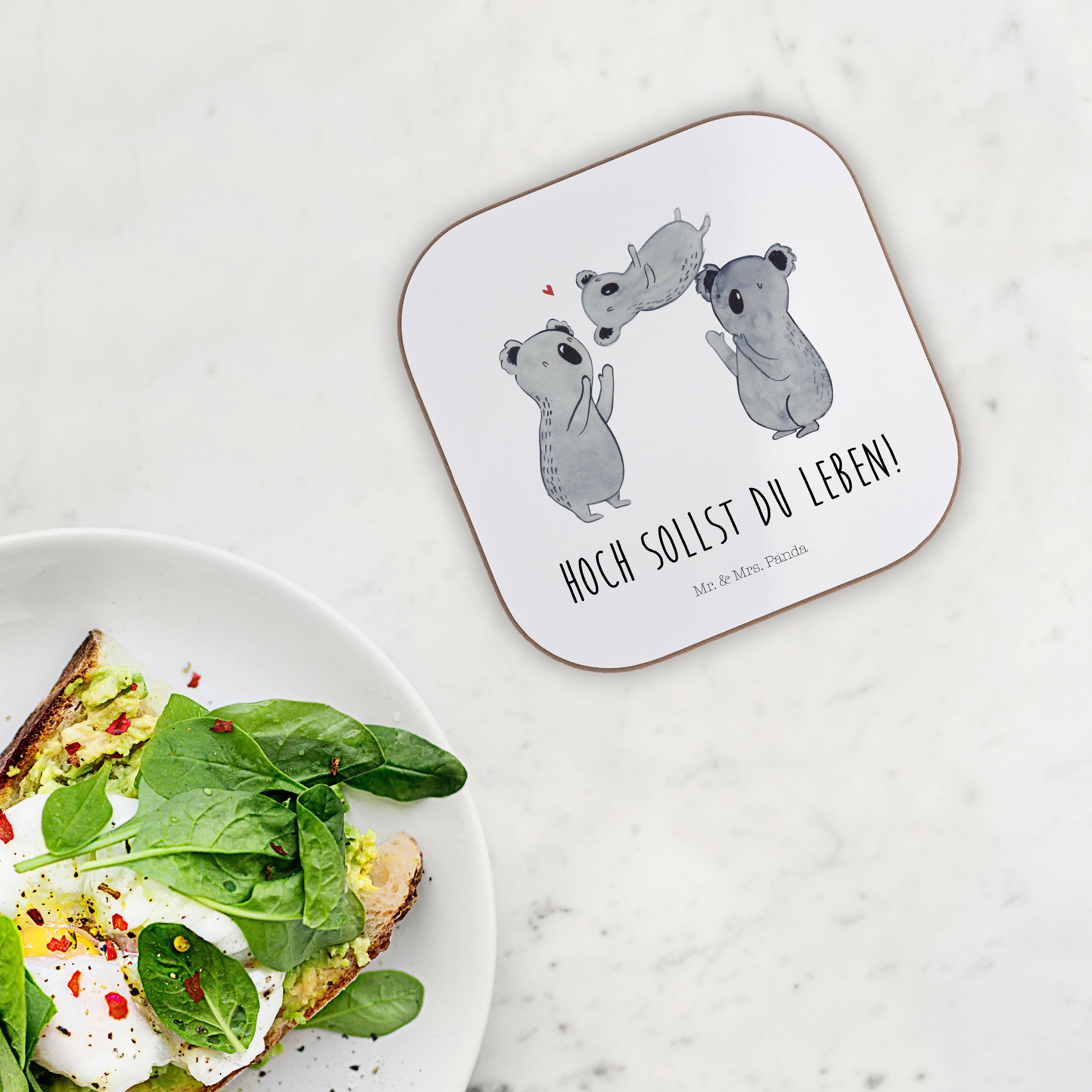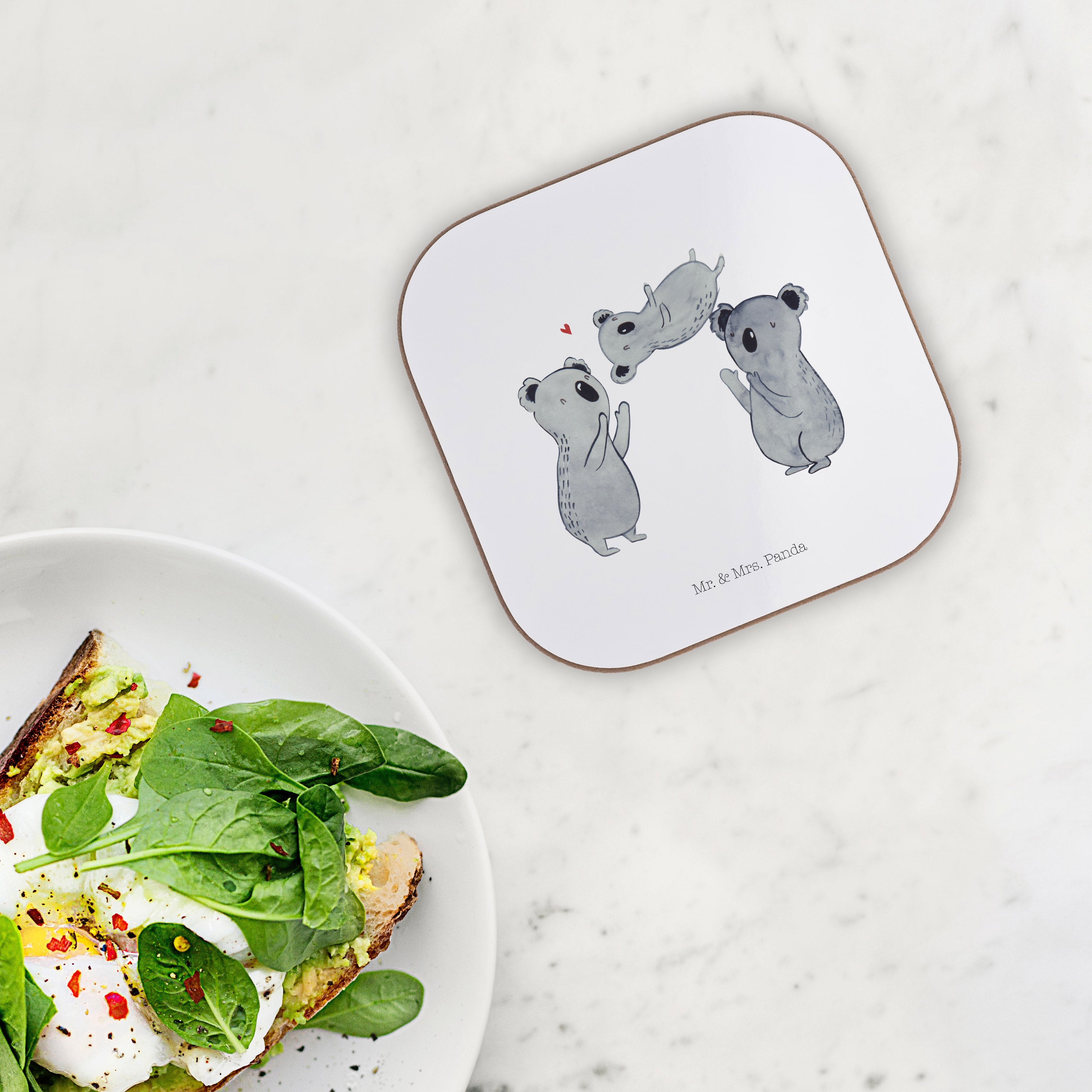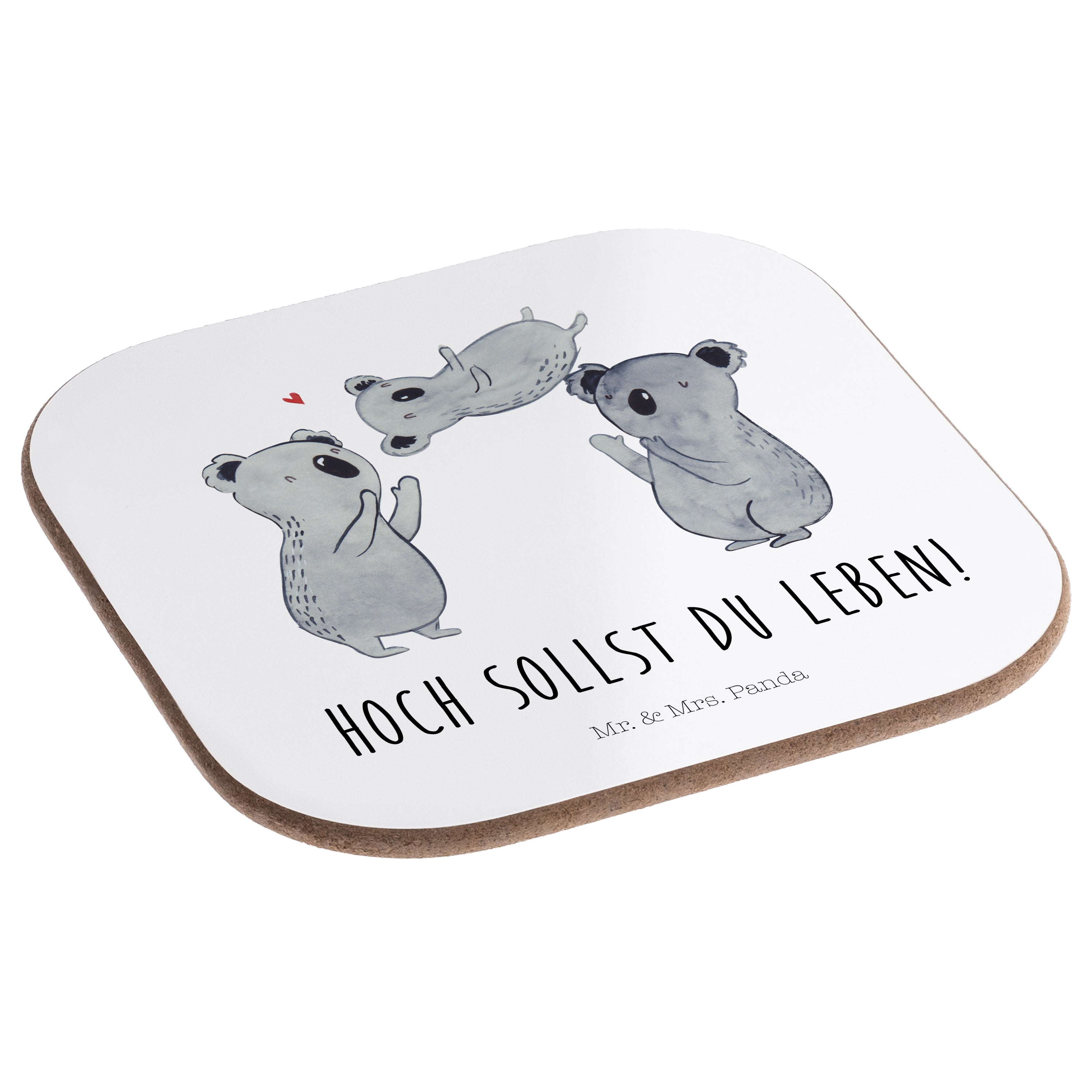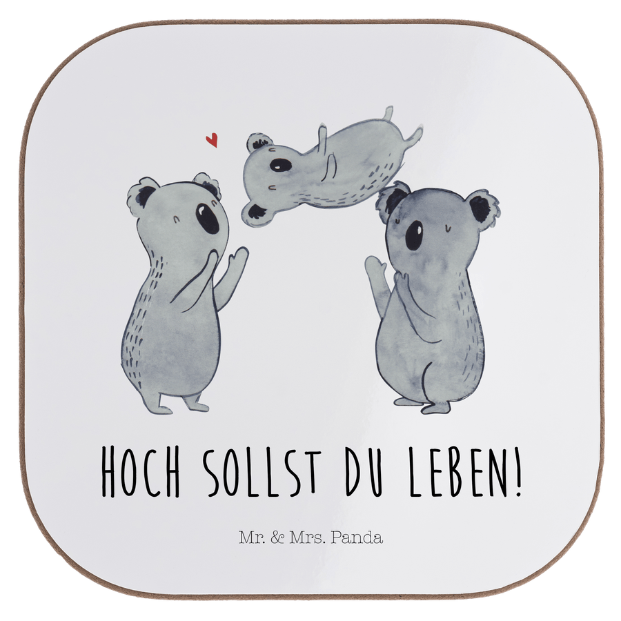 Quadratische Untersetzer Koala Feiern Sich - mit Spruch