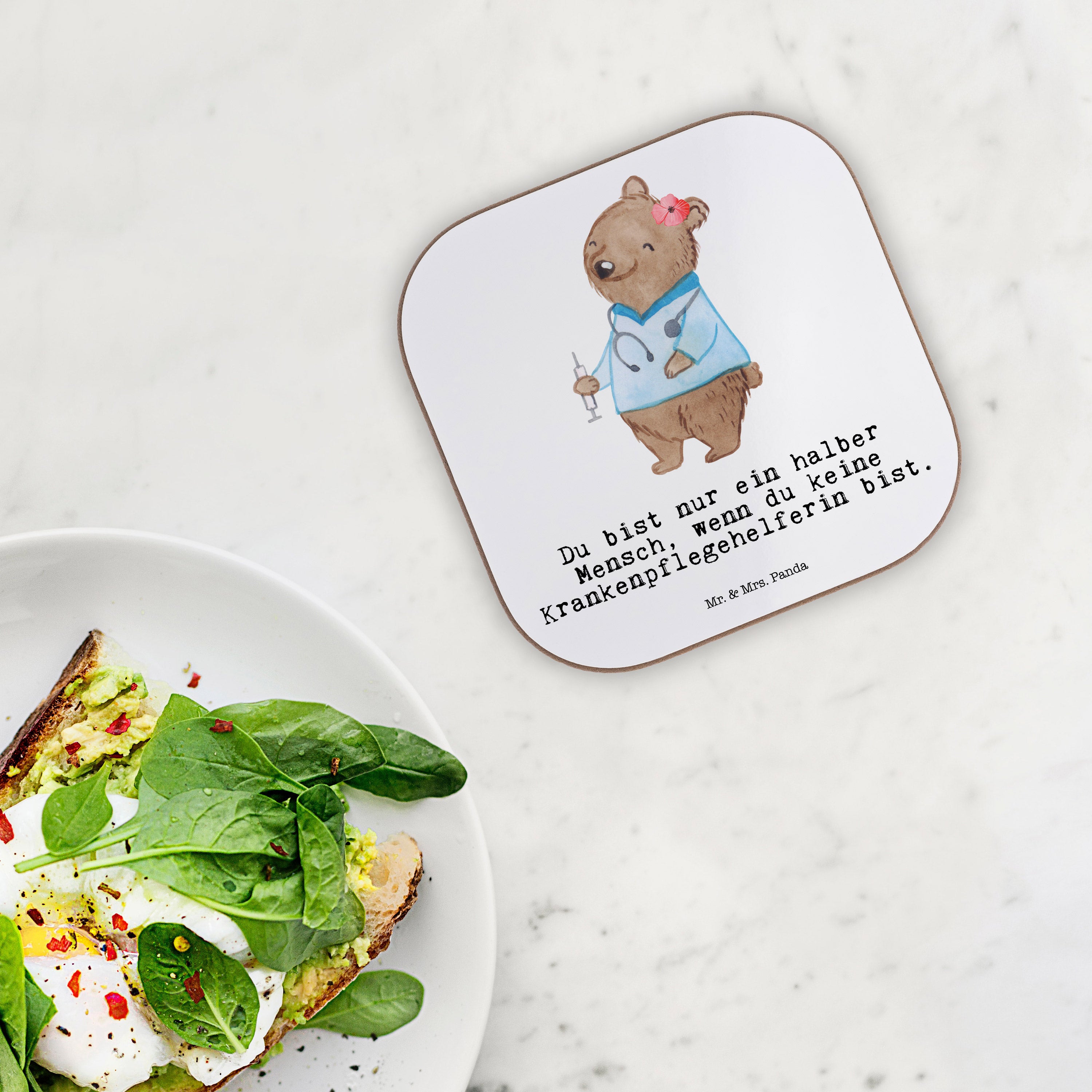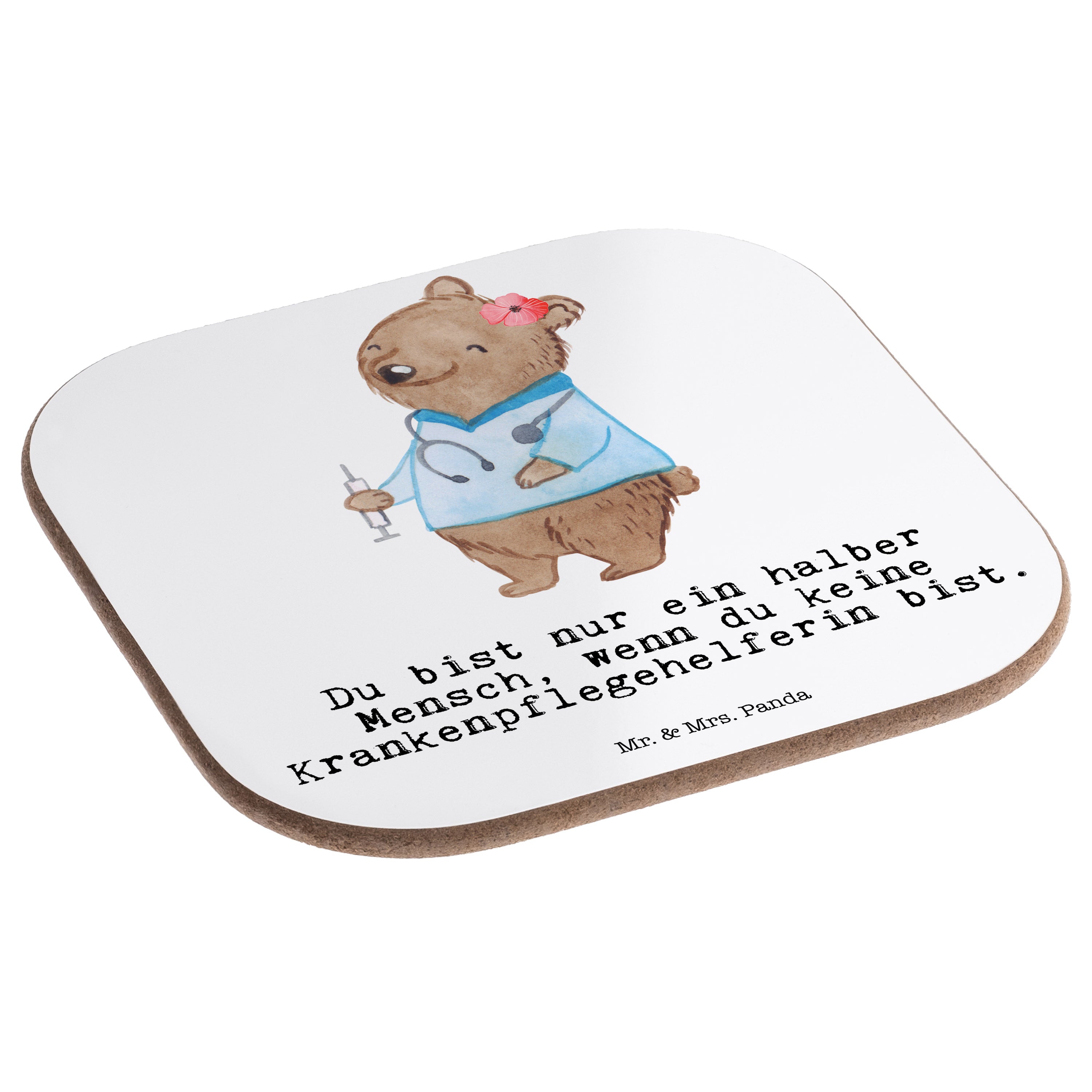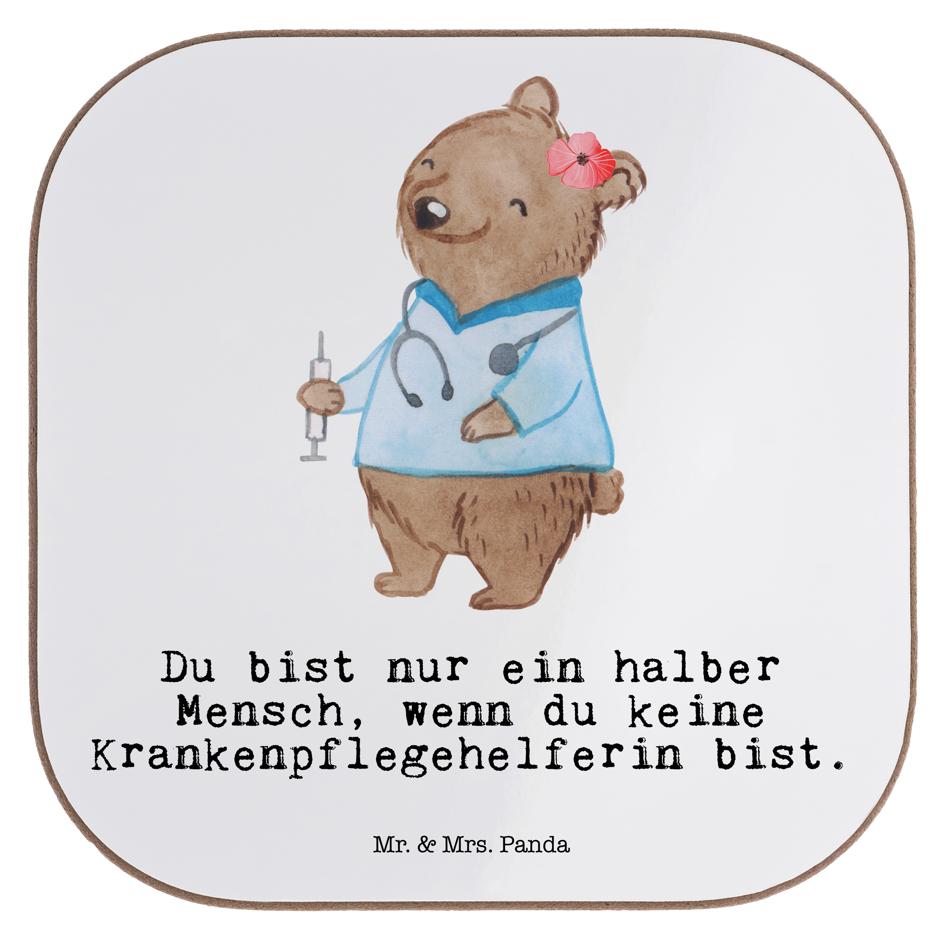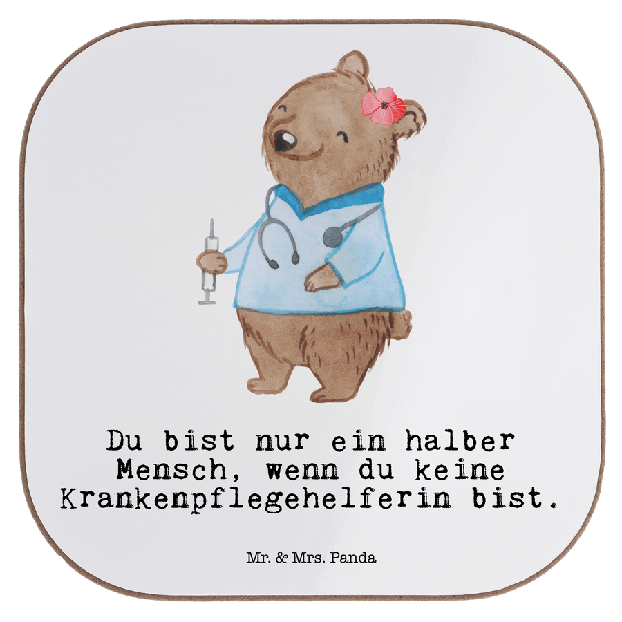Quadratische Untersetzer Krankenpflegehelferin mit Herz