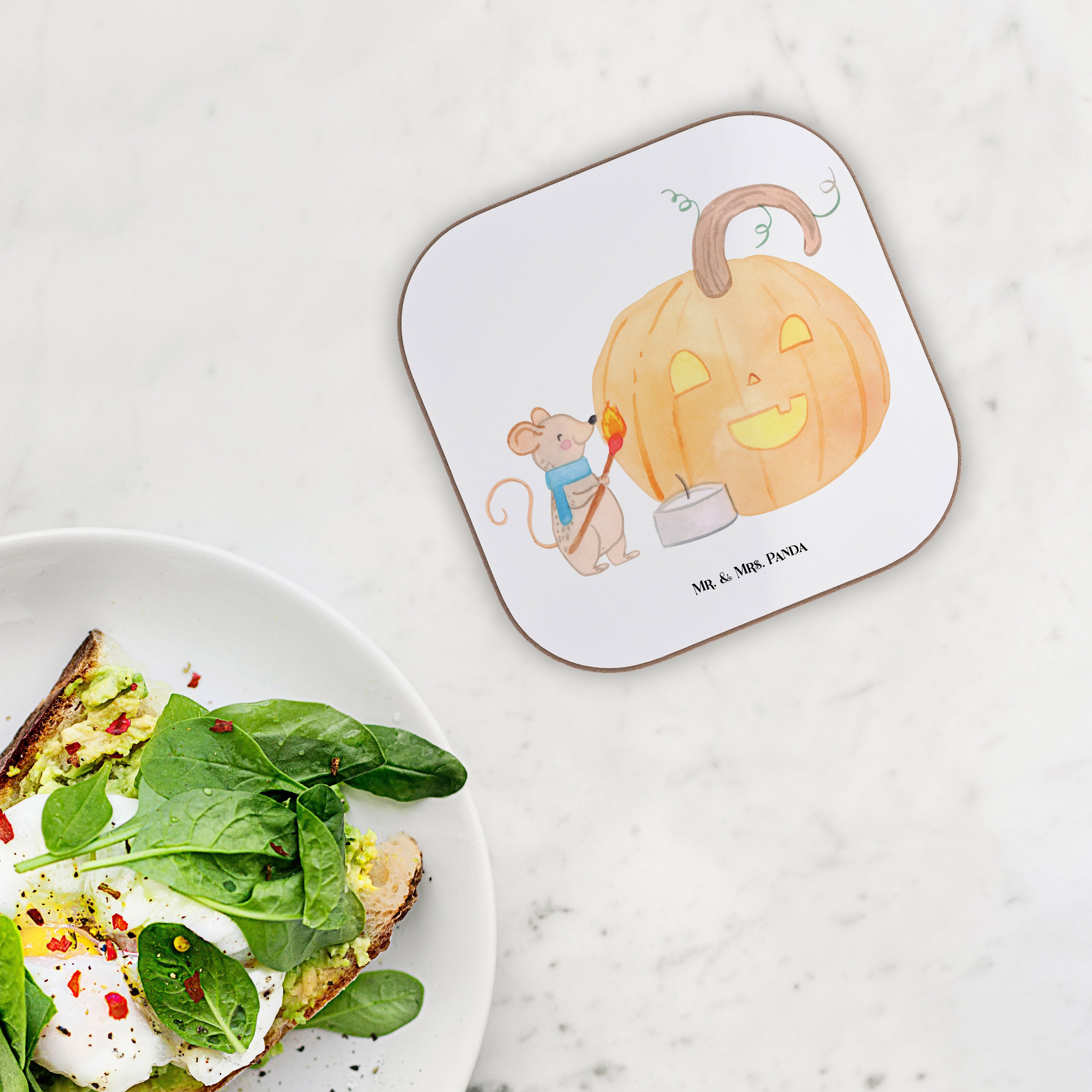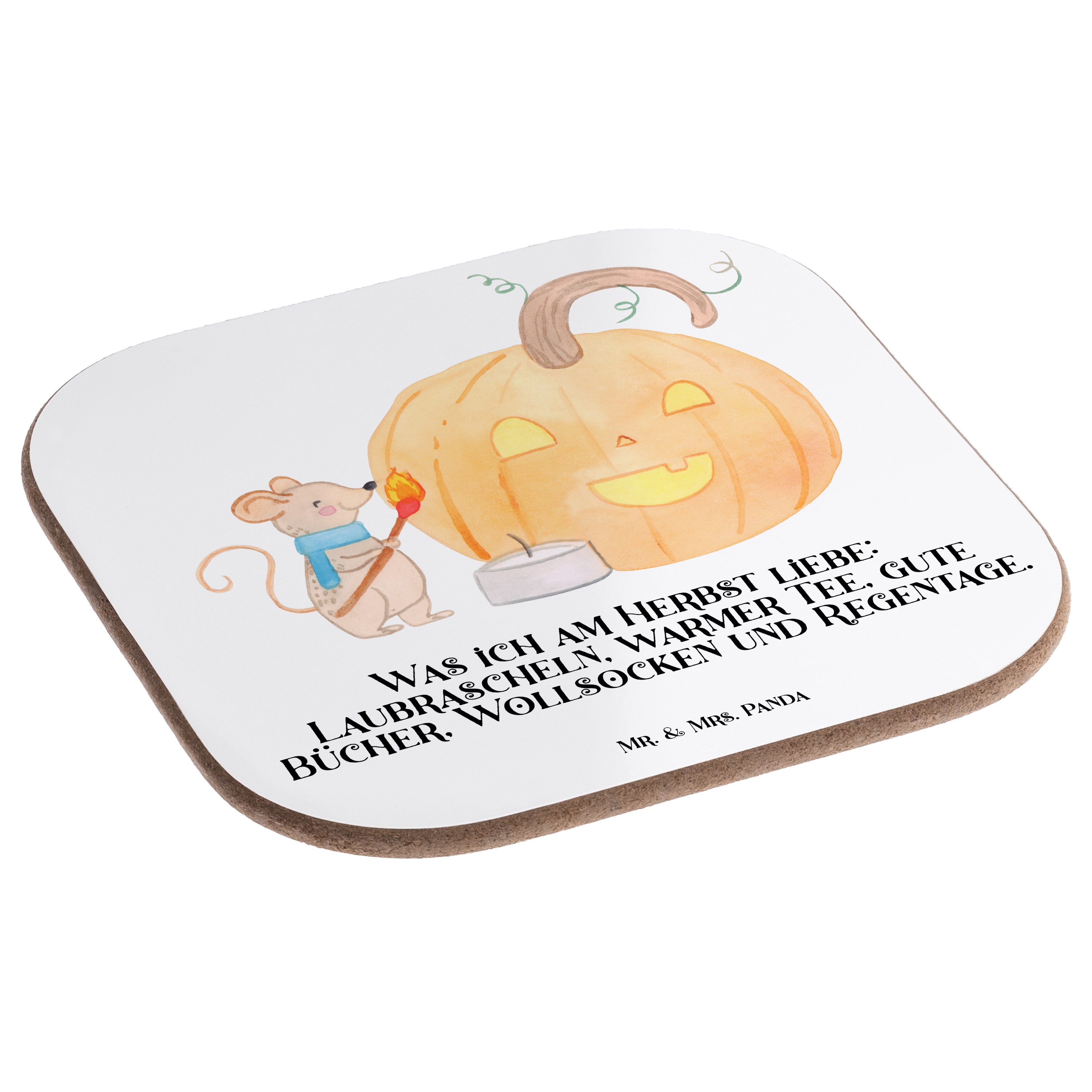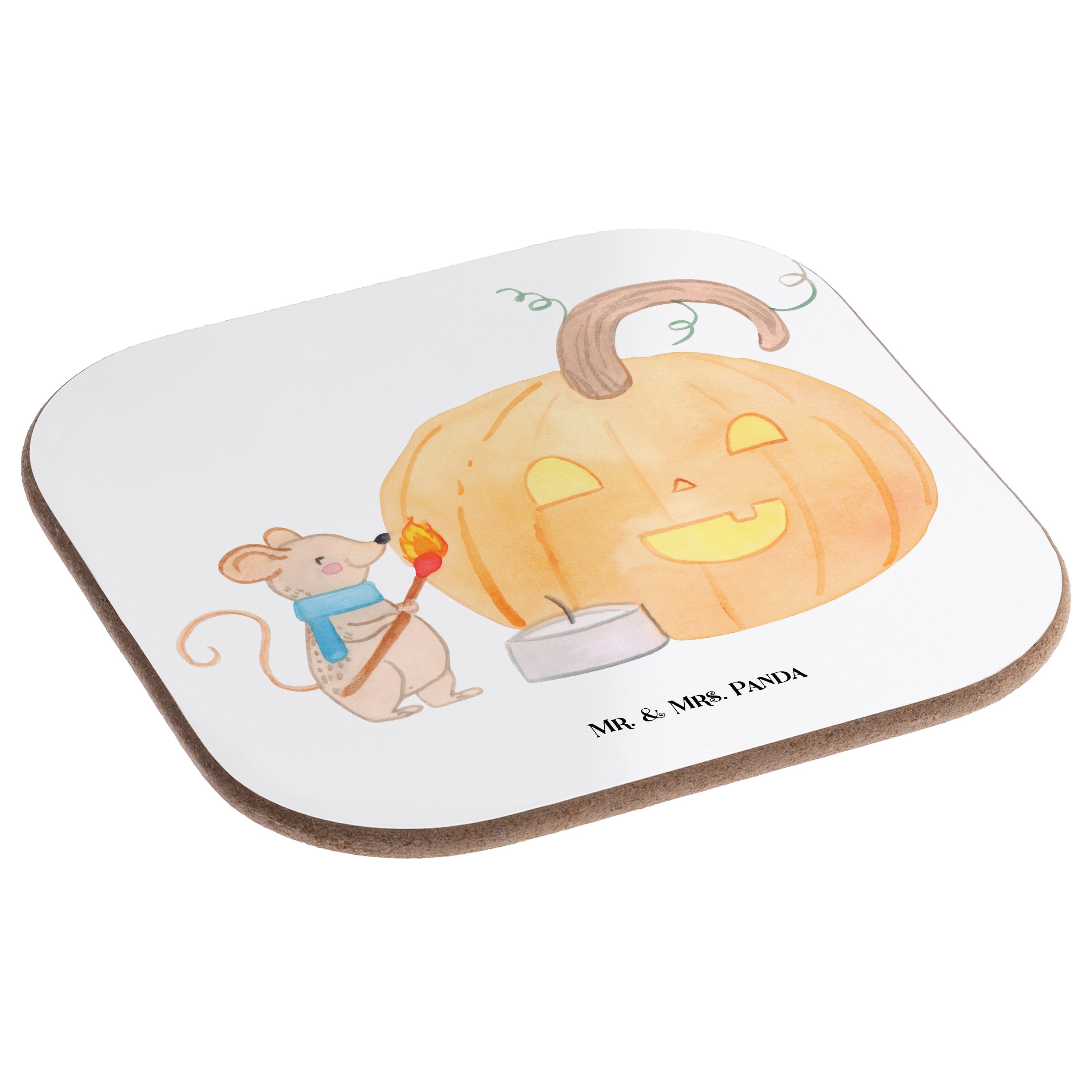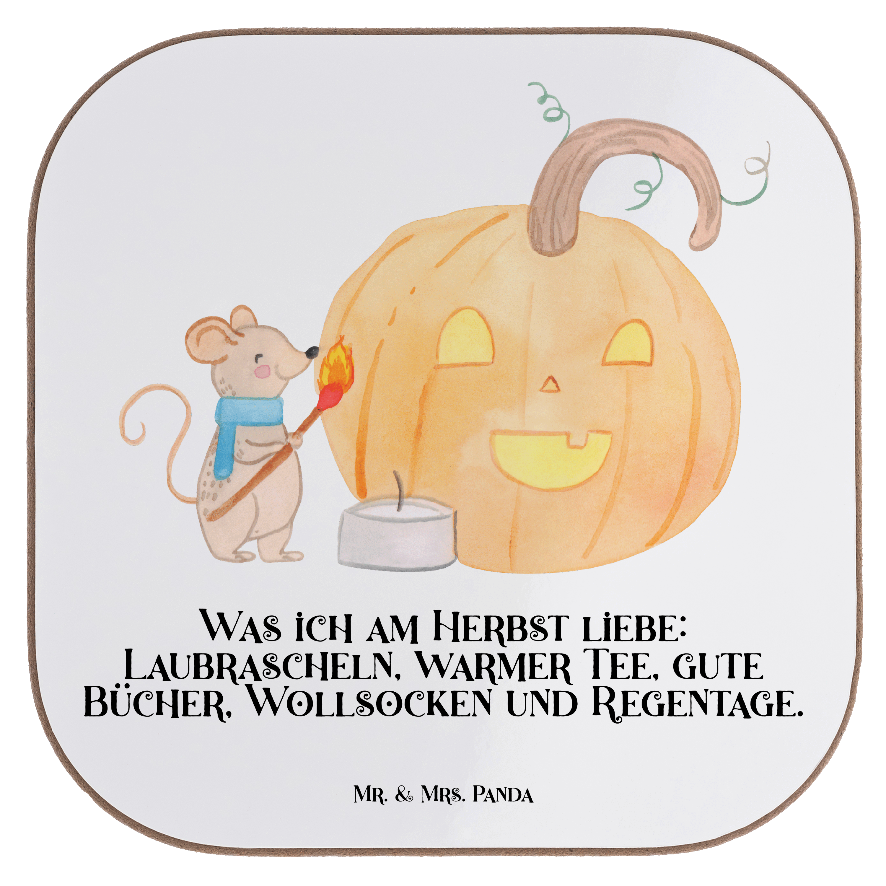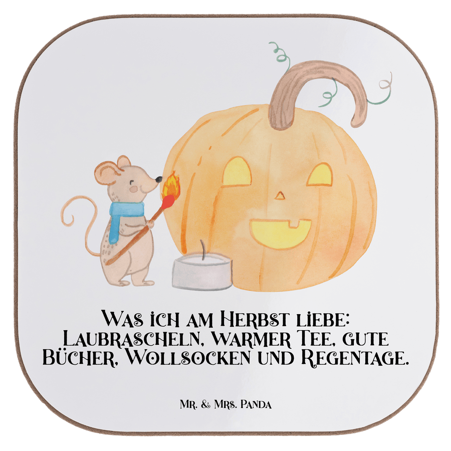 Quadratische Untersetzer Kürbis Maus - mit Spruch